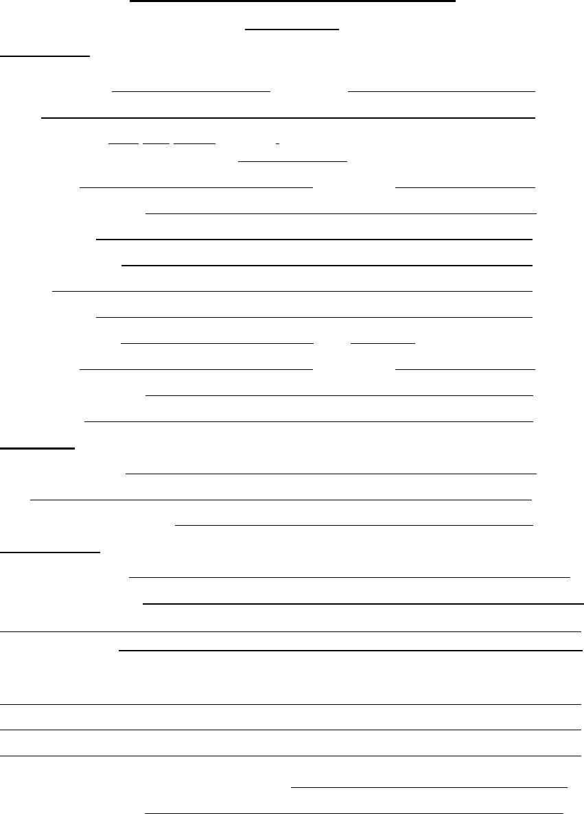 1. Identificação Ficha de Avaliação Neurofuncional – Adulto – ANAMNESE Data da avaliação: Reavaliação: Nome: Data Nascimento: / / Idade: Sexo: M ( ) F ( ) Estado Civil: Naturalidade: Profissão atual e tempo: Raça declarada: Endereço completo: Contato: Acompanhante: Grau de parentesco: Idade: Sexo: M ( ) F ( ) Estado Civil: Naturalidade: Profissão atual e tempo: Terapeuta (s): 2. Diagnóstico Diagnóstico médico: CID: Diagnóstico fisioterapêutico: 3. História Clínica SIC (acompanhante): Queixa principal (QP): Expectativa/desejo: História da Doença Atual (HDA): História da Doença Pregressa (HDP)/Cirurgias: História Familiar (HF): História Social (HS): Medicamentos/Possíveis efeitos adversos: Exames Complementares/Laudo: Profissionais que acompanham (dias/horários, nome, especialidade e contato): 4. Atividades: · AVD´s: · Transferências: ( ) Independente ( )Parcialmente dependente ( )Dependente · Vestuário: ( ) Independente ( )Parcialmente dependente ( )Dependente · Higiene: ( ) Independente ( )Parcialmente dependente ( )Dependente · Alimentação: ( ) Independente ( )Parcialmente dependente ( )Dependente · Padrões posturais e de movimento e equilíbrio: (Inicia-se a avaliação pela observação para depois ajudar, caso o paciente necessite. Deve-se descrever as transições, observando base de suporte, onde inicia o movimento, transferência de peso e simetria) · De pé · Sentado:(especificar onde: chão, banco, cadeira e se usa as mãos para manter a postura? Usa as mãos para realizar outra atividade? Uma mão/duas mãos?) Fatores contextuais: Fatores ambientais · Barreiras: · Facilitadores: Fatores pessoais: · Barreiras: · Facilitadores: · Equipamentos: (equipamentos de alta e baixa complexidade, ex. cadeira de rodas, andador, muletas, prancha de comunicação, extensores de MMII, AFO, etc) Estruturas e Funções Corporais: (Observação, inspeção e palpação) · Observações gerais: · Visão: · Audição: · Respiração: · Condicionamento físico: · Cognição (atenção, percepção e capacidade de entender e responder a comandos, etc): · Amplitude de movimento · Força muscular (na função/em teste específico) Movimento Músculos/Grupo muscular Função/Teste Conclusões · Manobras Deficitárias o MMSS · Raimiste: ( ) Positiva ( ) Negativa - Braços Estendidos: ( ) Positiva ( ) Negativa o MMII · Mingazzini: ( ) Positiva ( ) Negativa - Barré: ( ) Positiva ( ) Negativa · Prova de queda dos MMII em abdução: ( ) Positiva ( ) Negativa · Coordenação Motora (Se o paciente realiza, descrever como o faz) · Teste Índex-Nariz: ( ) realiza ( ) não realiza · Teste Calcanhar-Joelho: ( ) realiza ( ) não realiza · Equilíbrio · Sinal de Romberg Simples: ( ) Positivo ( ) Negativo · Sinal de Romberg Sensibilizado: ( ) Positivo ( ) Negativo · Tônus muscular: (identificar os membros avaliados) Normal ( ) Hipotônico ( ) Hipertônico ( ) · Reflexos superficiais e profundos · MMSS · Bicipital: ( )Normal ( )Hiporreflexo ( ) Hiperreflexo · Tricipital: ( )Normal ( )Hiporreflexo ( ) Hiperreflexo · Estilorradial: ( )Normal ( )Hiporreflexo ( ) Hiperreflexo o MMII · Patelar: ( )Normal ( )Hiporreflexo ( ) Hiperreflexo · Aquileu: ( )Normal ( )Hiporreflexo ( ) Hiperreflexo · Clônus ( ) Presente ( ) Ausente · Babinski ( ) Presente ( ) Ausente · Movimentos involuntários · Sensibilidade (anexar mapa de dermátomos, caso necessário) Região corporal Dermátomo Tipo de sensibilidade/alteração 5. Escalas e testes padronizados (especificar e anexar) 6. Conclusão da avaliação: Limitações funcionais Deficiências primárias Deficiências secundárias (consequência das primárias e causa das limitações)