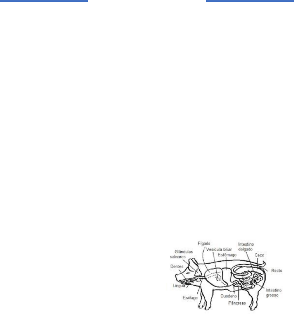@MEUAMORPORMEDVET @MEUAMORPORMEDVET PARA MAIS RESUMOS, ENTRE NO PERFIL DO INSTAGRAM E CLIQUE NO LINK DA BIO. Nutrição Animal Anatomia e fisiologia digestiva • De acordo com os hábitos alimentares, os animais são classificados em: carnívoros (gatos), herbívoros (equinos, bovinos, bubalinos, ovinos e caprinos) e onívoros (cães e suínos). • Outra forma de classificação é pelas características anatômicas: monogástricos (aves, suínos, cães, gatos, equinos e coelhos) e ruminantes (bovinos, bubalinos, ovinos e caprinos). • Os animais monogástricos são aqueles que possuem apenas um compartimento estomacal, enquanto os ruminantes possuem o estômago dividido em quatro partes. SISTEMA DIGESTÓRIO DOS ANIMAIS • O trato gastrointestinal vai da boca até o ânus, compreendendo todos os órgãos e glândulas acessórias como a glândula salivar, fígado e pâncreas. • Suas funções fundamentais são digestão, absorção e excreção. • As características histológicas do trato são compostas por mucosa, submucosa, serosa e muscular circular e longitudinal. • O trato gastrintestinal é onde acontece as principais alterações nos alimentos. • Os animais monogástricos são aqueles que possuem um estômago simples e com uma pequena capacidade de armazenar os alimentos, ou seja, precisam de fornecimento constante. • Os animais ruminantes são herbívoros e diferente dos monogástricos, esses possuem o estômago dividido em quatro segmentos: rúmen, retículo, omaso e abomaso. Sendo os 3 primeiros pré- estômagos e o abomaso como estômago verdadeiro. Esses animais consomem o alimento de forma rápida e após algum tempo, eles regurgitam o alimento para a boca para ser mastigado e deglutido novamente. SISTEMA DIGESTIVO DOS MONOGÁSTRICOS 1-SUÍNOS • É composto pela boca, esôfago, estômago, intestino delgado, intestino grosso e ânus. Possui os dentes, glândulas salivares, fígado e pâncreas como acessórios. @MEUAMORPORMEDVET @MEUAMORPORMEDVET PARA MAIS RESUMOS, ENTRE NO PERFIL DO INSTAGRAM E CLIQUE NO LINK DA BIO. • A maioria dos nutrientes são digeridos e absorvidos no intestino delgado. • Toda a utilização dos nutrientes absorvidos no trato digestivo é feita no fígado. • Possuem melhor utilização de alimentos fibrosos que os carnívoros, presença de ceco funcional e importante fermentação no intestino grosso. 2-AVES • Embora também sejam monogástricos, as aves possuem algumas diferenças anatômicas em relação aos outros monogástricos. • Não possuem dentes, a apreensão do alimento é feita pelo bico. • Seu trato gastrintestinal é dividido em proventrículo (estômago químico) e a moela (digestão mecânica). • No esôfago possui o papo, local para armazenar alimento já que seu estômago tem menor capacidade de armazenamento. • As aves possuem o ceco bipartido. • Possuem a cloaca, um órgão misto no local onde seria o ânus. 3-COELHOS E EQUINOS • Esses dois animais são herbívoros monogástricos e possuem algumas relações em sua anatomia. • Os equinos possuem estômago pequeno e simples, intestino delgado relativamente reduzido, ceco e cólon bastante desenvolvidos, com elevada capacidade de fermentação. • Os coelhos estômago de tamanho médio, intestino delgado curto e simples, ceco bastante desenvolvido com elevada capacidade de fermentação. • Os coelhos realizam a cecotrofagia, que é a ingestão de cecotrofos, o produto da fermentação dos componentes nutricionais no ceco, o que possibilita um aproveitamento da proteína microbiana gerada nesta porção do intestino. @MEUAMORPORMEDVET @MEUAMORPORMEDVET PARA MAIS RESUMOS, ENTRE NO PERFIL DO INSTAGRAM E CLIQUE NO LINK DA BIO. SISTEMA DIGESTIVO DOS RUMINANTES • Possuem três câmaras anteriores ao estômago verdadeiro (abomaso) chamadas rúmen, retículo e omaso. • O rúmen preenche quase toda metade esquerda da cavidade abdominal. É no rúmen que o bolo alimentar está em forma estratificada, apresentando ventralmente uma camada líquida (microrganismos e partículas pequenas de alimento) e uma camada sólida (partículas de alimentos grosseiramente moídas). Também há a camada gasosa com os gases produzidos na fermentação. • O rúmen e o retículo são câmaras fermentativas, ou seja, possuem milhares de microrganismos vivendo ali em forma de simbiose com o hospedeiro. Os microrganismos usam os alimentos como substrato alimentar, retirando os nutrientes necessários ao seu crescimento e em troca disso, disponibilizam energia na forma de ácidos graxos voláteis que são absorvidos na parede ruminal. • O complexo rúmen-retículo é responsável por contrações que misturam o alimento e agem na propulsão do conteúdo ruminal. • Os alimentos moídos de forma grosseira são regurgitados e remastigados no processo chamado ruminação. Esse processo é essencial na manutenção do pH ruminal. • O omaso possui um mucosa com numerosas pregas que auxiliam na redução das partículas de alimento e também possui enorme habilidade de reabsorção de água e minerais do bolo alimentar. • O abomaso (estômago verdadeiro) é onde acontece a secreção de suco gástrico e a digestão enzimática do bolo alimentar. • Após passar pelo abomaso, o bolo alimentar passa por um processo parecido dos animais monogástricos: encaminhado ao intestino delgado e grosso. • Em animais ruminantes jovens, o rúmen é menos desenvolvido pois o ato de sucção do leite contribui para que a goteira esofágica se dobre e o leite tenha destino direto ao abomaso.