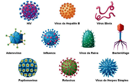 1 VÍRUS O vírus é uma partícula infeciosa minúscula que só se pode reproduzir infetando células hospedeiras. São seres Acelulares (não são constituídos por células), muito simples e pequenos (20–1000nm), que atravessam os filtros normalmente utilizados para bactérias. São considerados Parasitas Intracelulares Obrigatórios: não têm metabolismo próprio, e comandam uma célula hospedeira viva, utilizando os seus recursos para realizar as suas atividades vitais e produzir mais vírus – aminoácidos, nucleótidos para sintetizar DNA/RNA, ribossomas para síntese de proteínas e energia. As células hospedeiras são reprogramadas para se tornarem em “Fábricas de Vírus”. Os vírus são, ainda, incapazes de aumentar em tamanho e de se dividir. Estas características impedem que sejam considerados seres vivos. Fora do ambiente celular, os vírus são inertes. No entanto, quando invadem uma célula, a sua capacidade de replicação é surpreendente: 1 único vírus é capaz de dar origem a milhares de novos vírus, em poucas horas. Os vírus são agentes infeciosos, capazes de infetar seres vivos de todos os domínios (Eucarya, Archaea e Bacteria). Por este motivo, são os seres com maior diversidade biológica do planeta! No ser humano, provocam doenças como a gripe, sarampo, febre amarela, meningite, hepatite, SIDA e varíola. ESTRUTURA Não existe um padrão único de estrutura viral. A estrutura mais simples apresentada por um vírus consiste numa molécula de ácido nucleico coberta por muitas proteínas idênticas. 2 Os vírus mais complexos podem ter várias moléculas de ácido nucleico, assim como diversas proteínas associadas, cápside com formato definido e um complexo envelope externo com espículas. . Genoma Viral: apresentam um genoma constituído por uma ou várias moléculas de Ácidos Nucleicos (DNA ou RNA), as quais possuem a forma de cadeia simples ou cadeia dupla. A informação contida no vírus será utilizada para sintetizar proteínas e novo DNA/RNA, com a maquinaria da célula hospedeira. . Capsídeo Proteico: conjunto de várias proteínas que envolve e protege o ácido nucleico viral da digestão por enzimas. Tem regiões que permitem a passagem do ácido nucleico para o citoplasma da célula hospedeira. O capsídeo tem sempre origem no genoma do vírus! Os capsídeos podem apresentar vários formatos: Icosaedro (20 lados), Helicoidais e Complexos (uma cabeça de icosaedro ligada a uma cauda helicoidal). . Envelope: alguns vírus têm um revestimento externo formado por fosfolípidos, açúcares e proteínas em volta do capsídeo, utilizados para auxiliar na ligação e invasão da célula hospedeira, facilitando a fixação do vírus. O envelope tem origem na célula hospedeira! 3 Icosaedro SEM Envelope (Poliomielite, Adenovírus) Icosaedro COM Envelope (Retrovírus, Herpesvirus) Helicoidais (Filamentoso) SEM Envelope Helicoidais (Filamentoso) COM Envelope (Ébola) 4 Vírus Complexos CLASSIFICAÇÃO Os vírus podem ser classificados com base no(a): • Estrutura do Capsídeo: o vírus pode estar dentro do capsídeo ou dentro do capsídeo e do envelope. • Tipo de Genoma: DNA de cadeia simples (Parvovírus) ou cadeia dupla (Adenovírus, Herpesvírus e Poxvírus), RNA de cadeia simples (Picornavírus, Mixovírus, Togavírus, Rhabdovírus), RNA de cadeia dupla (Reovírus). • Especificidade (órgãos e tecidos que infeta). 5 MUTAÇÕES Os vírus estão constantemente a sofrer alterações genéticas. A maioria destas mutações são pontuais e silenciosas, ou seja, não alteram em nada o vírus. No entanto, outras conferem vantagens evolutivas, como a resistência a medicamentos antivirais. Por vezes, os genomas virais sofrem grandes alterações; quando isto acontece, por exemplo, nos vírus Influenza, temos a ocorrência de pandemias. Exemplo: gripe espanhola, gripe das aves. MECANISMO DE INFEÇÃO 6 Um período de incubação mais curto significa que mais rapidamente aparecem sintomas e mais depressa a pessoa começa o seu tratamento, diminuído probabilidades de contágio e melhorando o prognóstico! ETAPAS DA INFEÇÃO A infeção de uma célula hospedeira por um vírus é todo um processo que pode demorar entre poucas horas até alguns dias. Este processo chama-se Replicação Viral. 7 1. Adsorção do vírus à célula hospedeira: ligação do vírus à célula hospedeira. Proteínas virais no envelope (Espículas) ou no capsídeo, ligam-se a recetores da membrana plasmática da célula hospedeira. Estas interações são altamente especificas, como um modelo chave-fechadura, e determinam a tendência que o vírus tem para infetar determinada célula ou tecido. Nos momentos iniciais de adsorção, a interação proteína-recetores ainda é reversível. À medida que mais recetores se associam ao vírus, esta ligação torna-se irreversível, possibilitando a entrada do vírus na célula. 2. Penetração do vírus no citoplasma: após aderir à membrana, os vírus devem entrar na célula, para que o seu material genético seja processado e replicado. Este processo envolve a penetração no citosol e posterior desmontagem do capsídeo, libertando o genoma viral. Existem dois mecanismos que permitem a entrada do vírus, ambos dependentes da temperatura, que deve rondar os 37ºC: . Endocitose: a partícula viral entra na célula através de endossomas: a membrana plasmática da célula hospedeira rodeia o vírus formando vesículas. Vírus sem envelope, provocam a “morte” do endossoma (adenovírus) ou geram poros na membrana da vesícula, por onde sai o ácido nucleico viral (poliovírus). 8 . Fusão: quando a membrana plasmática se funde com o envelope do vírus (mecanismo exclusivo para vírus com envelope). O ácido nucleico e o capsídeo são libertados no interior da célula por fusão Direta entre o envelope viral e a membrana plasmática, ou de modo Indireto, onde acontece endocitose em vesículas, seguida de fusão, já dentr