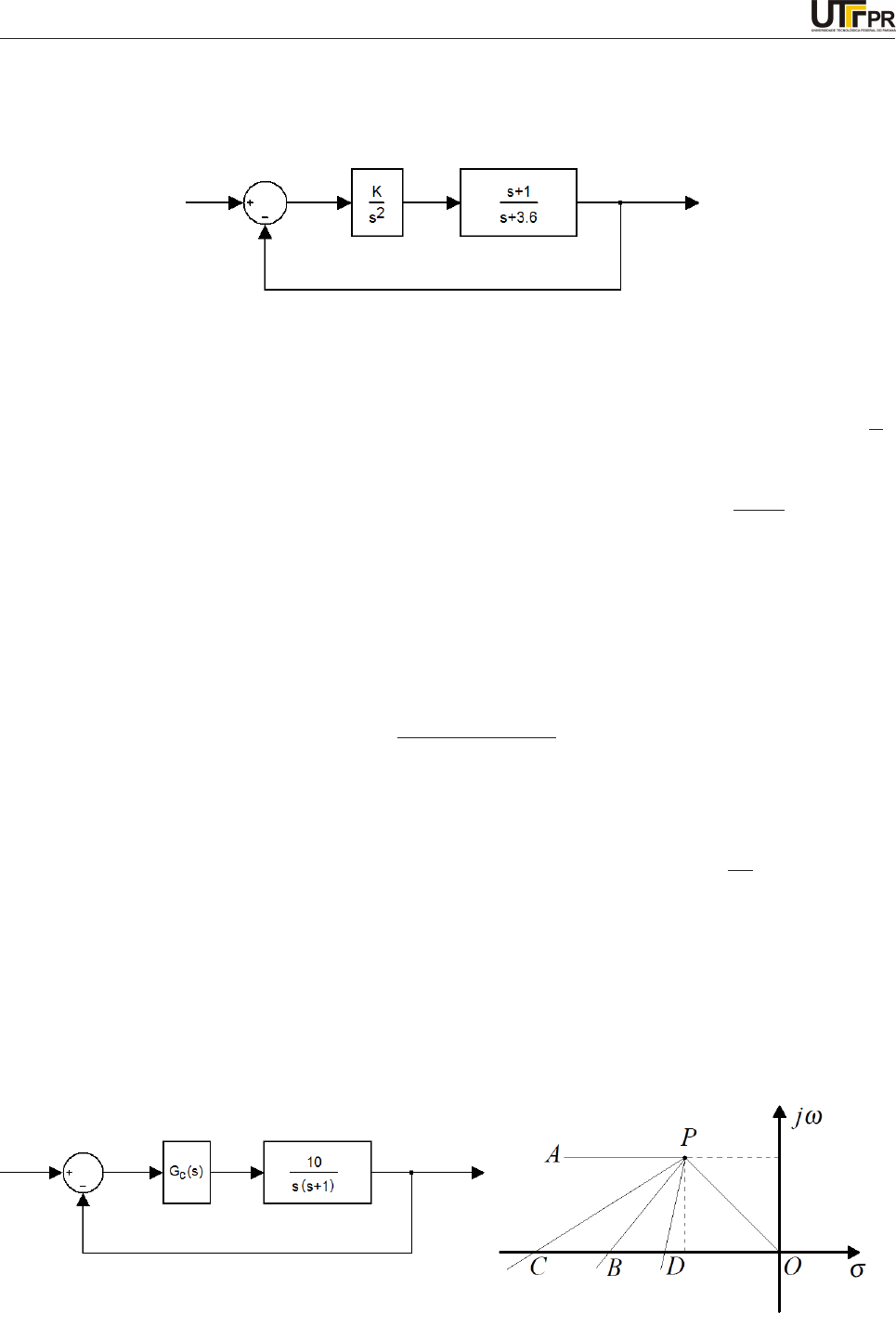 ET75H - SISTEMAS DE CONTROLE 1 - Prof.: Rafael Souto Questões Anteriores - Prova 2 Questão: Trace o gráfico do lugar das raízes do sistema de controle mostrado na Fig. 1. Figura 1: Sistema de controle com realimentação unitária. Questão: Considere um sistema de controle com realimentação unitária, cuja planta possa ser descrita porG(s) = 1 s2 . a) Trace o lugar das raízes desse sistema e avalie sua estabilidade. b) Suponha que seja acrescentado, no ramo direto, um controlador PI descrito porC(s) = K(s+1) s . Trace o novo lugar das raízes do sistema e reavalie sua estabilidade. c) Retirado o controlador PI do item anterior, suponha que um controlador PD descrito porC(s) = K(s + 1) seja acrescentado no ramo direto. Trace o novo lugar das raízes do sistema e reavalie sua estabilidade. Determine também para qual faixa de valores deK o sistema apresentará uma resposta subamortecida quando submetido a uma entrada do tipo degrau. Questão: Considere um sistema de controle com realimentação unitária, cuja função de transferência de malha aberta seja dada por G(s) = s+ 6 (s+ 2)(s2 + 2s+ 2) . a) Trace o lugar das raízes do sistema. Em seguida, verifique para quais valores de ganho proporcionalK o sistema permanecerá estável. b) Suponha que dois controladores estejam disponíveis para uso neste sistema: um controlador proporcional- derivativo do tipoGc1(s) = K(s+6) e um controlador avanço de fase do tipoGc2(s) = K s+2s+6 . A inserção de um destes controladores no ramo direto da malha poderia tornaro sistema instável para algum valor deK? Justifique. c) Caso não fosse tolerado sobressinal na resposta do sistema ao degrau unitário, qual destes controladores do item anterior,Gc1(s) ouGc2(s), um projetista deveria escolher para inserir no ramo diretoda malha de controle? Justifique. OBS.: Para esta questão, consideretan(0, 2) ≈ 10◦. Questão: Considere o sistema mostrado na Fig. 2. Figura 2: Sistema de controle com realimentação unitária. Figura 3: Plano S. a) Obtenha o tempo de acomodaçãots da resposta ao degrau unitário (para o critério de 5%). ET75H - SISTEMAS DE CONTROLE 1 - Prof.: Rafael Souto Questões Anteriores - Prova 2 b) projete um compensador de avanço de fase para que os pólos dominantes de malha fechada tenham coeficiente de amortecimentoξ = 0, 5 e frequência natural não amortecidaωn = 3 rad/s, ou seja, o sistema compensado deve possuirts = 2s. Obs.: Para este projeto, considere as seguintes aproximações, asquais não afetarão significativamente o desempenho final do sistema: − 3 2 + 3 √ 3 2 j ≈ 3ej120 ◦ − 1 2 + 3 √ 3 2 j ≈ 8 3 ej100 ◦ 1 2 + 3 √ 3 2 j ≈ 5 2 ej80 ◦ 3 + 3 √ 3 2 j ≈ 25 8 ej40 ◦ −6− 3 √ 3j ≈ 8ej220 ◦ tan 10◦ ≈ √ 3 9 tan 40◦ ≈ √ 3 2 tan 50◦ ≈ 2 √ 3 3 tan 80◦ ≈ 3 √ 3 Caso precise, utilize a Fig. 3 para auxiliá-lo no projeto. Questão: Considere o sistema de controle de um motor DC (realimentação unitária). Suponha que a função de transfe- rência do motor possa ser descrita por G(s) = 1 s(s+ 0.5077) . Projete um compensadorC(s) de modo que o sistema compensado satisfaça os seguintes requisitos: ζ ≈ 0, 342, ωn ≈ 1 eKv ≈ 1, 55. Questão: Considere o sistema de controle ilustrado na Fig. 4. Suponhaque a função de transferência da planta não seja conhecida, mas que seu diagrama de Bode tenha sido obtido experimentalmente, conforme a Fig. 5. Figura 4: Sistema de controle com realimentação unitária. −20 0 20 40 60 80 100 M ag ni tu de ( dB ) 10 −3 10 −2 10 −1 10 0 10 1 10 2 10 3 10 4 −90 −45 0 P ha se ( de g) Bode Diagram Frequency (rad/sec) Figura 5: Diagrama de Bode da planta. a) Determine o erro estacionário do sistema para uma entrada emrampa unitária. b) Projete um controlador atraso de fase com ganho unitário, isto é,Gc(s) = s+ 1 T s+ 1 βT , β > 1, a ser inserido no ramo direto, de modo que o erro estacionário do sistema para uma entrada em rampa unitária seja de 0,01. c) Desenhe a aproximação assintótica para o diagrama de Bode dafunção de transferência de malha aberta após a inserção do controlador. Questão: Desenhe o diagrama de Bode da seguinte função de transferência de malha aberta. Determine um valor aproximado para a margem de fase e para a margem de ganho. G(s) = 105 s+ 10 (s+ 100)(s+ 1000) (1) ET75H - SISTEMAS DE CONTROLE 1 - Prof.: Rafael Souto Questões Anteriores - Prova 2 Questão: Considere uma planta qualquer descrita por G(s) = 0.01 (s+ 104)2 (s+ 10)(s+ 103) e os seguintes controladores CPD(s) = 10 −3(s+ 103), CPI(s) = (s+ 10) s e CPID(s) = 10 −4 s 2 + 1010s+ 104 s . a) Esboce a aproximação assintótica do diagrama de Bode deG(s) e determine sua margem de fase e sua margem de ganho. b) Determine qual dos controladores disponíveis (CPD,CPI ouCPID) faz com que a margem de fase deC(s)G(s) se mantenha a mesma deG(s). Justifique sua resposta. Questão: Considere um sistema de controle com realimentação unitária, cuja função de transferência de malha aberta seja dada por G(s) = s+ 6 (s+ 2)(s2 + 2s+ 2) . Determine a função de transferênciaGc(s) = K (s+Z)2 s de um controlador PID sintonizado para esse sistema pelo se- gundo método de Ziegler-Nichols. OBS.: Para esta questão, considereπ ≈ 3. Questão: Considere o sistema descrito por [ ẋ1 ẋ2 ] = [ 0 6 1 −5 ] [ x1 x2 ] + [ 1 1 ] u y = [ 0 1 ] [ x1 x2 ] . a) O sistema é estável? Justifique. b) O sistema é controlável? Justifique. c) O sistema é observável? Justifique. Questão: Considere os seguintes sistemas: a) O sistema 1 é controlável? O sistema 2 é controlável? Justifique. b) Para o(s) sistema(s) em que você afirmou ser controlável no item anterior, determine a matriz de ganhoK de realimentação de estado para que os pólos de malha fechada sejam alocados ems = −4 e s = −2 utilizando um controle de realimentação de estado do tipou = −Kx. Questão: Considere um sistema descrito pelas seguintes equações 