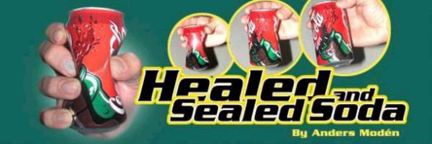 Reconstituindo uma Latinha de Refrigerante ou Cerveja Efeito: O Mágico pega uma lata de refrigerante amassada e aberta. Vira a lata e comprova que está vazia. O Mágico então concentra-se e como que por encanto, a lata começa a se desamassar, voltando ao normal. Não bastasse isso, a o mágico passa o dedo pelo lacre da lata e o inacreditável acontece, a lata volta a ficar lacrada. Após tudo isso, o Mágico abre a lata, o barulho do gás saindo é ouvido por todos, e vira a lata, só que desta vez o líquido é jogado para fora. Incrível. Isso mesmo, o líquido foi posto novamente na lata que a momentos atrás estava vazia. Para finalizar, o mágico toma o restante do refrigerante e até oferece ao público. Apenas uma lata comum é utilizada. Você vai precisar de: • Acessórios para preparação da lata • Instruções Detalhadas Mensagem Inicial: “Sempre que deparamos com um produto mágico, logo pegamos todas as peças e muitas vezes vemos que aquilo que sonhávamos acontecer nada mais era que um simples truque, uma montagem. Mas o que temos que entender é que o importante é aquilo que o público vê, ou seja, o efeito final, independente de como ele é feito.” Nick Morgan – Mágico Americano Preparação e Segredo: 1) 1) Para executar este belíssimo truque você irá precisar de uma lata de refrigerante ou cerveja cheia, uma agulha de costura e um pincel atômico preto. 2) 2) Pegue a lata e faça um furo na parte superior ou inferior, você escolhe, mas atenção, é só um único furo. Deixe sair um pouco do líquido e ao mesmo tempo vá amassando a lata. Faça isso com cuidado, para evitar que a lata fure em outros locais. (A seta indica o local onde deve ser feito o furo. Escolha um dos locais). (Você deve amassar a lata de modo que ela fique neste estado). 3) 3) Em seguida, vede o buraco feito com a agulha (isso pode ser feito com um pedaço de fita adesiva transparente, cola quente ou silicone). O ideal é que seja de silicone ou cola quente, pois assim o local ficará discreto e ninguém perceberá o furo. 4) 4) Pegue o pincel atômico preto e com bastante destreza pinte o bocal da lata. Se isto for bem feito, dará a nítida impressão de que a lata está aberta. Pronto, agora sua lata está preparada para a realização do truque. Tenha cuidado ao transportá-la, pois se muito agitada o gás agirá e começará a desamassar a lata antes da hora. (A figura mostra o bocal pintado com pincel atômico, dando impressão de que a lata está aberta) 5) 5) Pegue a lata pronta de modo que o dedo indicador fique por cima do furo feito com a agulha. Chame a atenção do espectador para a lata (mas não diga o que vai acontecer) e a vire de cabeça para baixo para o espectador ver que a lata está vazia. Atenção, não chame a atenção dizendo que a lata está vazia, deixe que o espectador perceba. Comece a movimentar a latinha, de modo regular, sem fazer movimentos bruscos, tudo bem natural, suave. O gás começa a agir e a lata vai voltando ao normal, se desamassando. (Perceba que durante a realização do truque, o dedo indicador fica pressionando o furo feito na lata) 6) 6) Após estar totalmente desamassada, num movimento sutil, passe o polegar no bocal da lata, retirando a tinta da caneta, dando a nítida impressão de que você lacrou a lata novamente. O público não acreditará no que está vendo. 7) 7) Mostre a lata totalmente reconstituída ao público. Abra o lacre da lata, e deixe todos perceberem o barulho do gás saindo, isto fará com todos fiquem surpresos. Jogue um pouco do líquido fora, mostrando a existência do mesmo e tome um pouco. Ao final, ofereça um pouco de refrigerante ao seu público. Ninguém acreditará no que está acontecendo. Dicas 1) Tenha sempre uma lata preparada. Deixe-a de lado. Quando alguém terminar de beber um refrigerante, peça a ele a lata. Não diga nada, simplesmente peça a lata. Na hora que todos estiverem distraídos, troque a lata. Chame a atenção do público e inicie o truque. Desta forma, todos ficarão ainda mais surpresos. 2) Deixe a lata preparada num local por onde você passará com um amigo. Ao avistar a lata jogada no chão, chame a atenção dele e vá pegar a lata. Inicie agora o procedimento. Nota Final: É importante notar que se bem executada, esta mágica fará sua reputação como mágico. Uma mágica realmente incrível, e o melhor, feito apenas com uma lata comum. Lembre-se: * Treine bastante na frente de um espelho antes de executar a mágica para alguém. * Nunca revele o Segredo a ninguém.