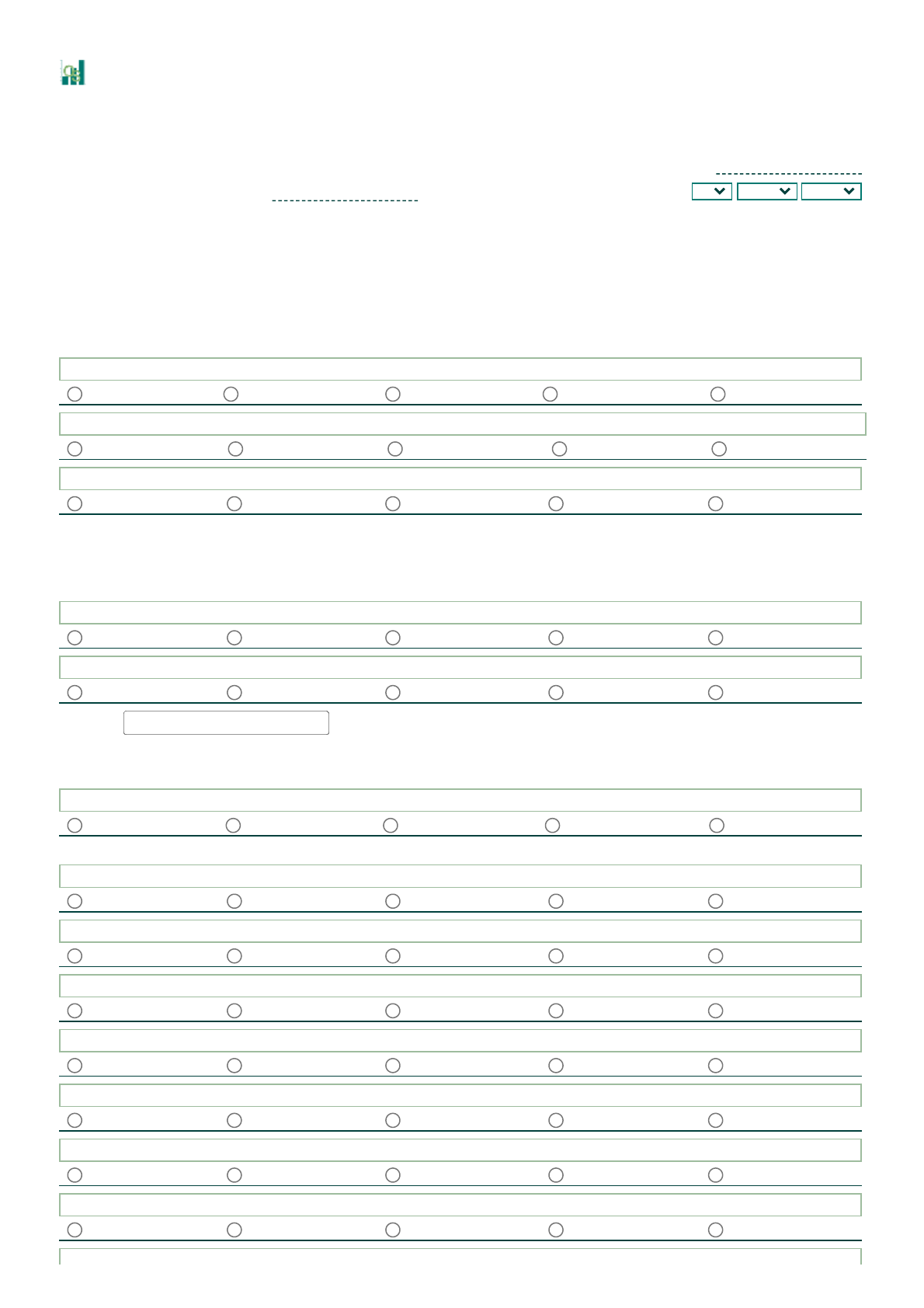 08/07/2020 Incapacidade no quadril e resultado da osteoartrite (HOOS) - Ortopedia Scores www.orthoscores.com/scorepages/hip_disability_osteoarthritis_outcome_score_hoos.html?textfield=&textfield=&x=1&month=1&YYYY=2002&on… 1/3 www.orthopaedicscores.com Data de conclusão 8 de julho de 2020 Incapacidade no quadril e resultado da osteoartrite (HOOS) Nome do paciente (ou referência Nome do clínico (ou referência) Dob do paciente 1 Jan 2002 INSTRUÇÕES: Esta pesquisa solicita sua opinião sobre o quadril. Essas informações nos ajudarão a acompanhar como você se sente sobre o quadril e o quão bem você é capaz de realizar suas atividades habituais. Responda a todas as perguntas marcando a caixa apropriada. Se você não tiver certeza sobre como responder a uma pergunta, dê a melhor resposta possível. Sintomas - Essas perguntas devem ser respondidas pensando nos sintomas da anca durante a última semana. S1 Você se sente pressionado, ouve um clique ou qualquer outro tipo de ruído do seu quadril? Nunca Raramente As vezes Frequentemente Sempre S2 Dificuldades em abrir bem as pernas Nenhum Leve Moderado Forte Extremo S3 Dificuldades para caminhar ao caminhar Nenhum Leve Moderado Forte Extremo Rigidez - As perguntas a seguir dizem respeito à quantidade de rigidez nas articulações que você experimentou durante a última semana no quadril. Rigidez é uma sensação de restrição ou lentidão na facilidade com que você move sua articulação do quadril. S4 Quão severa é a rigidez da articulação do quadril após o primeiro despertar da manhã? Nenhum Leve Moderado Forte Extremo S5 Quão severa é a rigidez do quadril depois de sentar, deitar ou descansar no final do dia? Nenhum Leve Moderado Forte Extremo Subtotal: 0 Dor P1 Com que frequência seu quadril é doloroso? Nunca Por mês Semanal Diariamente Sempre Que quantidade de dor no quadril você teve na última semana durante as seguintes atividades? P2 Endireitando totalmente o quadril Nenhum Leve Moderado Forte Extremo P3 Dobrar totalmente o quadril Nenhum Leve Moderado Forte Extremo P4 Andando na superfície plana Nenhum Leve Moderado Forte Extremo P5 Subir ou descer escadas Nenhum Leve Moderado Forte Extremo P6 À noite, enquanto na cama Nenhum Leve Moderado Forte Extremo P7 Sentado ou deitado Nenhum Leve Moderado Forte Extremo P8 Ficando de pé Nenhum Leve Moderado Forte Extremo 08/07/2020 Incapacidade no quadril e resultado da osteoartrite (HOOS) - Ortopedia Scores www.orthoscores.com/scorepages/hip_disability_osteoarthritis_outcome_score_hoos.html?textfield=&textfield=&x=1&month=1&YYYY=2002&on… 2/3 P9 Andar sobre uma superfície dura (asfalto, concreto, etc) Nenhum Leve Moderado Forte Extremo P10. Andando em uma superfície irregular Nenhum Leve Moderado Forte Extremo Subtotal: 0 Função, vida diária - As perguntas a seguir dizem respeito à sua função física. Com isso, queremos dizer sua capacidade de se movimentar e de cuidar de si mesmo. Para cada uma das atividades a seguir, indique o grau de dificuldade que você teve na última semana devido ao seu quadril. Al. Escadas descendentes Nenhum Leve Moderado Forte Extremo A2 Escadas ascendentes Nenhum Leve Moderado Forte Extremo A3 Subindo da sessão Nenhum Leve Moderado Forte Extremo A4. Em pé Nenhum Leve Moderado Forte Extremo A5 Dobrar no chão / pegar um objeto Nenhum Leve Moderado Forte Extremo A6 Andando na superfície plana Nenhum Leve Moderado Forte Extremo A7 Entrando / saindo do carro Nenhum Leve Moderado Forte Extremo A8 Ir as compras Nenhum Leve Moderado Forte Extremo A9 Calçar meias / meias Nenhum Leve Moderado Forte Extremo A10 Levantando-se da cama Nenhum Leve Moderado Forte Extremo A11 Tirando meias / meias Nenhum Leve Moderado Forte Extremo A12 Deitado na cama (virando, mantendo a posição do quadril) Nenhum Leve Moderado Forte Extremo A13 Entrando / saindo do banho Nenhum Leve Moderado Forte Extremo A14. Sentado Nenhum Leve Moderado Forte Extremo A15 Entrar / sair do banheiro Nenhum Leve Moderado Forte Extremo A16 Tarefas domésticas pesadas (movimentação de caixas pesadas, limpeza de pisos etc.) Nenhum Leve Moderado Forte Extremo A17 Tarefas domésticas leves (cozinhar, tirar o pó, etc.) Nenhum Leve Moderado Forte Extremo Subtotal: 0 08/07/2020 Incapacidade no quadril e resultado da osteoartrite (HOOS) - Ortopedia Scores www.orthoscores.com/scorepages/hip_disability_osteoarthritis_outcome_score_hoos.html?textfield=&textfield=&x=1&month=1&YYYY=2002&on… 3/3 Função, esportes e atividades recreativas - As perguntas a seguir dizem respeito à sua função física quando você está ativo em um nível superior. As perguntas devem ser respondidas pensando no grau de dificuldade que você teve durante a última semana devido ao seu quadril. SP1. Agachamento Nenhum Leve Moderado Forte Extremo SP2. Corrida Nenhum Leve Moderado Forte Extremo SP3. Torcendo / girando no joelho machucado Nenhum Leve Moderado Forte Extremo SP4. Andando em superfície irregular Nenhum Leve Moderado Forte Extremo Subtotal: 0 Qualidade de vida Q1 Quantas vezes você está ciente do seu problema no quadril? Nunca Por mês Semanal Diariamente Constantemente Q2 Você modificou seu estilo de vida para evitar atividades potencialmente prejudiciais ao seu quadril? De modo nenhum Suavemente Moderadamente Severamente Totalmente Q3 Quanto você está preocupado com a falta de confiança no seu quadril? De modo nenhum Suavemente Moderadamente Severamente Extremamente Q4. Em geral, quanta dificuldade você tem com o quadril? Nenhum Leve Moderado Forte Extremo Subtotal: 0 Muito obrigado por preencher todas as perguntas deste questionário. Imprimir página Janela fechada Redefinir Para salvar esses dados, imprima ou Salvar como CSV Nota: Esta página não pode ser salva devido à proteção de dados do paciente, portanto, imprima o formulário preenchido antes de fechar a janela. O HOOS Hip Survey Score é 0 Referência para a pontuação: Klassbo M, Larsson E, Mannevik E. Incap