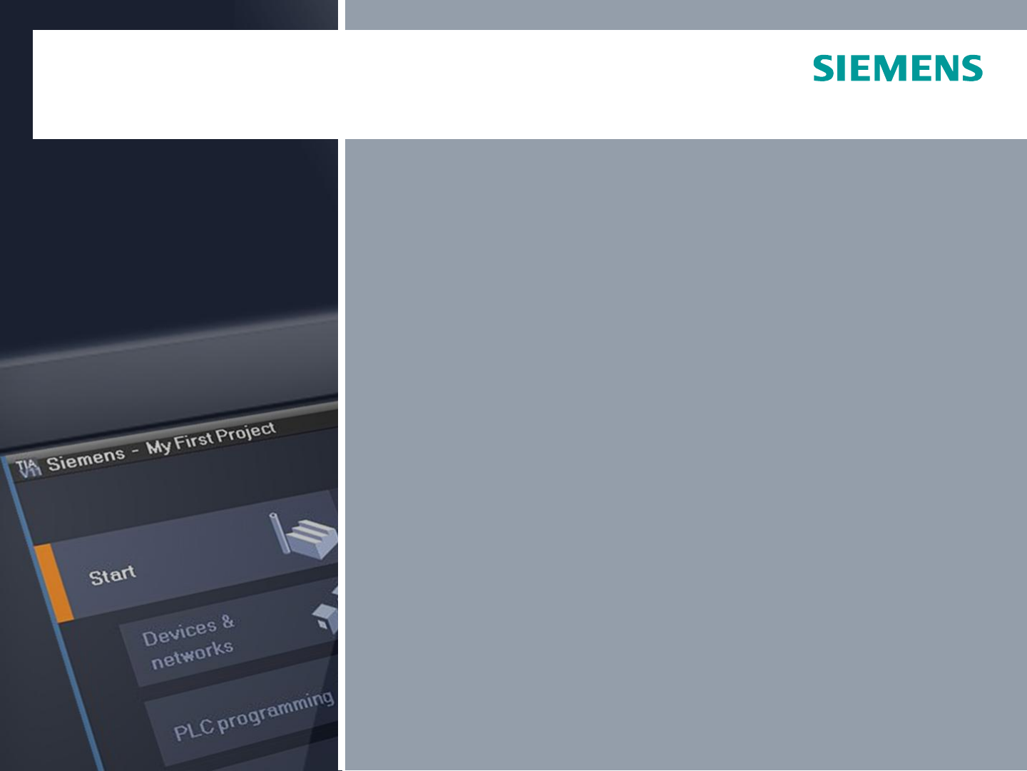 TIA Portal Workshop © Siemens AG 2015. All rights reserved. Unrestricted Page 11 Siemens AG © 2015 SIMATIC S7-1500: Modular Controller for the Mid to Upper Performance Range Page 12 Siemens AG © 2015 SIMATIC S7-1500: Modules max. 32 central modules in rack CPU DI, DO, AI, AO ... CM/CP: - Point-to-Point (RS232, RS485) - PROFIBUS - PROFINET PS/PM (optional) TM: - Counting - Position sensing Single-tier assembly Multi-tier distributed ET200MP max. 2 per rack for backplane bus supply of subsequent I/O modules PS new power segment Page 13 Siemens AG © 2015 SIMATIC S7-1500: Installation and Mounting Positions Profile rail with integrated mounting rail Vertical Horizontal Backplane is in planning stage Busverbinder If no backplane Bus connector Page 14 Siemens AG © 2015 SIMATIC S7-1500: Connection Technology/Front Connector 4 jumper links can be inserted Wiring position Strain relief by means of cable ties EntriegelungslascheRelease latch Operating position Wiring position Page 15 Siemens AG © 2015 SIMATIC S7-1500: CPU-Display → Overview ● Every S7-1500 CPU is delivered with a Display ● Two sizes depending on the CPU type 1.36” up to CPU1513 2.4” as of CPU1515 ● Has its own MLFB → can be ordered as replacement part ● CPU can be operated without the Display ● Removal and insertion possible during running operation → CPU stays in RUN ● Bilingual display (menu and error/message texts) ● Language can be switched during running operation Page 16 Siemens AG © 2015 SIMATIC S7-1500: CPU-Display → Menu and Colors Colors of status information and their meaning: green RUN of CPU, RUN with pending alarm message yellow STOP or CPU HOLD red Error white Connection setup or connection to CPU lost Main menu items and their meaning: Overview (CPU status: name, type, MLFB, version) Diagnostics (display diagnostics buffer, message display) Settings (CPU settings: addresses, time, operating mode, CPU Reset, protection level, unlock Display when password set) Modules (status information of modules in the system) Display (display settings: brightness, display language, energy-saving times, MLFB, version) Page 18 Siemens AG © 2015 SIMATIC S7-1200/1500: Memory Cards Serial number of the SD card Product version Order number Card size Slide switch for write-protect (must not be write-protected) Write with: ● Commercially available SD card reader ● Field PG 1 2 3 4 5 SIMATIC Memory Card in the S7-1200 / S7-1500: ● Load memory ● Distribution of programs (only S7-1200) ● Firmware update ● Documentation ● Memory Card Binding ● Unlinked DBs ● Archiving of data ● Module exchange without PG Page 32 Siemens AG © 2015 TIA Portal: Portal View and Project View Portal View · Task-oriented · Fast project entry Project View · Hierarchical project structuring · All editors, parameters and data accessible Page 33 Siemens AG © 2015 Portal View Selection window for the selected action Migration New project Switch to Project view Hardware and network configuration Portals Actions of the selected portal Accessible devices HMI configuration Block Editor Drive parameterization User interface language Page 34 Siemens AG © 2015 Project View Working area Details view Task bar (opened editors) Project navigation (Project tree) Inspector window - Properties - Info output - Diagnostics Task Cards (tools) Page 35 Siemens AG © 2015 Project Tree Device group Block group CPU Language settings for the entire project Online access Project Distributed I/O PLC tags CPU program Local modules (central I/O) SIMATIC Card Reader HMI device Page 37 Siemens AG © 2015 Online Tools, Configuring and Parameterizing the Hardware Task Cardwith CPU online ® Status, Diagnostics offline ® Configuration, Parameterization Page 38 Siemens AG © 2015 Online Connection via Industrial Ethernet: IP Address and Subnet Mask MAC Address: 08-00-06-01-74-10 Subnet Mask: 255.255.255.0 IP Address: 192.168.111.10 MAC Address: 08-00-06-01-74-20 Subnet Mask: 255.255.255.0 IP Address: 192.168.111.12 Subnet Node Subnet Node Page 39 Siemens AG © 2015 Online Access: Accessible Devices in the Portal View Call online accesses of Project view Page 40 Siemens AG © 2015 Accessible Devices in the Project View: CPU Online Access: Reading-out the Diagnostics Buffer Details for the entry line selected above Show / hide interfaces Page 41 Siemens AG © 2015 Accessible Devices in the Project View: CPU Online Access: CPU-RUN/STOP, MRES Page 42 Siemens AG © 2015 Online Access to the CPU: IP Address, Name, Time, FW Update, Memory Card Page 43 Siemens AG © 2015 Resetting the CPU using the Mode Selector Switch 1. Set the mode selector switch to STOP within 3 sec !!! RUN STOP MRES 2. Press and hold the mode selector switch in the MRES position until the RUN/STOP LED has flashed 2x slowly 3. Press and hold the mode selector switch in the MRES position until the RUN/STOP LED begins to flash quickly 4. Set the mode selector switch to RUN A CPU restart is carried out STOP Result: With inserted PROGRAM card ® Memory reset Without inserted card ® Reset to factory settings RUN/STOP LED of the S7-1500 RUN STOP MRES RUN STOP MRES then let go again RUN STOP MRES RUN STOP MRES then let go again RUN STOP MRES Page 44 Siemens AG © 2015 Components of the "Devices & Networks" Editor Device configuration and module parameter assignment Connection configuration Topology configuration Page 45 Siemens AG © 2015 Devices & Networks: Device View (Hardware Configuration) Module parameter assignment ® Properties in the Inspector window Address parameter assignment ® (right) section in the working area Page 46 Siemens AG © 2015 Setpoint Configuration: Creating a Hardware Station Portal view Project view Page 47 Siemens AG © 2015 Inserting / Deleting a Module Possible slots Inserting from the Hardware catalog 1xR Deleting in the Network view deletes entire station Deleting in the Device view deletes individual modules Page 48 Siemens AG © 2015 Area for Modul
