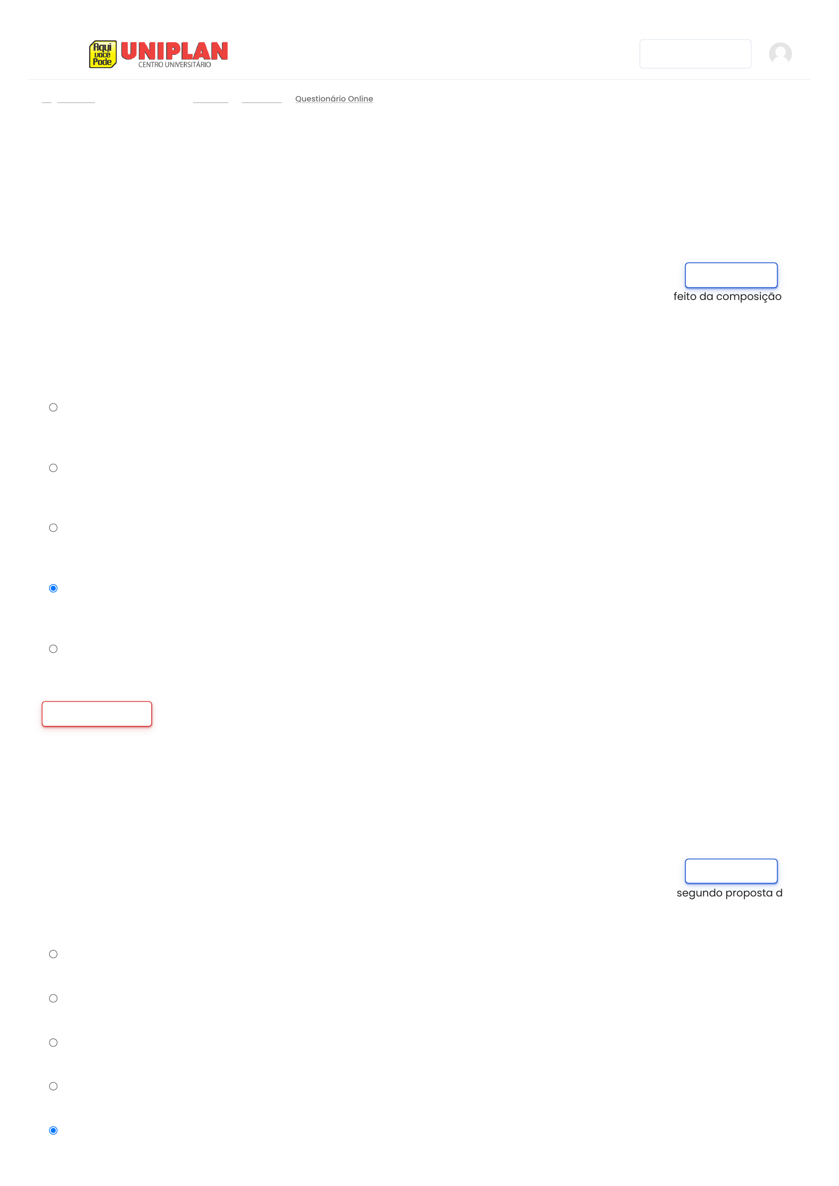 15/11/2020 Questionário Online www.unipvirtual.com.br/avauniplan/mod/quiz/attempt.php?attempt=944310&cmid=29131 1/3 - Minhas disciplinas - - - Bibliotecas Virtuais Página inicial EI-B0200 Unidade 2 Questionário Online Podemos considerar que a definição da saúde como resultado dos modos de organização social da produção e como efeito da composição de múltiplos fatores exige que o Estado assuma a responsabilidade por uma política de saúde integrada às demais políticas sociais e econômicas e garanta a sua efetivação. Essa visão de saúde ratifica, também, o engajamento do setor saúde por condições de vida mais dignas e pelo exercício pleno da cidadania. Nesse sentido, identifique entre os parágrafos abaixo, aquele que não corrobora com essa afirmação: Escolha uma: a. A política de promoção da saúde deve estar comprometida com serviços e ações de saúde que coloquem os sujeitos – usuários e profissionais de saúde – como protagonistas na organização do processo produtivo em saúde, entendendo que aí se produz saúde, sujeitos, vida. b. A política de promoção da saúde deve deslocar o olhar e a escuta dos profissionais de saúde da doença para os sujeitos em sua potência de criação da própria vida, objetivando a produção de coeficientes crescentes de autonomia durante o processo do cuidado à saúde. c. A promoção da saúde é uma importante resposta à medida que destaca ações intersetoriais como estratégia de enfrentamento dos problemas quanto ao meio ambiente, à urbanização, à segurança alimentar e nutricional, ao desemprego, à moradia, ao uso de drogas lícitas e ilícitas, entre outras. d. A política de promoção da saúde deve priorizar a assistência às pessoas com problemas de saúde específicos, em unidade de atenção intensiva, por meio de acesso referenciado ao diagnóstico inicial, oferecido por equipe com diversas especialidades médicas. Também deve focar a terapia medicamentosa e o acesso aos exames complexos. e. A promoção da saúde é um campo teórico-prático-político que, em sua composição com os conceitos e as posições do Movimento da Reforma Sanitária, delineia-se como uma política que deve percorrer o conjunto das ações e projetos em saúde, apresentando-se em todos os níveis de complexidade da gestão e da atenção do sistema de saúde. Limpar minha escolha A Estratégia Saúde da Família é uma estratégia do processo de reorganização da atenção básica de saúde, envolvendo, segundo proposta do Ministério da Saúde, o trabalho de uma equipe que: Escolha uma: a. Atende as pessoas, impossibilitadas de se movimentar até os serviços tradicionais, no seu próprio domicílio, e é o agente comunitário de saúde quem faz o encaminhamento dos pacientes para a equipe de saúde da família. b. Substitui o trabalho dos profissionais do Sistema Único de Saúde para favorecer o fomento de movimentos sociais por melhores condições de vida. c. Estabelece, a partir do cadastro das famílias de seu território, o número de médicos especialistas que devem compor a equipe de atenção básica. d. Pode ser limitada ao agente comunitário de saúde e ao médico nos municípios que não dispõem de grande número de profissionais de saúde. e. Tem no agente comunitário de saúde o “elo de ligação” da equipe com a comunidade, devendo este ser residente na sua área de atuação. Marcar questão Questão 1 Ainda não respondida Vale 2,00 ponto(s). Marcar questão Questão 2 Ainda não respondida Vale 2,00 ponto(s). http://www.unipvirtual.com.br/avauniplan http://www.unipvirtual.com.br/avauniplan/ http://www.unipvirtual.com.br/avauniplan/course/view.php?id=1068 http://www.unipvirtual.com.br/avauniplan/course/view.php?id=1068#section-2 http://www.unipvirtual.com.br/avauniplan/mod/quiz/view.php?id=29131 http://www.unipvirtual.com.br/avauniplan/mod/quiz/attempt.php?attempt=944310&cmid=29131 15/11/2020 Questionário Online www.unipvirtual.com.br/avauniplan/mod/quiz/attempt.php?attempt=944310&cmid=29131 2/3 Limpar minha escolha A promoção da saúde representa um dos eixos estruturantes da atenção primária em saúde e entende que o espaço de atuação extrapola o setor saúde. Neste sentido, a promoção da saúde representa: Escolha uma: a. Uma forma de preparar as pessoas para conseguirem um emprego. b. Uma forma de atendimento que se destina igualmente às pessoas, independentemente de suas condições socioeconômicas. c. Uma forma de enfrentar os desafios referentes à saúde e qualidade de vida através da responsabilidade compartilhada entre gestores e sociedade organizada. d. Uma forma de as pessoas mais carentes aprenderem questões de saúde com os técnicos, que são pessoas que detêm o conhecimento. e. Todas as alternativas estão corretas. Limpar minha escolha A distribuição das principais causas de mortalidade e morbidade têm mudado profundamente nos países desenvolvidos e em muitos países em desenvolvimento se observa uma tendência similar. Em 2001, as doenças não transmissíveis foram as causas de 60% dos casos em 56 milhões de disfunções anuais e de 47% de carga mundial de mortalidade. Considerando que essas cifras e o crescimento previsto dessa carga estão profundamente associados com a prevenção das doenças não transmissíveis, é possível afirmar que este seja o grande desafio para a saúde pública mundial (WHA57.17, 22/05/2004). Em relação à promoção da saúde, a Estratégia Global indica que: Escolha uma: a. A eficácia das políticas de promoção de vida saudável inclui uma sintonia entre o comunicador e o ouvinte, de tal forma que a mensagem possa ser assimilada. b. A simples difusão de conhecimentos é um fator insuficiente para mudanças sustentáveis no estilo de vida e hábitos da população. c. A maioria dos fatores de risco ganha evidência na segunda metade da vida, razão pela qual a prevenção deve ter como alvo os adultos e i