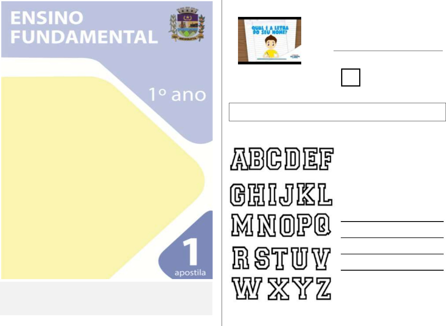 SR. RESPONSÁVEL, CONTAMOS COM SUA COLABORAÇÃO PARA QUE AUXILIEM AS CRIANÇAS LENDO TODAS AS PROPOSTAS, CONVERSANDO COM ELAS SOBRE OS ASSUNTOS ABORDADOS, PERMITINDO QUE SE EXPRESSEM LIVREMENTE E AUXILIANDO QUANDO PRECISO. 1º DIA QUAL É A LETRA DO SEU NOME?- A TURMA DO SEU LOBATO (VOLUME 3-MÚSICA INFANTIL) https://www.youtube.com/watch?v=CtOxUoEO4ks 1- A PRIMEIRA LETRA DO SEU NOME É: 2- ESCREVA O SEU NOME NO ESPAÇO ABAIXO: 3- PINTE NO ALFABETO AS LETRAS USADAS PARA ESCREVER O SEU NOME: 4- O NOSSO NOME É FORMADO POR NOMES E SOBRENOMES. CONSULTE A SUA CERTIDÃO DE NASCIMENTO OU IDENTIDADE E ESCRVEVA SEU NOME COMPLETO. https://www.youtube.com/watch?v=CtOxUoEO4ks 2º DIA OLÁ ! EU ME CHAMO CHARLOTTE E TENHO SETE ANOS DE IDADE! EU TENHO UM RECADINHO PARA VOCÊ: TODOS SABEMOS DA EXISTÊNCIA DO CORONAVÍRUS . UMA DOENÇA MUITO SÉRIA! POR ISSO, PRECISAMOS RESPEITAR TODAS AS INSTRUÇÕES PASSADAS POR ESPECIALISTAS DA SAÚDE. CHARLOTTE SE DEFENFDE DO CORONAVÍRUS https://www.youtube.com/watch?v=5rLGlL3sl9I 1- MARQUE O CERTO. UMA FORMA DE PREVENIR O CORONAVÍRUS É SEMPRE: 2- LIGUE A IMAGEM A PALAVRA QUE INDICA A ORIENTAÇÃO DOS ESPECIALISTAS EM SAÚDE QUE DEVEMOS EVITAR, NESSE MOMENTO. BEIJOS ABRAÇO APERTO DE MÃOS 3- COMPLETE A PALVRA COM A LETRA QUE FALTA; LAVE COM FREQUÊNCIA AS: ____ÃOS 3º DIA 1-ASSINALE O NOME DAS FIGURAS. MÃO PÃO CÃO 2- CONTE OS ELEMENTOS DE CADA CONJUNTO E ESCREVA O NUMERAL QUE CORRESPONDE À QUANTIDADE. __________ ____________ _____________ 3- COMPLETE OS CONJUNTOS ATÉ COMPLETAR 10 ELEMENTOS. 4- COMPLETE A SEQUÊNCIA NUMÉRICA: 0 2 4 5 8 10 DENTE LENTE PENTE https://www.youtube.com/watch?v=5rLGlL3sl9I 4º DIA LEIA A PARLENDA E PREENCHA OS QUADRADOS AO LADO COM O RESPECTIVO NÚMERO. FEIJÃO COM ARROZ; FEIJÃO NO PRATO; FALAR INGLÊS; COMER BISCOITO; COMER PASTÉIS. 2- PINTE OS QUADROS QUE REPRESENTAM A QUANTIDADE DE SÍLABAS DAS PALAVRAS. 3- LEIA AS PALAVRAS E RESPONDA COM A QUANTIDADE DE: 5º DIA VAMOS BRINCAR DE AMARELINHA! COMPLETE A IMAGEM AO LADO, FAÇA IGUAL NO CHÃO E CONVIDE QUEM ESTÁ PERTO DE VOCÊ PARA BRINCAR. DIVIRTAM-SE! FONTE: https://vejario.abril.com.br/cidade/brincadeiras-de- rua-infancia-ferias-criancas/l SUGESTÃO AMARELINHAhttps://www.youtube.com/watch?v=bA4fMRt7g3c RESPONDA SOBRE A PALAVRA AMARELINHA: A LETRA INICIAL QUANTIDADE DE LETRAS QUANTIDADE DE SÍLABAS 3-COMPLETE O ALFABETO COM AS LETRAS QUE FALTAM. https://vejario.abril.com.br/cidade/brincadeiras-de-rua-infancia-ferias-criancas/ https://vejario.abril.com.br/cidade/brincadeiras-de-rua-infancia-ferias-criancas/ http://escoludica.blogspot.com/2011/11/jogos-e-brincadeiras-na-ed-fisica_04.html http://escoludica.blogspot.com/2011/11/jogos-e-brincadeiras-na-ed-fisica_04.html http://escoludica.blogspot.com/2011/11/jogos-e-brincadeiras-na-ed-fisica_04.html https://www.youtube.com/watch?v=bA4fMRt7g3c 6º DIA EM COMBATE AO CORONAVÍRUS, O CASCÃO DOMINOU SEU MEDO DE ÁGUA E LAVOU SUAS MÃOS! 1- MARQUE A RESPOSTA CORRRETA. O CASCÃO TEM MEDO DE: ESCURO ÁGUA 2- VOCÊ TEM MEDO DE ALGO? SIM NÃO 3- RISQUE OS NOMES QUE TÊM A MESMA LETRA INICIAL DE CORONAVIRUS. MÔNICA CEBOLINHA CASCÃO 4- PINTE OUTROS HÁBITOS DE HIGIENE QUE SEMPRE DEVEMOS TER. 7º DIA 1 - LEIA OS NOMES DOS PERSONAGENS E ESCREVA QUANTAS LETRAS TEM CADA PALAVRA ABAIXO: CASCÃO ___ JEREMIAS _____ MÔNICA ___ CEBOLINHA __ MAGALI ___ 2- PINTE AS SÍLABAS QUE FORMAM O NOME DA PERSONAGEM, DEPOIS, ESCREVA-O. CE LU NI MÔ CA MA PA CAS LI __________ ___________ 3- SIGA AS INSTRUÇÕES: PINTE DE AMARELO O CASCÃO QUE ESTÁ A DIREITA. PINTE DE VERDE O CASCÃO QUE ESTÁ A ESQUERDA. RISQUE O CASCÃO QUE ESTÁ NO MEIO. BO LU CÃO JE CA MA PA CAS LI 8º DIA APROVEITE ESSE TEMPO COM SUA FAMÍLIA E CANTEM JUNTOS ESSA CANÇÃO: https://www.youtube.com/watch?v=a6rT0x4ZSj4&feature=youtu.be PEIXE VIVO COMO PODE O PEIXE VIVO VIVER FORA DA ÁGUA FRIA? COMO PODE O PEIXE VIVO VIVER FORA DA ÁGUA FRIA? COMO PODEREI VIVER, COMO PODEREI VIVER, SEM A TUA, SEM A TUA, SEM A TUA COMPANHIA? OS PASTORES DESTA ALDEIA JÁ ME FAZEM ZOMBARIA. OS PASTORES DESTA ALDEIA JÁ ME FAZEM ZOMBARIA. POR ME VER ASSIM CHORANDO SEM A TUA, SEM A TUA COMPANHIA. 1-A PRIMEIRA LETRA DO NOME DESSA IMAGEM É: C D F P 2-FAÇA UM DESENHO SOBRE A CANTIGA. 3-COMPLETE O TRECHO DA MÚSICA COM A PALAVRA QUE FALTA. COMO PODE O ______ VIVO VIVER FORA D’ÁGUA FRIA? 4-QUANTOS PEIXES HÁ? https://www.youtube.com/watch?v=a6rT0x4ZSj4&feature=youtu.be 9º DIA 1- CIRCULE AS LETRAS P NA CANTIGA. PEIXE VIVO COMO PODE O PEIXE VIVO VIVER FORA DA ÁGUA FRIA? COMO PODE O PEIXE VIVO VIVER FORA DA ÁGUA FRIA? COMO PODEREI VIVER, COMO PODEREI VIVER, SEM A TUA, SEM A TUA, SEM A TUA COMPANHIA? OS PASTORES DESTA ALDEIA JÁ ME FAZEM ZOMBARIA. OS PASTORES DESTA ALDEIA JÁ ME FAZEM ZOMBARIA. POR ME VER ASSIM CHORANDO SEM A TUA, SEM A TUA COMPANHIA. 2- QUANTAS VEZES APARECE A LETRA P NA CANTIGA? __________ 3- PINTE AS FIGURAS QUE COMEÇAM COM A LETRA P 10º DIA HORA DE BRINCAR!!!! CONVIDE UM ADULTO PARA BRINCAR COM VOCÊ! SE HOUVER OUTRAS CRIANÇAS POR PERTO, CONVIDE-AS TAMBÉM PARA PARTICIPAR. O ADULTO E A CRIANÇA COM UM OBJETO NA MÃO. O ADULTO EM FRENTE À CRIANÇA COMEÇA A POSICIONAR O OBJETO, VERBALIZANDO ONDE O COLOCA. EX: EMBAIXO, EM CIMA, AO LADO, DO OUTRO LADO. A CRIANÇA DEVE POSICIONAR SEU OBJETO E REPETIR IGUALMENTE A PALAVRA. JOGOS E BRINCADEIRAS CARMENLANDIA http://profecarminha.blogspot.com/2011/06/ SUGESTÃO: PALAVRA CANTADA EM CIMA EMBAIXO https://www.youtube.com/watch?v=BYnoiv9RXgU http://profecarminha.blogspot.com/2011/06/ https://www.youtube.com/watch?v=BYnoiv9RXgU 11º DIA LEIA: 1- MARQUE A RESPOSTA CORRETA. ESSE TEXTO É? ( ) UMA RECEITA ( ) UM ANÚNCIO ( ) UM CONVITE O CONVITE É UM TEXTO CURTO QUE TEM A FUNÇÃO DE PASSAR AS INFORMAÇÕES SOBRE O EVENTO PARA O QUAL A PESSOA FOI CONVIDADA. NELE DEVE ESTAR ESCRITO: A DATA, O HORÁRIO, O LOCAL DO EVENTO E O NOME DE QUEM ESTÁ CONVIDANDO. 2- CIRCULE A RESPOSTA CORRETA. O ASSUNTO PRINCIPAL DESSE TEXTO É CONVIDAR PARA UMA FESTA DE: CASAMENT
