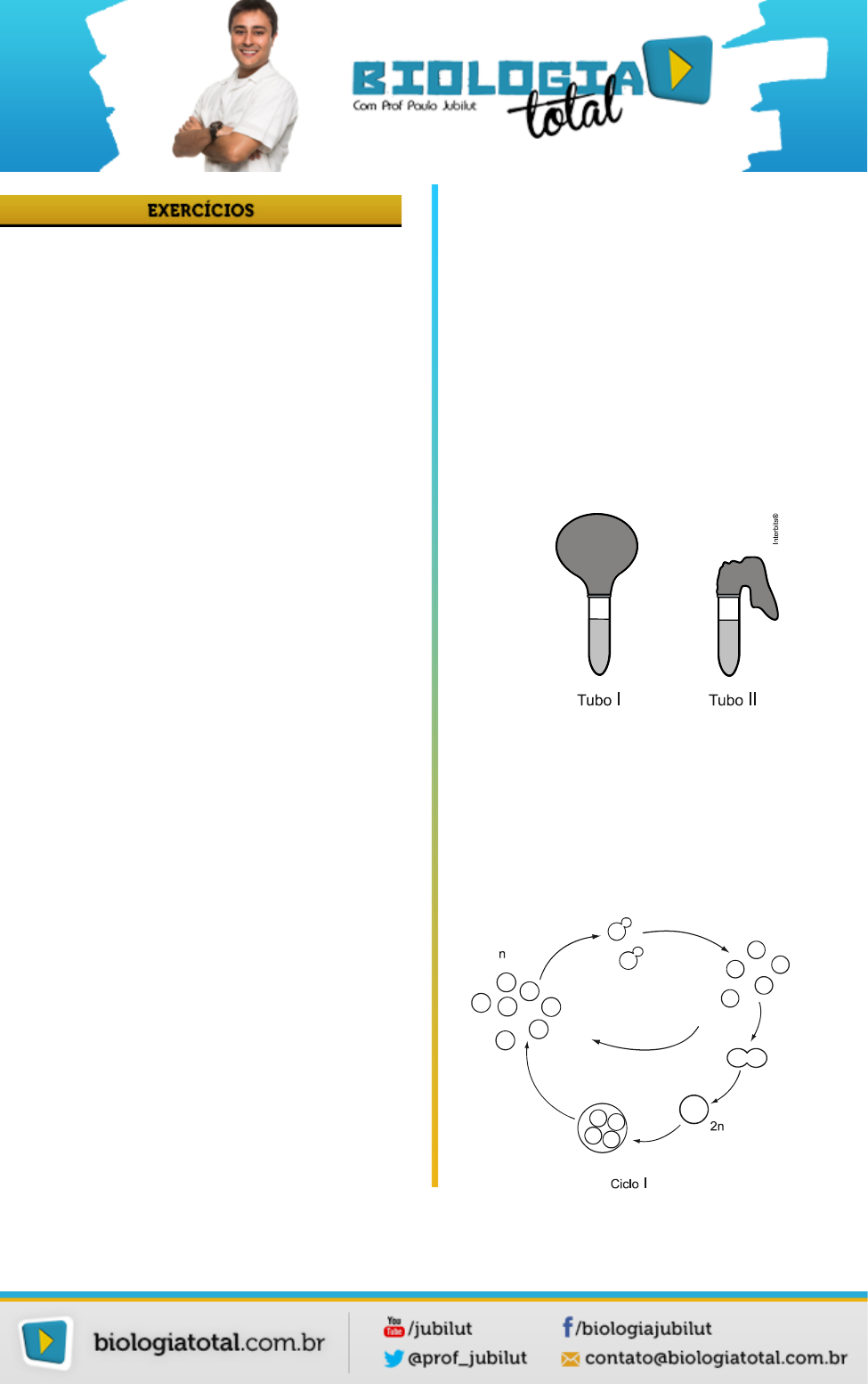 1. (UNICAMP) Os fungos são organismos eucarióticos heterotróficos unicelulares ou multicelulares. Os fungos multicelulares têm os núcleos dispersos em hifas, que podem ser contínuas ou septadas, e que, em conjunto, formam o micélio. a) Mencione uma característica que diferencie a célula de um fungo de uma célula animal, e outra que diferencie a célula de um fungo de uma célula vegetal. _____________________________________________ _____________________________________________ ___________________________________________ b) Em animais, alguns fungos podem provocar intoxicação e doenças como micoses; em plantas, podem causar doenças que prejudicam a lavoura, como a ferrugem do cafeeiro, a necrose do amendoim e a vassoura de bruxa do cacau. Entretanto, os fungos também podem ser benéficos. Cite dois benefícios proporcionados pelos fungos. _____________________________________________ _____________________________________________ ___________________________________________ 2. (UFJR) Os líquenes podem ser usados como bioindicadores de poluição atmosférica por sua capacidade de incorporar muitos dos poluentes dispersos no ar. Sobre esses organismos, responda: a) Quais são os organismos que compõem os líquenes? _____________________________________________ _____________________________________________ ___________________________________________ b) Qual é a relação ecológica estabelecida entre os organismos que formam os líquenes e qual a vantagem ecológica obtida nesta associação? _____________________________________________ _____________________________________________ ___________________________________________ c) Explique qual a contribuição de cada um dos organismos nessa relação. _____________________________________________ _____________________________________________ ___________________________________________ 3. (UFMG) As leveduras são fungos unicelulares que participam de processos biológicos importantes. Evidências da ação desses micro-organismos podem ser identificadas no experimento a seguir descrito. Em dois tubos de ensaio, foram colocados 2 mL de uma solução que contém fermento biológico – leveduras vivas – e 4 mL de suco de uva. Na extremidade aberta de todos os tubos colocou-se um balão de borracha. Isso feito, cada tubo foi submetido a uma destas condições: – 60 min. na geladeira, a 10°C; – 60 min. em estufa, a 30°C. Os resultados estão mostrados nestas figuras a) Com base nos resultados desse experimento e em outros conhecimentos sobre o assunto, indique o tubo – I ou II – que foi colocado na estufa e explique o resultado obtido, considerando o processo metabólico envolvido. _____________________________________________ _____________________________________________ _____________________________________________ _____________________________________________ b) Analise estas figuras em que estão representados os ciclos reprodutivos de duas espécies de leveduras: _____________________________________________ _____________________________________________ _____________________________________________ _____________________________________________ _____________________________________________ _____________________________________________ c) Com base nas informações dessas figuras e em outros conhecimentos sobre o assunto, faça o que se pede: – Cite os tipos de divisão celular envolvidos no ciclo de vida de cada uma das espécies de leveduras representadas. _____________________________________________ _____________________________________________ ___________________________________________ _____________________________________________ _____________________________________________ ___________________________________________ – Leveduras com ciclo de vida semelhante à representada em II são, preferentemente, utilizadas na indústria alimentícia ou química. Explique o porquê dessa preferência. _____________________________________________ _____________________________________________ ___________________________________________ 4. (UFTM) O vinho é produzido por ação de fungos conhecidos como leveduras que são, na maioria, anaeróbias facultativas. Eles conseguem digerir a sacarose presente na uva e alguns produtos resultantes estão presentes na bebida. Responda: a) Em que condição, aeróbia ou anaeróbia, ocorre a produção de vinho? Justifique sua resposta. _____________________________________________ _____________________________________________ ___________________________________________ b) Explique como esses micro-organismos conseguem aproveitar a sacarose presente nas uvas. _____________________________________________ _____________________________________________ ___________________________________________ 5. (UFBA) Líquens ocorrem nos mais variados tipos de substratos, climas, altitudes e latitudes do planeta, conseguindo sobreviver em condições de vida muito diversas. São formados por organismos de diferentes Reinos e, por isso, sua estrutura e atribuições também se alteram, conforme os elementos que os compõem e o ambiente em que se desenvolvem. Considerando a classificação de Whittaker (1969), identifique os Reinos que abrigam espécies integrantes de líquens e caracterize a associação, considerando o papel de cada um dos simbiontes. _____________________________________________ _____________________________________________ ___________________________________________ 6. (UDESC) As micorrizas são associações ecológicas entre espécies de fungos e raízes de certas plantas. Os filamentos do fungo se enrolam e penetram nas raízes onde se nutrem de substâncias produzidas pelo vegetal. Em contrapartida, o fungo facilita a absorção de minerais do solo pela planta. Em relação ao contexto, responda: a) Qual o tipo de associação ecológica entre os fungos e as plantas? _____________________________________________ _____________________________________________ ____________