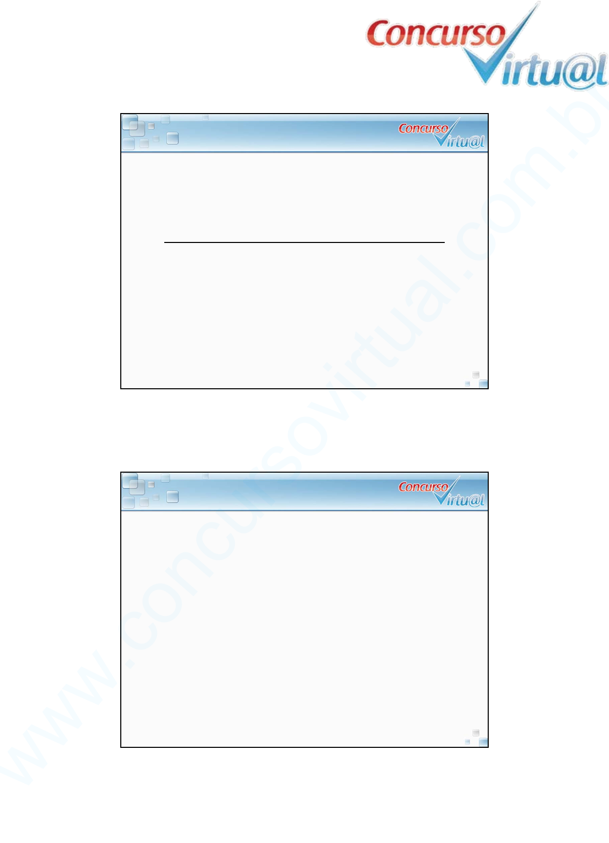19/09/2014 1 Raciocínio Lógico Curso de Questões FCC Sentenças Abertas. Quantificadores. Diagramas Prof. Ronilton Loyola 01. (FCC/TRT-PR) A correta negação da proposição ”Todos os cargos deste concurso são de Analista Judiciário” é: (A) Alguns cargos deste concurso são de Analista Judiciário. (B) Existem cargos deste concurso que não são de Analista Judiciário. (C) Existem cargos deste concurso que são de Analista Judiciário. (D) Nenhum dos cargos deste concurso não é de Analista Judiciário. (E) Os cargos deste concurso são ou de Analista, ou no Judiciário. www.concursovirtual.com.br ww w. co nc ur so vir tua l.c om .br 19/09/2014 2 02. (FCC/TCI-RJ) Dada a proposição: ”É falso que existem pelicanos que não comem peixe”, uma forma equivalente é: (A) Não existem pelicanos que comem peixe. (B) Todos os pelicanos comem peixe. (C) Existem pelicanos que não comem peixe. (D) Algum pelicano não come peixe. (E) Todos os pelicanos não comem peixe. 03. (FCC/TCI-RJ) Dada a proposição ”É falso que existem pelicanos que não comem peixe”, a negação é: (A) Não existem pelicanos que comem peixe. (B) Todos os pelicanos comem peixe. (C) Existem pelicanos que não comem peixe. (D) Algum pelicano não come peixe. (E) Todos os pelicanos não comem peixe. www.concursovirtual.com.br ww w. co nc ur so vir tua l.c om .br 19/09/2014 3 04. (FCC/TCI-RJ) Considere que S seja a sentença: ”Todo político é filiado a algum partido”. A sentença equivalente à negação da sentença S acima é: (A) Nenhum político é filiado a algum partido. (B) Nenhum político não é filiado a qualquer partido. (C) Pelo menos um político é filiado a algum partido. (D) Pelo menos um político não é filiado a qualquer partido. 05. (FCC/SEFAZ-SP) Todos os diplomatas são gordos. Nenhum gordo sabe nadar. Segue-se que: (A) algum diplomata não é gordo; (B) algum diplomata sabe nadar; (C) nenhum diplomata sabe nadar; (D) nenhum diplomata é gordo; (E) algum gordo sabe nadar. www.concursovirtual.com.br ww w. co nc ur so vir tua l.c om .br 19/09/2014 4 06. (FCC/SEFAZ-SP) Todos os marinheiros são republicanos. Assim sendo: (A) o conjunto dos marinheiros contém o conjunto dos republicanos; (B) o conjunto dos republicanos contém o conjunto dos marinheiros; (C) todos os republicanos são marinheiros; (D) algum marinheiro não é republicano; (E) nenhum marinheiro é republicano. 07. (FCC/TRT-PR) Sabe-se que existem pessoas desonestas e que existem corruptos. Admitindo-se verdadeira a frase ”Todos os corruptos são desonestos”, é correto concluir que: (A) quem não é corrupto é honesto; (B) existem corruptos honestos; (C) alguns honestos podem ser corruptos; (D) existem mais corruptos do que desonestos; (E) existem desonestos que são corruptos. www.concursovirtual.com.br ww w. co nc ur so vir tua l.c om .br 19/09/2014 5 08. (FCC/TRT-AP-PA) Em certo planeta, todos os Aleves são Bleves, todos os Cleves são Bleves, todos os Dleves são Aleves, e todos os Cleves são Dleves. Sobre os habitantes desse planeta, é correto afirmar que: (A) Todos os Dleves são Bleves e são Cleves. (B) Todos os Bleves são Cleves e são Dleves. (C) Todos os Aleves são Cleves e são Dleves. (D) Todos os Cleves são Aleves e são Bleves. (E) Todos os Aleves são Dleves e alguns Aleves podem não ser Cleves. 09. (FCC/MPU) Considere que as seguintes afirmações são verdadeiras: ● Todo motorista que não obedece às leis de trânsito é multado. ● Existem pessoas idôneas que são multadas. Com base nessas afirmações é verdade que: (A) se um motorista é idôneo e não obedece às leis de trânsito, então ele é multado; (B) se um motorista não respeita as leis de trânsito, então ele é idôneo; (C) todo motorista é uma pessoa idônea; (D) toda pessoa idônea obedece às leis de trânsito; (E) toda pessoa idônea não é multada. www.concursovirtual.com.br ww w. co nc ur so vir tua l.c om .br 19/09/2014 6 10. (FCC/TRT-PE) As afirmações seguintes são resultados de uma pesquisa feita entre os funcionários de certa empresa. ●Todo indivíduo que fuma tem bronquite. ●Todo indivíduo que tem bronquite costuma faltar ao trabalho. Relativamente a esses resultados, é correto concluir que: (A) existem funcionários fumantes que não faltam ao trabalho; (B) todo funcionário que tem bronquite é fumante; (C) todo funcionário fumante costuma faltar ao trabalho; (D) é possível que exista algum funcionário que tenha bronquite e não falte habitualmente ao trabalho; (E) é possível que exista algum funcionário que seja fumante e não tenha bronquite 11. (FCC/TRF-1ªREGIÃO) Algum X é Y. Todo X é Z. Logo: (A) algum Z é Y; (B) algum X é Z; (C) todo Z é X; (D) todo Z é Y; (E) algum X é Y. www.concursovirtual.com.br ww w. co nc ur so vir tua l.c om .br 19/09/2014 7 12. (FCC/TRE-PI) Todos os advogados que trabalham numa cidade formaram-se na universidade X. Sabe-se ainda que alguns funcionários da prefeitura dessa cidade são advogados. A partir dessas informações, é correto concluir que, necessariamente: (A) existem funcionários da prefeitura dessa cidade formados na universidade X; (B) todos os funcionários da prefeitura dessa cidade formados na universidade X são advogados; (C) todos os advogados formados na universidade X trabalham nessa cidade; (D) dentre todos os habitantes dessa cidade, somente os advogados formaram-se na universidade X; (E) existem funcionários da prefeitura dessa cidade que não se formaram na universidade X. 13. (FCC/TCE-GO) São dadas as afirmações: ● Toda cobra é um réptil. ● Existem répteis venenosos. Se as duas afirmações são verdadeiras, então, com certeza, também é verdade que: (A) se existe uma cobra venenosa, então ela é um réptil; (B) toda cobra é venenosa; (C) algum réptil venenoso é uma cobra; (D) qualquer réptil é uma cobra; (E) se existe um réptil venenoso, então ele é uma cobra. www.concursovirtual.com.br ww w