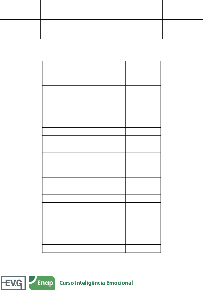 ESCALA DE AFETOS POSITIVOS E AFETOS NEGATIVOS (PANAS) Esta escala consiste em um número de palavras que descrevem diferentes sentimentos e emoções. Leia cada item e depois marque a resposta adequada no espaço ao lado da palavra. Indique até que ponto você tem se sentido desta forma ultimamente. 1 2 3 4 5 Nem um pouco Um pouco Moderadamente Bastante Extremamente Sentimento/emoção Escolha 1. Aflito 2. Amável 3. Amedrontado 4. Angustiado 5. Animado 6. Apaixonado 7. Determinado 8. Dinâmico 9. Entusiasmado 10. Forte 11. Humilhado 12. Incomodado 13. Inquieto 14. Inspirado 15. Irritado 16. Nervoso 17. Orgulhoso 18. Perturbado 19. Rancoroso 20. Vigoroso Fonte: Zanon e Hutz (2014) Após o preenchimento, some a pontuação para cada conjunto de itens. • Para afetos positivos, some os pontos relativos aos itens 2, 5, 6, 7, 8, 9, 10, 14, 17 e 20. Total para afetos positivos: _______ pontos • Para afetos negativos, some os pontos relativos aos itens 1, 3, 4, 11, 12, 13, 15, 16, 18 e 19. Total para afetos negativos: _______ pontos Avalie incialmente se você tem mais afetos positivos que negativos. Lembre-se dos benefícios dos afetos positivos, inclusive para compensar os afetos negativos. Apenas como referência, a média de afetos positivos, para homens e mulheres, é de 34 pontos; a média de afetos negativos é de 20,5 para homens, e 22,1 para mulheres. Identifique dois afetos positivos que você pode estimular para que estejam mais presentes na sua vida. O que você pode fazer para aumentar a frequência desses afetos na sua vida? Identifique três ações possíveis: atividades que te trazem satisfação, pessoas, mudanças necessárias: 1. _______________________________________________________________________ 2. _______________________________________________________________________ 3. _______________________________________________________________________ Agora identifique dois afetos negativos cuja frequência você pode reduzir na sua vida. O que você pode fazer ou deixar de fazer para evitá-los? Identifique três iniciativas nesse sentido: 1. _______________________________________________________________________ 2. _______________________________________________________________________ 3. _______________________________________________________________________ Referência: ZANON, C., e HUTZ, C. S. Escala de Afetos Positivos e Negativos (PANAS). In C. S. HUTZ (Org.) Avaliação em Psicologia Positiva (pp.63-67). Porto Alegre: Artmed, 2014.