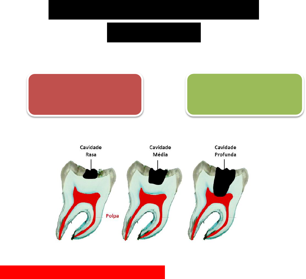  Deve ser observado o grau de comprometimento pulpar e a profundidade da lesão.