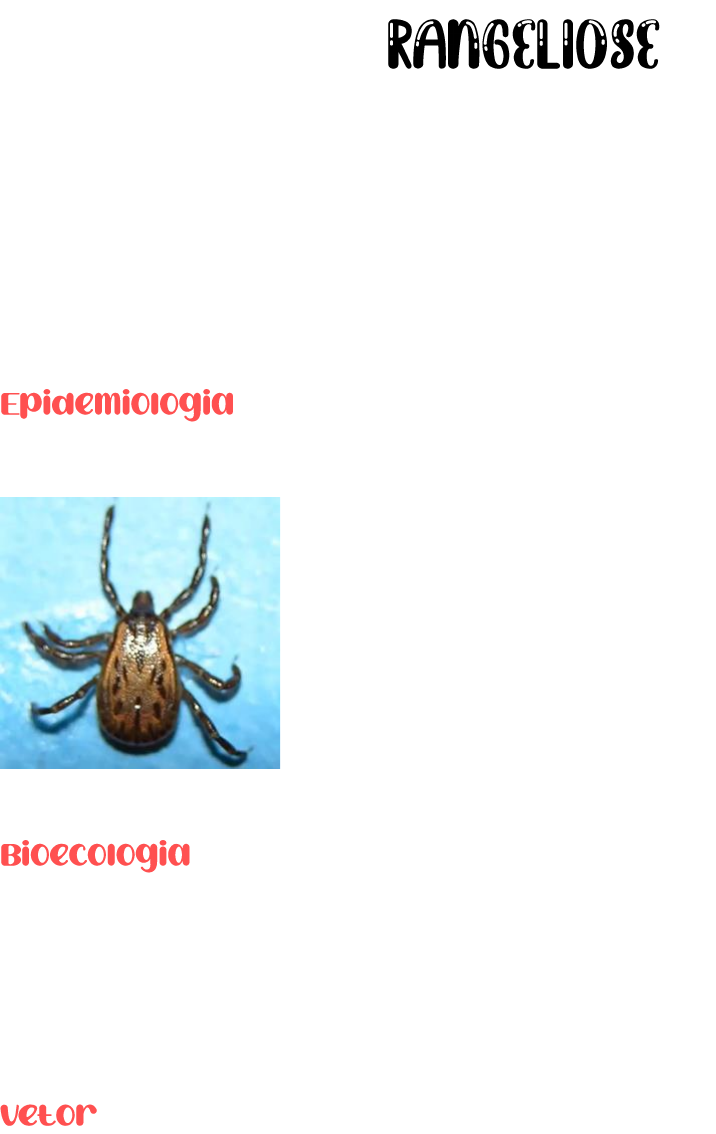 @veterinariando_ • 18S rRNA – similaridade com B. canis e B. gibsoni de 92% e 94% respectivamente • Hsp70 – similaridade é de 82% para B. canis e de 86% para B. gibsoni Vetor – Amblyomma aureolatum ➢ carrapato encontrado em regiões com altitudes especificas ➢ E em áreas de umidade, com fragmentos de mata Atlântica • Além de transmitir a Rangeliose, pode transmitir também a Rickettsia (febre maculosa) • Encontrados em locais com umidade e calor • Formas imaturas parasitam: aves e pequenos roedores • Formas adultas parasitam: cães e canídeos silvestres • Ocasiona lesões no endotélio vascular • Diminuição no número de plaquetas (plaquetopenia) • Causando distúrbios na homeostasia (sangramento e petéquias) • Processo inflamatório • Hepcidina (proteína associada a entrada de ferro na circulação) • A queda do ferro promove quadros de anemia • Ocorre: hemoglobinemia, hemoglobinúria, sobrecarga hepática – levando a icterícia • Há liberação de pirógenos – febre • Anemia – anóxia anêmica (redução da oxigenação) • Pode lavar a acidose metabólica, hipovolemia, redução da oxigenação tecidual e síndrome de disfunção múltipla de órgãos • Apatia e anorexia • Desidratação v Imaturos Adultos • Febre • Palidez das mucosas • Sangramentos • Petéquias • Esplenomegalia • Linfadenomegalia • Icterícia • Diarreia • Taxa de letalidade de 33% ➢ Transmissão transovariana ➢ Perpetuação transestadial • Prevenir o contato e “controlar” os carrapatos • Tratamento (o mesmo utilizado para Babesia) • Cuidado ao visitar áreas de risco • Atenção com animais jovens