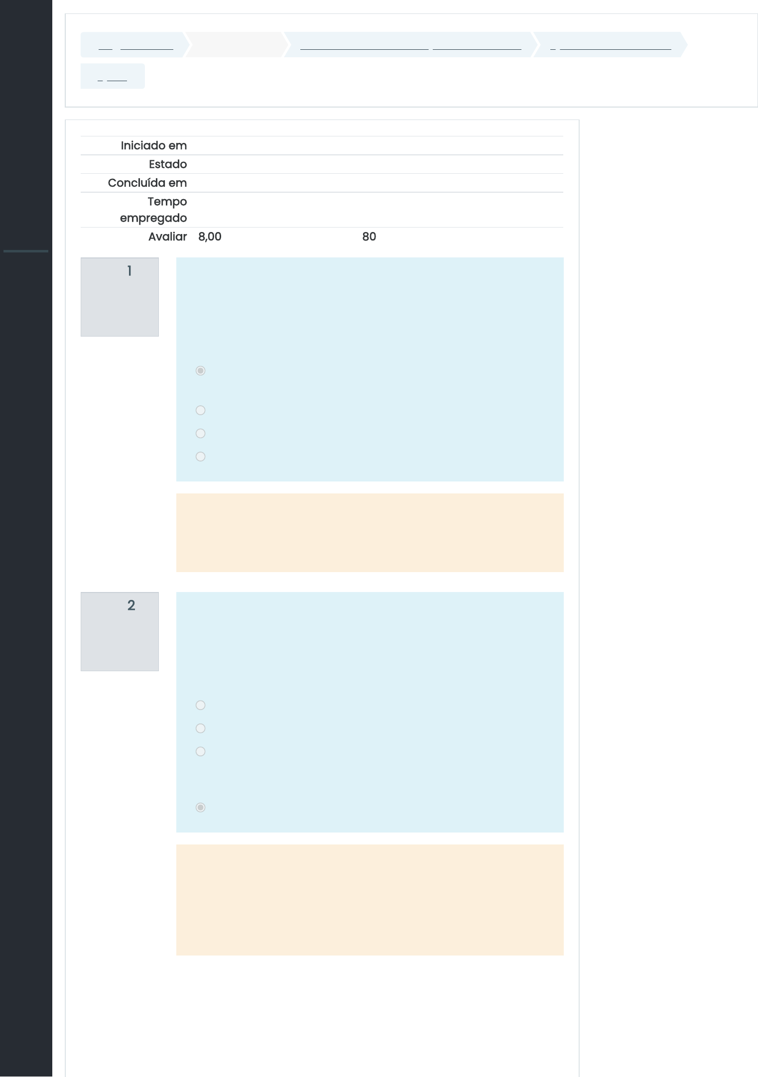 Página inicial Meus cursos Conceitos Básicos de Química - 2020/2 Química tem história! Quiz I Questão 1 Correto Atingiu 1,00 de 1,00 Questão 2 Incorreto Atingiu 0,00 de 1,00 Iniciado em domingo, 20 Set 2020, 23:12 Estado Finalizada Concluída em domingo, 20 Set 2020, 23:23 Tempo empregado 10 minutos 51 segundos Avaliar 8,00 de um máximo de 10,00(80%) Segundo o Ebook, a história total da humanidade pode ser compreendida levando-se em consideração: Escolha uma: As três grandes revoluções: cognitiva, agrícola e científica. A alquimia. O surgimento da química moderna. O trabalho desempenhado por Lavoisier. Sua resposta está correta. A resposta correta é: As três grandes revoluções: cognitiva, agrícola e científica.. Segundo o material estudado, após a Revolução Científica ocorreu: Escolha uma: A domesticação de plantas e animais. O ser humano adquiriu consciência de sua existência. Uma mudança na forma de interpretarmos a realidade com o concomitante abandono das tradições antigas, as quais estavam sustentadas na ciência grega. O surgimento da alquimia. Sua resposta está incorreta. A resposta correta é: Uma mudança na forma de interpretarmos a realidade com o concomitante abandono das tradições antigas, as quais estavam sustentadas na ciência grega.. https://cursoslivres.ifms.edu.br/ https://cursoslivres.ifms.edu.br/course/view.php?id=12 https://cursoslivres.ifms.edu.br/course/view.php?id=12§ion=5 https://cursoslivres.ifms.edu.br/mod/quiz/view.php?id=798 javascript:void(0); https://cursoslivres.ifms.edu.br/user/index.php?id=12 https://cursoslivres.ifms.edu.br/badges/view.php?type=2&id=12 https://cursoslivres.ifms.edu.br/admin/tool/lp/coursecompetencies.php?courseid=12 https://cursoslivres.ifms.edu.br/grade/report/index.php?id=12 https://cursoslivres.ifms.edu.br/course/view.php?id=12&stopjsnav=1 https://cursoslivres.ifms.edu.br/course/view.php?id=12&datapref=1 https://cursoslivres.ifms.edu.br/ https://cursoslivres.ifms.edu.br/my/ https://cursoslivres.ifms.edu.br/calendar/view.php?view=month&course=12 javascript:void(0); https://cursoslivres.ifms.edu.br/user/files.php Questão 3 Correto Atingiu 1,00 de 1,00 Questão 4 Correto Atingiu 1,00 de 1,00 Questão 5 Correto Atingiu 1,00 de 1,00 Segundo o Ebook, aprender história é: Escolha uma: Importante porque ela descreve a história da química. Menos importante hoje do que antigamente. Irrelevante para a resolução dos problemas atuais. Importante porque nos livra da alienação. Sua resposta está correta. A resposta correta é: Importante porque nos livra da alienação.. A alquimia foi: Escolha uma: Inútil para a história da química. A precursora da química moderna. Um período onde não ocorreram descobertas ou desenvolvimento que pudesse ser utilizado na química de hoje. Praticada exclusivamente no oriente médio. Sua resposta está correta. A resposta correta é: A precursora da química moderna.. O conceito atual sobre o átomo (orbitais atômicos, camada de valência e distribuição eletrônica) oriundo da física quântica foi introduzido na química pelo cientista: Escolha uma: Linus Pauling. Gilbert Lewis. Dmitri Ivanovich Mendeleev. Isaac Newton. Sua resposta está correta. A resposta correta é: Linus Pauling.. javascript:void(0); https://cursoslivres.ifms.edu.br/user/index.php?id=12 https://cursoslivres.ifms.edu.br/badges/view.php?type=2&id=12 https://cursoslivres.ifms.edu.br/admin/tool/lp/coursecompetencies.php?courseid=12 https://cursoslivres.ifms.edu.br/grade/report/index.php?id=12 https://cursoslivres.ifms.edu.br/course/view.php?id=12&stopjsnav=1 https://cursoslivres.ifms.edu.br/course/view.php?id=12&datapref=1 https://cursoslivres.ifms.edu.br/ https://cursoslivres.ifms.edu.br/my/ https://cursoslivres.ifms.edu.br/calendar/view.php?view=month&course=12 javascript:void(0); https://cursoslivres.ifms.edu.br/user/files.php Questão 6 Correto Atingiu 1,00 de 1,00 Questão 7 Correto Atingiu 1,00 de 1,00 Sobre o químico alemão Heinrich Rheinboldt é correto afirmar que: Escolha uma: Foi um químico de destaque o qual realizou importantes contribuições no campo da mineralogia. Geralmente ele é mais conhecido pelo seu papel na política. Já tinha construído uma carreira de sucesso na Alemanha. Instala-se na então formada Universidade de São Paulo e inicia um modelo de escola voltado para a pesquisa científica. Criou a Sociedade Brasileira de Química (SBQ) em 1977. Propôs uma teoria de ligação química embasada nos elétrons. Sua resposta está correta. A resposta correta é: Já tinha construído uma carreira de sucesso na Alemanha. Instala-se na então formada Universidade de São Paulo e inicia um modelo de escola voltado para a pesquisa científica.. Segundo o Ebook, a primeira teoria universalmente aceita para explicar a transformação química da matéria foi: Escolha uma: O princípio da conservação de massas. A teoria de ligação de Gilbert Lewis. A teoria das proporções definidas de Joseph Louis Proust. A teoria do flogisto de Georg Ernst Stahl. Sua resposta está correta. A resposta correta é: A teoria do flogisto de Georg Ernst Stahl.. javascript:void(0); https://cursoslivres.ifms.edu.br/user/index.php?id=12 https://cursoslivres.ifms.edu.br/badges/view.php?type=2&id=12 https://cursoslivres.ifms.edu.br/admin/tool/lp/coursecompetencies.php?courseid=12 https://cursoslivres.ifms.edu.br/grade/report/index.php?id=12 https://cursoslivres.ifms.edu.br/course/view.php?id=12&stopjsnav=1 https://cursoslivres.ifms.edu.br/course/view.php?id=12&datapref=1 https://cursoslivres.ifms.edu.br/ https://cursoslivres.ifms.edu.br/my/ https://cursoslivres.ifms.edu.br/calendar/view.php?view=month&course=12 javascript:void(0); https://cursoslivres.ifms.edu.br/user/files.php Questão 8 Incorreto Atingiu 0,00 de 1,00 Questão 9 Correto Atingiu 1,00 de 1,00 Sobre a história da química assinale a alternativa correta. Escolha uma: A alquimia foi praticada pelos primeiros Sapiens. Posteri