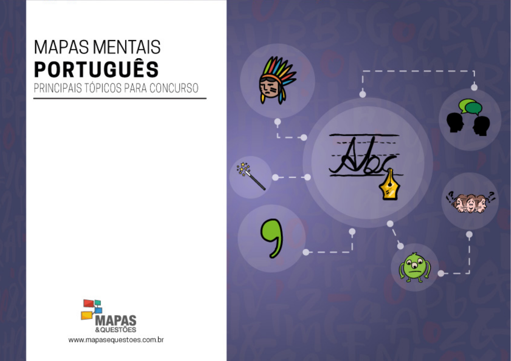 por Terezinha Rêgo Preparado exclusivamente para Fernanda De Rolim - souzzanannda@gmail.com Pedido: 4975 PRINCIPAIS TÓPICOS PARA CONCURSO PORTUGUÊS MAPAS MENTAIS www.mapasequestoes.com.br por Terezinha Rêgo Lançamento: 08/03/2008 Atualização : 02/01/2020 66 mapas mentais PRODUZIDO POR MAPAS&QUESTÕES NÚHMERO DE ORDEM DO EBOOK: P01 - A1 REVISÃO DO ARQUIVO: R13 Preparado exclusivamente para Fernanda De Rolim - souzzanannda@gmail.com Pedido: 4975 mapasequestoes.com.br I APRESENTAÇÃO O material apresentado tem como objetivo facilitar a memo- rização dos assuntos para concursos usando a técnica de estudos com mapas mentais, ideal para aqueles que se identificam com uma memória visual. Os mapas mentais usam cores e imagens como chaves de memorização além da palavra em si. No blog (www.blog.mapasequestoes.com.br) temos algumas dicas de como aproveitar melhor esse material. Segue abaixo alguns links: Como usar mapas mentais Dica para memorização dos mapas mentais Além das imagens, os mapas mentais também usam mne- mônicos para facilitar a memorização. Alguns comuns nos ebooks de Direito são PR quando a informação trata sobre o Presidente da República, MEDU quando a informação estiver relacionada conjunta- mente a Municípios, Estados, DF e União. Quando siglas mnemôni Todos os Direitos Reservado - Copyright Proibida a cópia e-ou a reprodução deste ebook, sem a prévia autorização do autor, por quaisquer meios ou processos existentes ou que venham a ser inventados, especialmente por programas de computador, sistema gráfico, micro filmagens, fotográficos, videográficos; bem como a inclusão de qualquer parte desta obra em qualquer sistema de processamento de dados. Estas proibições aplicam-se também às características da obra e à sua editoração. A violação dos direitos autorais é punível como crime, com pena de prisão e multa, além da possibilidade de busca e apreensão dos exemplares reproduzidos e apetrechos utilizados na reprodução, e, das indenizações civis (Lei dos Direitos Autorais). cas ou quaisquer outras siglas forem usadas em algum mapa, uma legenda no rodapé da página explicará seu significado. Caso esse material lhe inspirar a fazer seus próprios mapas, no site também temos uma categoria Como fazer com algumas dicas. Críticas e sugestões para melhorar o material são sempre mui- to bem vindas. Para entrar em contato conosco, use um dos canais abaixo: Email: contato@mapasequestoes.com.br Telefone: (82) 99688-3211 (Whatsapp) Gtalk e msn: mapasequestoes@gmail.com Facebook: www.facebook.com/mapasequestoes Instagram: @mapasequestoes Twitter: @mapasequestoes Abraços, Equipe Mapas&Questões Portuguêsl PORTUGUÊS - PRINCIPAIS TÓPICOS PARA CONCURSOS Preparado exclusivamente para Fernanda De Rolim - souzzanannda@gmail.com Pedido: 4975 mapasequestoes.com.br II Conteúdo 1. Ortografia [1] - S/Z/Ç ................................................................................................................................................................................................................ 1 2. Ortografia [2] - G/J e X/CH ....................................................................................................................................................................................................... 2 3. Emprego de palavras [1] ............................................................................................................................................................................................................. 3 4. Emprego de palavras [2] ............................................................................................................................................................................................................. 4 5. Emprego de palavras: Porquê/Porque/Por que/Por quê ......................................................................................................................................................... 5 6. Acentuação Gráfica [01] – Regras Gerais ................................................................................................................................................................................. 6 7. Acentuação Gráfica [02] – Hiato - Diferenciais....................................................................................................................................................................... 7 8. Crase [1] ........................................................................................................................................................................................................................................ 8 9. Crase [2] – Obrigatória ............................................................................................................................................................................................................... 9 10. Crase - Facultativa ..................................................................................................................................................................................................................... 10 11. Crase – Proibida ........................................................................................................................................................................................................................ 11 12. Hífen – 01 - Usa-se Hífen ......................................................................................................................................................................................................... 12 13. Hífen – 02 - Não se usa Hífen .................................................................................................................................................................................................. 13 14. Hífen – 03 - Não se usa Hífen - Prefixos terminados em vo