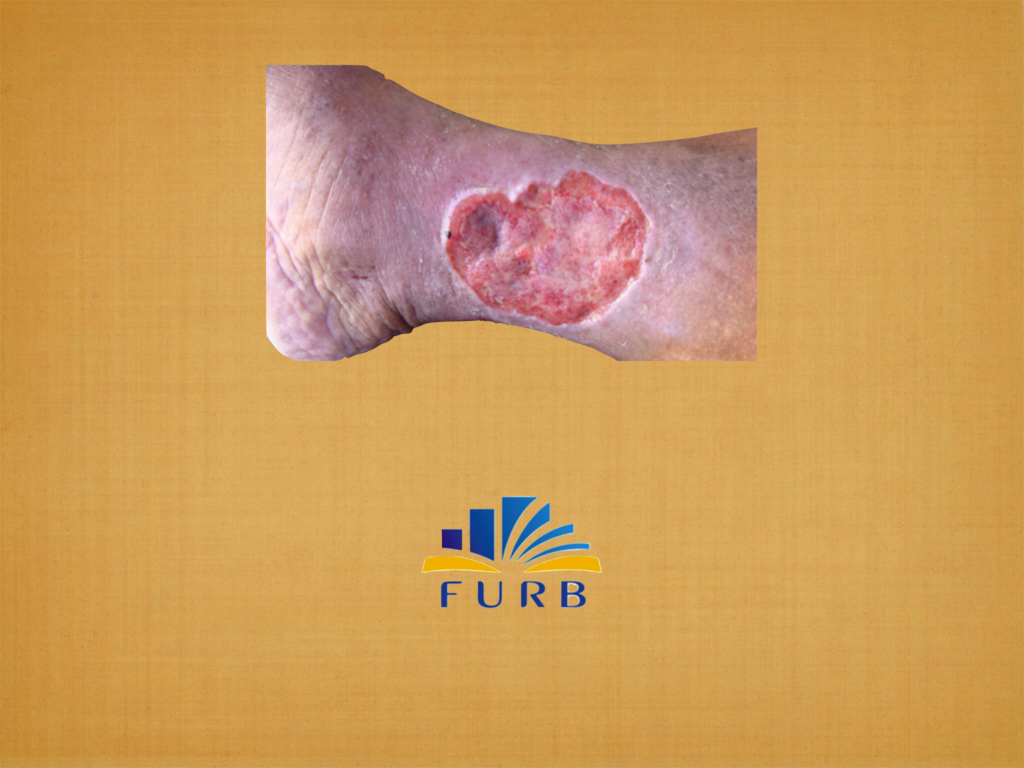ÚLCERAS DE MEMBROS INFERIORES UNIVERSIDADE REGIONAL DE BLUMENAU ÚLCERAS DE MEMBROS INFERIORES UNIVERSIDADE REGIONAL DE BLUMENAU ETIOLOGIA 3-5% da população (>65a) INFECCIOSO - Bacteriana - Micótica - Parasitária ->leishmaniose Hipertensiva (Martorell) has anemia falciforme congênita traumática neoplásica (Marjolin) benigna ou maligna vascular - arterial - venosa - Linfáticas neuropática - diabetes - hanseníase - etilismo outras - artrite reumatóide - vasculites ÚLCERAS DE MEMBROS INFERIORES UNIVERSIDADE REGIONAL DE BLUMENAU etiologia incidência vasculares 70% traumática 10% infecciosa 8% parasitária 6% outras 6% ÚLCERAS DE MEMBROS INFERIORES UNIVERSIDADE REGIONAL DE BLUMENAU Venosa arterial neuropática hipertensiva incidência mulheres homens neuropatia dm mulheres, has diastólica fatores de risco trauma, obesidade, flebites, TVP, IVC, imobilidade prolongada HAS, tabagismo, DM, idosos, dislipidemia, história familiar calosidades, cegueria, DM descompensada, DM longa data, calçados inadequados has grave sintomas dor que alivia com decúbito, prurido dor importante, claudicação indolor, localização 1/3 distal da perna, perimaleolar pré-tibial, calcanhar, extremidades pontos de pressão face lateral da perna lesão bordo irregular, fundo raso e granuloso com fibrina bordo regular, profundo, fundo amarelo ou necrose profundo, calos, mal perfurantes bordo regular, fundo avermelhado/ rosado associações edema, fibrose cutânea, dermatite ocre, hiperpigmentação, linfedema, varizes ausência de pulsos, frialdade, palidez, cianose, perda de fâneros pele quente, seca, parestesias e diminuição sensibilidade pulsos presentes, osteomielite ÚLCERAS DE MEMBROS INFERIORES UNIVERSIDADE REGIONAL DE BLUMENAU Avaliação Paciente História do desenvolvimento da úlcera Comorbidades Estado geral e nutricional Hábitos Obesidade alterações da pele - Venosas (hiperpigmentação, eczema, lipodermatoesclerose, atrofia branca) - Arteriais (rarefação de fâneros, ressecamento de pele, palidez, cianose) - sinais de malignidade avaliação vascular palpação dos pulsos ITB Alterações da perna Edema Circunferência Alterações ortopédicas Sensibilidade e dor Úlcera Localização ASpecto Tamanho Fundo Exsudato Pele circunjacente ÚLCERAS DE MEMBROS INFERIORES UNIVERSIDADE REGIONAL DE BLUMENAU ÚLCERA VENOSA ÚLCERAS DE MEMBROS INFERIORES UNIVERSIDADE REGIONAL DE BLUMENAU ÚLCERA ARTERIAL ÚLCERAS DE MEMBROS INFERIORES UNIVERSIDADE REGIONAL DE BLUMENAU ÚLCERA DIABÉTICA CURATIVOS Universidade Regional de Blumenau A.G.E. - Ácidos Graxos Essenciais (Dersani) Composição - óleos vegetais poliinsaturados, vit. A, vit. E, lecitina de soja e lanolina. Indicação - proteção, hidratação, restauração da pele e área receptora de enxerto Frequencia - cada 24hr CURATIVOS Universidade Regional de Blumenau Alginato de Cálcio e Sódio (Kaltostat) Composição - ácido algínico de algas marinhas e ácido glurônico Indicação - lesões cavitárias, úlceras de pressão, venosas, arteriais, diabética e doadora de pele Contra-Indicação - lesões secas e sensibilidade ao produto Frequencia - em lesões infectadas troca diária e limpas de acordo com a saturação CURATIVOS Universidade Regional de Blumenau Carboximetilcelulose (Aquacel) Composição - fibras agrupadas de carboximetilcelulose sódica Indicação - lesões crônicas e agudas, queimaduras Contra-Indicação - sensibilidade ao produto Frequencia - até 7 dias CURATIVOS Universidade Regional de Blumenau Carvão Ativado (Carboflex) Composição - uma camada impermeável resistente à água, não adesiva, uma absorvente (alginato e hidrocolóide) uma área central com carvão ativado Indicação - lesões infectadas e com exsudato (fétidas) Contra-Indicação - sensibilidade ao produto Frequencia - em até 7 dias CURATIVOS Universidade Regional de Blumenau Carvão Ativado e Prata (Actisorb Plus) Composição - carvão ativado puro impregnado com prata, envolto em um não tecido de nylon poroso, selado nas quatro bordas Indicação - lesões infectadas e com exsudato (fétidas) Contra-Indicação - necrose, úlcera isquêmica Frequencia - em até 7 dias CURATIVOS Universidade Regional de Blumenau Hidrocolóides (DuoDerm) Composição - gelatina, pectina e carboximetilcelulose sódica Indicação - lesões sem infecção, com ou sem exsudato, necrose, prevenção de úlcera Contra-Indicação - infecção e secreção Frequencia - até 3 dias para lesões necrosadas e 7 dias para limpas CURATIVOS Universidade Regional de Blumenau Hidrogel (Saf-gel - Purilon) Composição - gel transparente hidroativo, carboximetilcelulose, alginato e sódio Indicação - para amolecer e hidratar áreas necróticas ou desvitalizadas, facilitando a remoção das mesmas, estimula a cicatrização Contra-Indicação - infecção e secreção Frequencia - até 3 dias para curativos com gazes e até 7 dias para os com placas CURATIVOS Universidade Regional de Blumenau Sulfadiazina de Prata com Nitrato de Cerium Composição - sulfadiazina de prata 1% + nitrato de cério 0,4% Indicação - queimaduras, tecido desvitalizado, necrose Contra-Indicação - sensibilidade aos componentes Frequencia - diária CURATIVOS Universidade Regional de Blumenau Pomada Enzimática - Colagenase (Iruxol-mono) Composição - colagenase, clostridiopeptidase -A e enzimas proteolíticas Indicação - tecidos desvitalizados, necrose e fibrose Contra-Indicação - hipersensibilidade Frequencia - 12 ou 24hr CURATIVOS Universidade Regional de Blumenau Bota de Unna Composição - gaze elástica contendo óxido de zinco, glicerina, gelatina em pó e água Indicação - úlceras venosas e edema linfático Contra-Indicação - úlceras mistas, úlceras arterial e sinais de infecção Frequencia - a cada 7 dias CURATIVOS Universidade Regional de Blumenau Bota de Unna CURATIVOS Universidade Regional de Blumenau Novas tecnologias CURATIVOS Universidade Regional de Blumenau N
