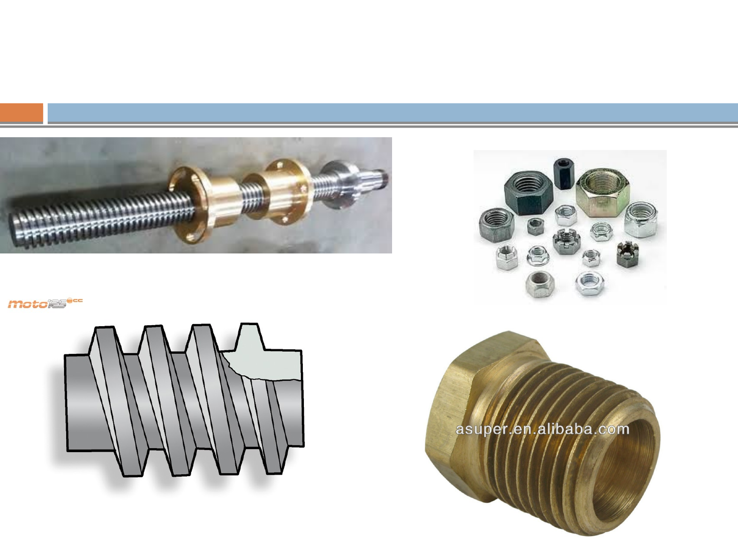 ROSCAS ROSCAS Rosca é uma saliência de (filete) de seção uniforme (triangular, quadrada etc...) que se desenvolve com uma inclinação constante em torno de uma superfície cilíndrica. As roscas podem ser internas ou externas. As roscas internas encontram-se no interior das porcas. As roscas externas se localizam no corpo dos parafusos. ROSCAS As roscas permitem a união e desmontagem de peças. Permitem, também, movimento de peças. O parafuso que movimenta a mandíbula móvel da morsa é um exemplo de movimento de peças. ROSCAS Sentido de direção da rosca Dependendo da inclinação dos filetes em relação ao eixo do parafuso, as roscas ainda podem ser direita e esquerda. Portanto, as roscas podem ter dois sentidos: à direita ou à esquerda. Na rosca direita, o filete sobe da direita para a esquerda, conforme a figura. Na rosca esquerda, o filete sobe da esquerda para a direita, conforme a figura. ROSCAS Passo da rosca: É a distância medida paralelamente ao eixo entre pontos correspondentes de dois perfis adjacentes no mesmo plano e do mesmo lado do eixo. Número de entradas de uma rosca. Uma rosca pode ser de apenas uma entrada ou ser múltipla. Roscas múltiplas são aquelas que possuem mais de uma hélice (rosca) em um mesmo cilindro. O avanço (passo da hélice) da rosca múltipla é o resultado do produto do passo da rosca pelo numero de hélices (entradas) existentes. Onde o passo da rosca é a distância de um filete a outro medido axialmente. Avanço = p x Node entradas Nas roscas simples ou de uma entrada, o avanço é igual ao passo da rosca. Nomenclatura da rosca Independentemente da sua aplicação, as roscas têm os mesmos elementos, variando apenas os formatos e dimensões. Roscas triangulares As roscas triangulares classificam-se, segundo o seu perfil, em três tipos: rosca métrica rosca whitworth rosca americana Roscas Rosca métrica: Tem suas medidas em milímetro. Os filetes tem formato triangular, ângulo de 60, crista achatada e raiz arredondada. Roscas Rosca Whithwort: tem as medidas em polegadas. Apresenta ângulo de 55, crista e raiz arredondada. Roscas Rosca Americana: Tem todas as medidas expressas em polegadas, Angulo de 60, a crista é achatada e raiz arredondada. Representação de partes roscadas Representação de partes roscadas Representação de partes roscadas Roscas Roscas