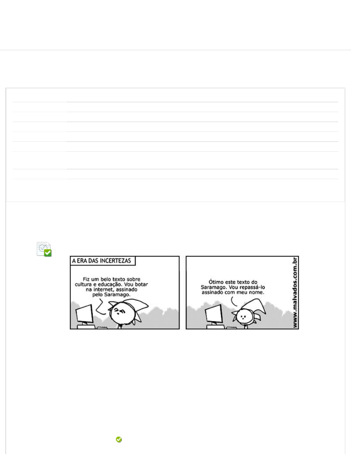 Os quadrinhos a seguir mostram um problema na disseminação de informações via rede.