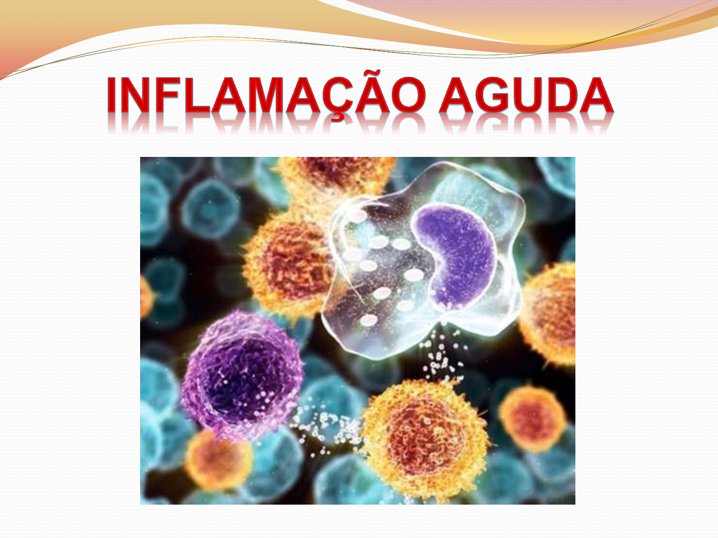 • É uma reação complexa a vários agentes nocivos, como os microorganismos e células danificadas, geralmente necróticas, que consiste de respostas vasculares, migração e ativação de leucócitos e reações sistêmicas. • Destruir, diluir ou bloquear o agente agressor, levando a cicatrização e reconstituição do tecido lesado. • Proteção do organismo • Aumento da perfusão local – aumento do fluxo celular “defensor” • Exsudato: dilui ou inativa o imunógeno prejudicial • Aumento da secreção glandular – limpeza local • Coágulo local evitando disseminação • Cicatrização • Lesão temporária ou permanente dos tecidos acometidos • Alergias • Hipersensibilidade • Doenças autoimunes • Exógenos • Endógenos • Intensidade da agressão • É uma resposta rápida a um agente nocivo encarregada a levar mediadores de defesa do hospedeiro – leucócitos e proteínas plasmáticas – ao local da lesão. 1. Fase irritativa: modificações morfológicas e funcionais dos tecidos agredidos que promovem a liberação de mediadores químicos, estes desencadeantes nas demais fases inflamatórias. 2. Fase vascular: alterações hemodinâmicas da circulação e de permeabilidade vascular no local da agressão. 3. Fase exudativa: característica do processo inflamatório, esse fenômeno compõe-se de exudato celular e plasmático oriundo do aumento da permeabilidade vascular. O exudato é um fluído extravascular que tem uma alta concentração protéica, contém restos celulares e tem uma alta gravidade específica. Sua presença indica um aumento da permeabilidade normal dos pequenos vasos sanguíneos em uma área de injúria e, portanto, uma reação inflamatória. Em contraste o transudato é um fluído com baixo conteúdo proteico (a maior parte do qual é albumina), pouco ou nenhum material celular e baixa gravidade específica. O transudato é, em sua essência, um ultrafiltrado de plasma sanguíneo que ressulta de desbalanço osmótico ou hidrostático ao longo da parede do vaso sem um aumento na permeabilidade vascular. 4. Fase degenerativa-necrótica: composta por células com alterações degenerativas reversíveis ou não (neste caso, originando um material necrótico), derivadas da ação direta do agente agressor ou das modificações funcionais e anatômicas consequêntes das três fases anteriores. 5. Fase produtiva-reparativa: relacionada à característica de hipermetria da inflamação, ou seja, exprime os aumentos da quantidade dos elementos teciduais – principalmente de células – resultado das fases anteriores. Essa hipermetria da reação inflamatória visa destruir o agente agressor e reparar o tecido injuriado. • Fase irritativa: dor • Fase vascular: rubor • Fase exudativa: tumor • Fase degenerativa-necrótica: calor • Fase reparativa: alteração da função • Edema: excesso de fluído no tecido intersticial ou cavidades serosas; ele pode ser ou um exudato ou um transudato. • Pus: um exudato purulento, é um exudato inflamatório rico em leucócitos (principalmente neutrófilos), resto de células mortas e, em muitos casos, micróbios. • As reações vasculares da inflamação aguda consiste em mudanças no fluxo de sangue e na permeabilidade dos vasos. A proliferação de vasos sanguíneos (angiogênese) é proeminente durante o reparo e na inflamação crônica. • Inflamação serosa: apresenta líquido de aspecto aquoso pobre em proteínas, que se forma nas fases iniciais das inflamações. Comum ocorrer em cavidades pré-formadas, como as pleuras laminais que envolvem pulmão e pericárdio. • Inflamação fibrinosa: grande quantidade de fibrinogênio, uma proteína encontrada no sangue, responsável pela formação de fibrina, estrutura que auxilia na cicatrização. • Comum ocorrer em inflamações agudas graves e infecções bacterianas nas mucosas, o exudato fibrinoso acaba se desprendendo após o epitélio se regenerar. • Inflamação purulenta ou supurativa: apresenta um líquido de coloração amarelo-esverdeada constituído por restos de células mortas, chamado de pus, sendo comum ocorrer com bactérias piogênicas, como estafilococos e pneumococos. • Em algumas regiões, essa inflamação recebe nomes especiais: na epiderme é chamada de pústula, na derme é chamada de furúnculo, no tecido celular subcutâneo, antraz. • Inflamação hemorrágica: está ligada a agentes que agridem pequenos vasos e caracteriza-se pelo aparecimento de grande quantidade de hemácias no exudato. • Inflamação crônica é considerada de duração prolongada (semanas ou meses), na qual a inflamação ativa, a destruição tecidual e a tentativa de reparação acontecem ao mesmo tempo. • Pode haver presença de fibroblastos, responsável pela produção de colágeno e pela restauração da lesão. É dada pelo nome do local mais o sufixo – ite, exemplos: • Esofagite: inflamação do esôfago. • Hepatite: inflamação do fígado. • Gastrite: inflamação do estômago. • O processo de reparação pode ser classificado em: regeneração – ocorre a substituição de um tecido lesado por um tecido semelhante; ou cicatrização – processo de substituição de um tecido por um tecido conjuntivo não específico, ou seja, tecido fibroso.