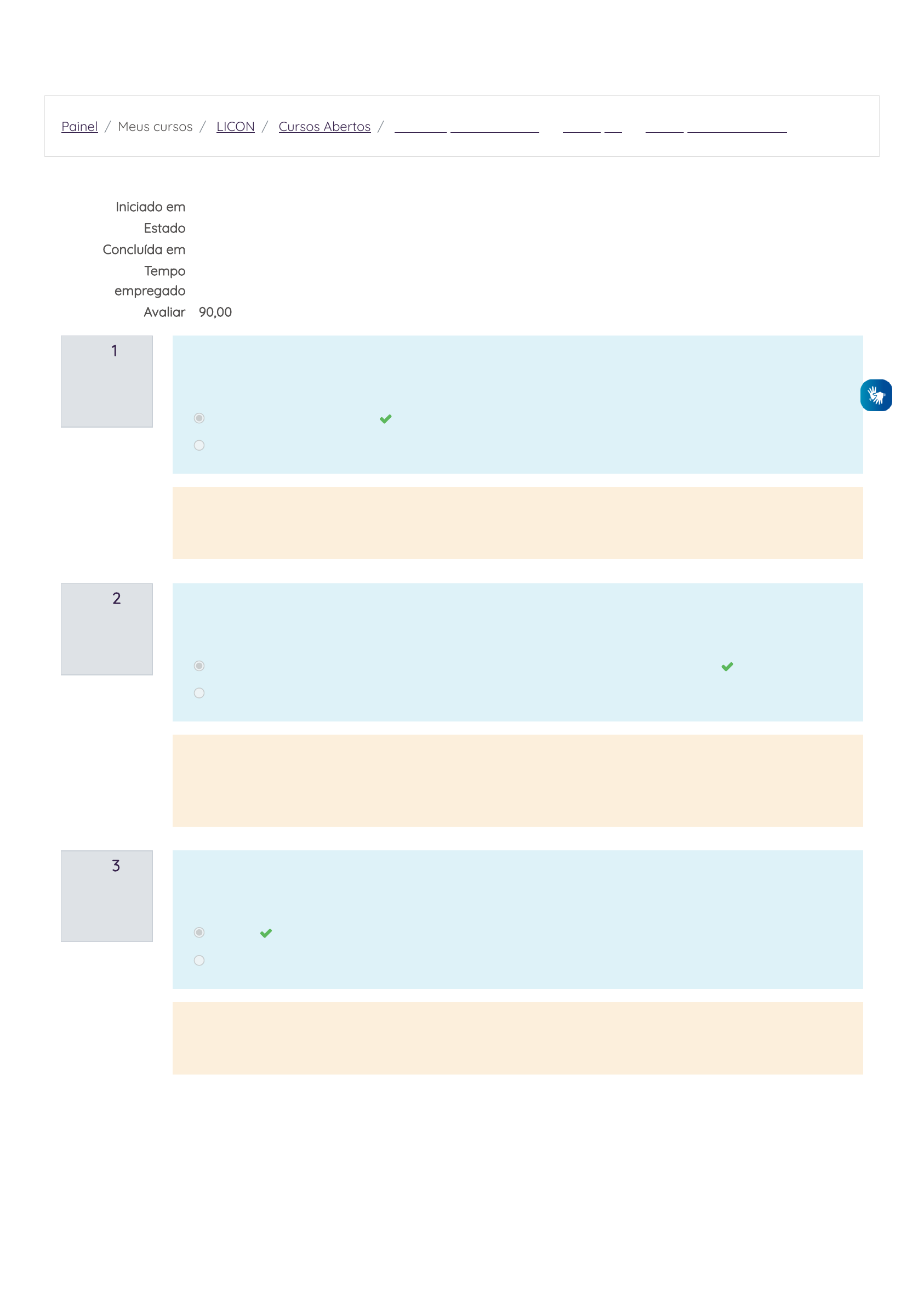 27/02/2021 Avaliação de conteúdo! https://licon.unicentro.br/mod/quiz/review.php?attempt=27695&cmid=1452 1/3 Painel / Meus cursos / LICON / Cursos Abertos / LEGISLAÇÃO DE LIBRAS / Avaliação / Avaliação de conteúdo! Questão 1 Correto Atingiu 10,00 de 10,00 Questão 2 Correto Atingiu 10,00 de 10,00 Questão 3 Correto Atingiu 10,00 de 10,00 Iniciado em sábado, 27 fev 2021, 13:26 Estado Finalizada Concluída em sábado, 27 fev 2021, 13:32 Tempo empregado 5 minutos 12 segundos Avaliar 90,00 de um máximo de 100,00 O que você entende por direitos humanos da educação? Escolha uma opção: a. Direitos da sociedade civil. b. Direitos do governo. Sua resposta está correta. A resposta correta é: Direitos da sociedade civil.. Quais aspectos principais dos direitos humanos na Educação Superior? Escolha uma opção: a. Constituir princípios ético-políticos indissociáveis entre ensino, cultura, respeito e formação. b. Política do governo e de instituições privadas. Sua resposta está correta. A resposta correta é: Constituir princípios ético-políticos indissociáveis entre ensino, cultura, respeito e formação.. Pessoa com De�ciência tem direito à igualdade: Escolha uma opção: a. Sim b. Não Sua resposta está correta. A resposta correta é: Sim. https://licon.unicentro.br/my/ https://licon.unicentro.br/course/index.php?categoryid=7 https://licon.unicentro.br/course/index.php?categoryid=10 https://licon.unicentro.br/course/view.php?id=33 https://licon.unicentro.br/course/view.php?id=33#section-7 https://licon.unicentro.br/mod/quiz/view.php?id=1452 27/02/2021 Avaliação de conteúdo! https://licon.unicentro.br/mod/quiz/review.php?attempt=27695&cmid=1452 2/3 Questão 4 Correto Atingiu 10,00 de 10,00 Questão 5 Correto Atingiu 10,00 de 10,00 Questão 6 Incorreto Atingiu 0,00 de 10,00 Questão 7 Correto Atingiu 10,00 de 10,00 Questão 8 Correto Atingiu 10,00 de 10,00 A Constituição Federal contribui para assegurar o direito à educação. Escolha uma opção: a. Sim. b. Não. Sua resposta está correta. A resposta correta é: Sim.. Há garantias constitucionais à educação especial: Escolha uma opção: a. Falso. b. Verdadeiro. Sua resposta está correta. A resposta correta é: Verdadeiro.. A garantia constitucional à educação bilíngue é: Escolha uma opção: a. Escola regular. b. Escola de surdos. Sua resposta está incorreta. A resposta correta é: Escola de surdos.. Por que os surdos querem escola Bilíngue para Surdos? Escolha uma opção: a. Garantir o aprendizado na Língua Brasileira de Sinais. b. Porque as leis obrigam. Sua resposta está correta. A resposta correta é: Garantir o aprendizado na Língua Brasileira de Sinais.. As leis mais importantes para a educação dos surdos são: Escolha uma opção: a. 10.098/00, 10.639/03 e 5.636/05. b. 10.436/02, 13.005/14 e 5.626/05. Sua resposta está correta. A resposta correta é: 10.436/02, 13.005/14 e 5.626/05.. 27/02/2021 Avaliação de conteúdo! https://licon.unicentro.br/mod/quiz/review.php?attempt=27695&cmid=1452 3/3 Copyright © 2019 - Developed by NEAD UNICENTRO.Powered by Moodle Questão 9 Correto Atingiu 10,00 de 10,00 Questão 10 Correto Atingiu 10,00 de 10,00 Se o aluno surdo frequenta a escola regular, de que ele precisa? Escolha uma opção: a. Intérprete de Libras. b. Leitura labial. Sua resposta está correta. A resposta correta é: Intérprete de Libras.. Educação para surdos faz parte da política pública para a educação? Escolha uma opção: a. Não. b. Sim. Sua resposta está correta. A resposta correta é: Sim.. ◄ MIDIATECA Seguir para... O QUE VOCÊ ACHOU DESSE CURSO? NOS AVALIE! ► Contato Rua Padre Salvador, 875 - Santa Cruz - Cx. Postal 3010 - Guarapuava - PR Telefones: (42) 3621-1095 | 3621-1348 E-mail: licon@unicentro.br Validação de Declarações Verificar declaração emitida. FAQ Perguntas Frequentes Siga-nos Facebook Youtube Site do Nead Instagram http://ead.unicentro.br/ https://moodle.org/ https://licon.unicentro.br/mod/folder/view.php?id=323&forceview=1 https://licon.unicentro.br/mod/url/view.php?id=1369&forceview=1 https://licon.unicentro.br/?redirect=0 mailto:licon@unicentro.br https://licon.unicentro.br/mod/simplecertificate/verify.php https://licon.unicentro.br/theme/eguru/nead/faq.html https://www.facebook.com/neadunicentro/ https://www.youtube.com/user/NeadUnicentroUAB https://ead.unicentro.br/ https://instagram.com/neadunicentro
