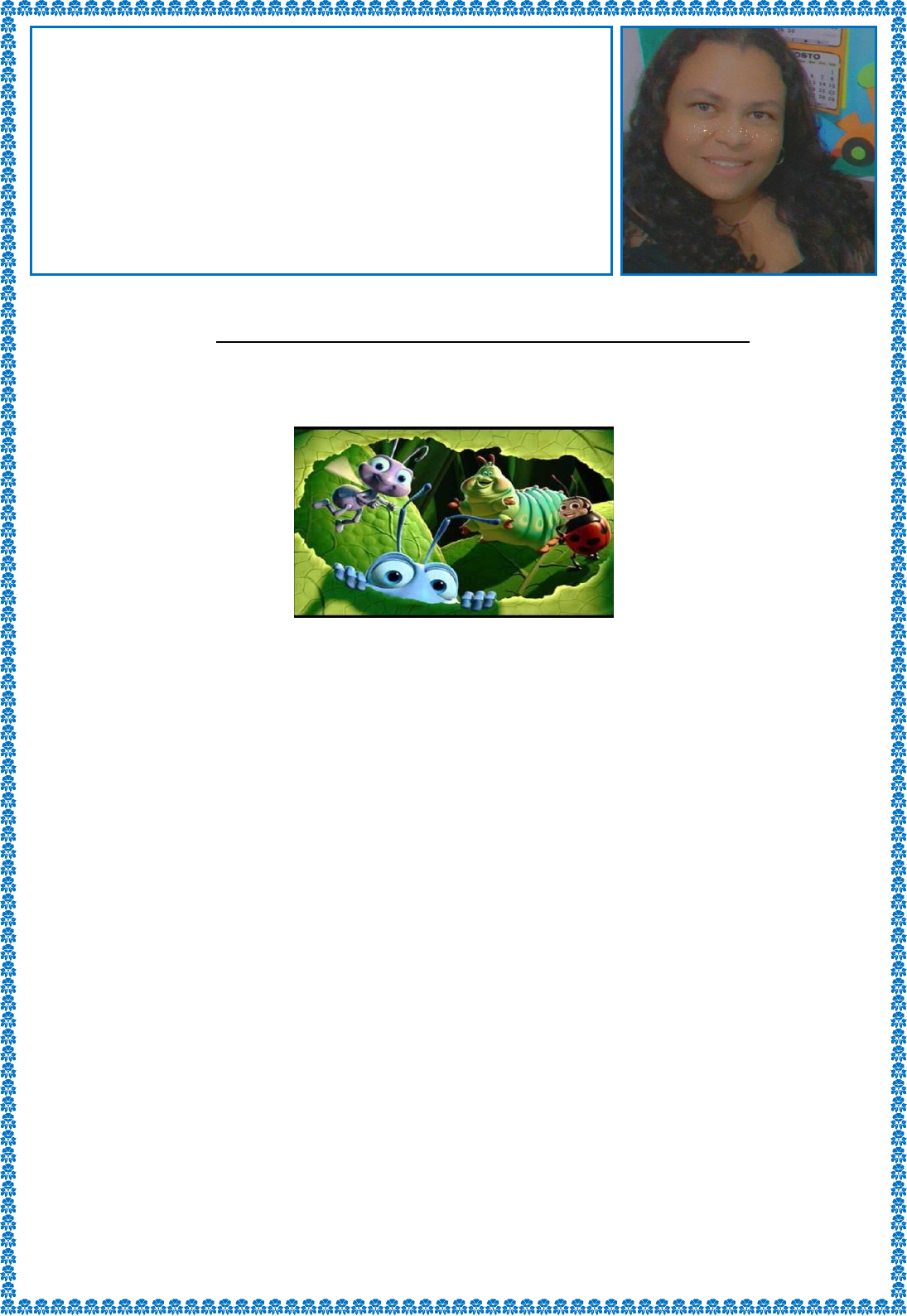 Educação Cooperativista para Crianças COOPERATISMO Análise do filme” Vida de Inseto” 1.Liste os insetos que você viu no filme: __________________________________________________________________ __________________________________________________________________ 2.Qual era o medo da princesa Atta? __________________________________________________________________ 3.Os gafanhotos estabeleciam prazos para o formigueiro colher e entregar os alimentos,caso isso não acontecesse eram ameaçados.Por que Flik a formiga colhedeira era diferente das outras? _________________________________________________________________________ 4. Qual foi a atitude das formigas quando perderam a colheita? ___________________________________________________________________ 5. Como elas são divididas no formigueiro e como trabalham? ___________________________________________________________________ 6.Qual o nome da forma como as formigas se organizam?Que outros insetos se organizam dessa maneira? _________________________________________________________________________ Projetos e atividades Para anos iniciais Professora Valéria Brito