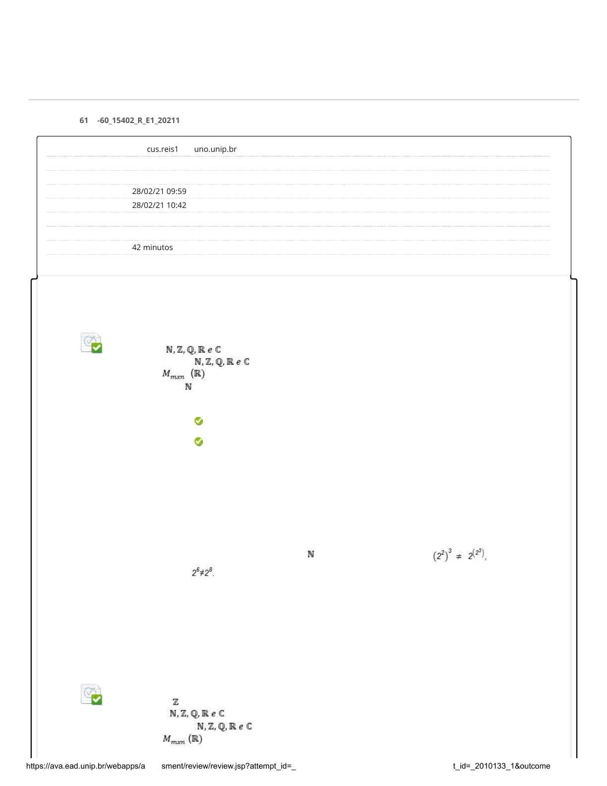 Revisar envio do teste: QUESTIONÁRIO UNIDADE IIÁLGEBRA 6153-60_15402_R_E1_20211 CONTEÚDO