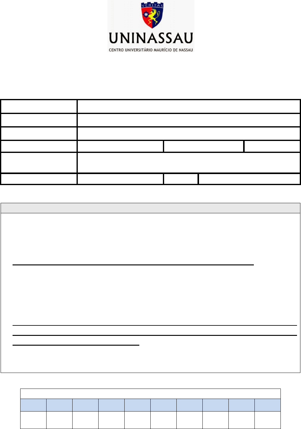 AVALIAÇÃO PRESENCIAL CURSO DISCIPLINA QUÍMICA ORGÂNICA PROFESSOR WALDOMIRO QUEIROZ 2 TURMA DATA DA PROVA ALUNO(A) MATRÍCULA POLO GABARITO OBRIGATÓRIO 1 2 3 4 5 6 7 8 9 10 C B C C A E D C E D ATENÇÃO – LEIA ANTES DE COMEÇAR 1. PREENCHA, OBRIGATORIAMENTE, TODOS OS ITENS DO CABEÇALHO. 2. ESTA AVALIAÇÃO POSSUI 10 QUESTÕES. 3. TODAS AS QUESTÕES DE MÚLTIPLA ESCOLHA, APRESENTANDO UMA SÓ ALTERNATIVA CORRETA. 4. QUALQUER TIPO DE RASURA NO GABARITO ANULA A RESPOSTA. 5. SÓ VALERÃO AS QUESTÕES QUE ESTIVEREM MARCADAS NO GABARITO PRESENTE NA PRIMEIRA PÁGINA. 6. O ALUNO CUJO NOME NÃO ESTIVER NA ATA DE PROVA DEVE DIRIGIR-SE À SECRETARIA PARA SOLICITAR AUTORIZAÇÃO, QUE DEVE SER ENTREGUE AO DOCENTE. 7. NÃO É PERMITIDO O EMPRÉSTIMO DE MATERIAL DE NENHUMA ESPÉCIE. 8. ANOTE O GABARITO TAMBÉM NA ÚLTIMA FOLHA E LEVE – APENAS A ÚLTIMA FOLHA – PARA CONFERÊNCIA POSTERIOR À REALIZAÇÃO DA AVALIAÇÃO. 9. O ALUNO SÓ PODERÁ DEVOLVER A PROVA 1 HORA APÓS O INÍCIO DA AVALIAÇÃO. QUÍMICA ORGÂNICA Professor Waldomiro Queiroz 1. Os cães conhecem seus donos pelo cheiro. Isso se deve ao fato de os seres humanos apresentarem, junto à pele, glândulas que produzem e liberam ácidos carboxílicos. A mistura desses ácidos varia de pessoa para pessoa, o permite a animais de faro bem desenvolvido conseguir discriminá-lo. Com o objetivo de testar tal discriminação, um pesquisador elaborou uma mistura de substâncias semelhantes à produzida pelo dono do cão. Para isso, ele usou substâncias genericamente representadas por: a) RCONH2 b) RCHO. c) RCOOH. d) RCH2OH. e) RCOOCH3. 2. Considere as funções orgânicas circuladas e numeradas presentes nas moléculas abaixo: Assinale a alternativa correta. a) No composto 3 a função orgânica circulada 5 representa um ácido carboxílico. b) No composto 3 a função orgânica circulada 4 representa um álcool. c) No composto 1 a função orgânica circulada 1 representa uma amina. d) No composto 3 a função orgânica circulada 6 representa um álcool. e) No composto 2 a função orgânica circulada 3 representa um éter. 3. Da cicuta, que envenenou Sócrates, se extrai um alcalóide que provoca a paralisia muscular, principalmente do aparelho respiratório, causando a morte por asfixia. Essa substância é a coniína cuja fórmula estrutural está abaixo representada O número de carbonos secundários na coniína é: a) 8 b) 7 c) 6 d) 4 e) 5 4. O chocolate é uma droga psicoativa extremamente leve, pois contém teobromina, um alcalóide. A fórmula desta substância está representada abaixo. Assinale a alternativa que contém a fórmula molecular da teobromina. a) C6H8O2N4 b) C7H7O2N4 c) C7H8O2N4 d) C7H9O2N4 e) C6H7O2N4 5. O Diazepan é uma substância cristalina usada como ansiolítico, anticonvulsivante, sedativo e relaxante muscular. É frequentemente indicado para o tratamento da insônia, epilepsia e espasmos musculares. As geometrias dos átomos de carbono marcados com os números 1, 2 e 3 são, respectivamente, a) trigonal, tetraédrica e trigonal. b) trigonal, trigonal e trigonal. c) trigonal, linear e trigonal. d) angular, linear e angular. e) tetraédrica, trigonal e tetraédrica. 6. Analise o composto a seguir. No composto as ramificações circuladas 1, 2, 3 e 4 são, respectivamente: a) butil, terc-butil, sec-butil e isobutil. b) isobutil, sec-butil, terc-butil e butil. c) terc-butil, iso-butil, butil e sec-butil. d) sec-butil, butil, isobutil e terc-butil. e) terc-butil, sec-butil, iso-butil e butil. 7. A preocupação com o bem-estar e a saúde é uma das características da sociedade moderna. Um dos recentes lançamentos que evidenciam essa preocupação no setor de alimentos é o leite com ômega-3. Essa substância não é produzida pelo nosso organismo, e estudos revelam que sua ingestão é importante para evitar problemas cardiovasculares. A estrutura química do ômega-3 pode ser assim representada Com relação à estrutura química do ômega-3, é correto afirmar que essa substância possui cadeia carbônica. a) alicíclica, homogênea, saturada e normal. b) alifática, homogênea, saturada e ramificada. c) alicíclica, heterogênea, insaturada e ramificada. d) alifática, homogênea, insaturada e normal. e) homocíclica, heterogênea, saturada e normal. 8. O composto apresentado abaixo foi sintetizado pela primeira vez em 2003. O nome que ele recebeu, nanogaroto, se deve ao fato de sua estrutura lembrar a forma humana e de suas distâncias longitudinais estarem na escala nanométrica (~2 nm). A cadeia carbônica do nanogaroto pode ser classificada como: a) homogênea e insaturada. b) heterogênea e saturada. c) mista e heterogênea. d) alicíclica e ramificada. e) aromática e normal. 9. A molécula do Paracetamol, estrutura representada abaixo, é o princípio ativo dos analgésicos Tylenol, Cibalena e Resprin. Em relação à molécula do Paracetamol, é correto afirmar que: a) é apolar. b) possui um anel ciclo-hexano. c) possui apenas átomos de carbono insaturados. d) possui apenas átomos de carbono secundários. e) possui as funções fenol e amida. 10. O número de átomos de carbono com geometria linear é: a) 14 b) 6 c) 8 d) 10 e) 12