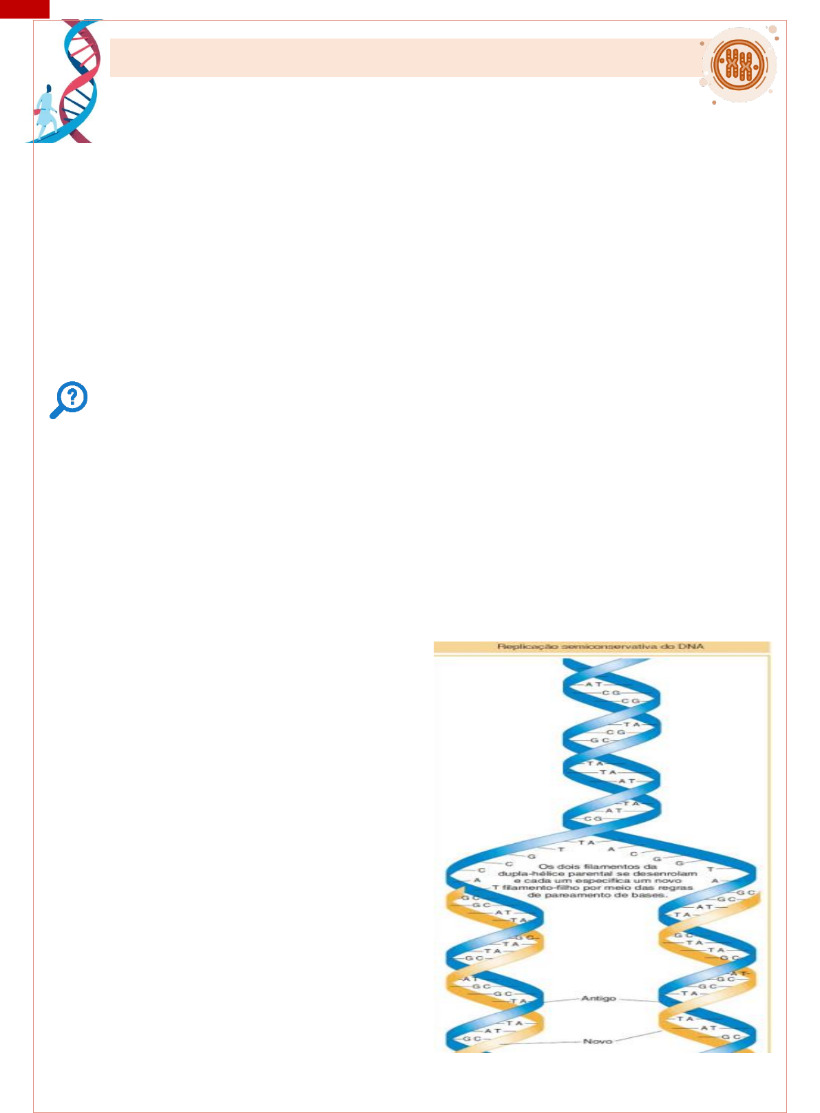Fernanda Carvalho, 4º semestre - TUT 04 1 Genética Replicação do DNA OBJETIVOS DA AULA: 1. Apresentar o processo de replicação do DNA e os seus principais componentes moleculares; 2. Caracterizar a técnica de reação em cadeia da polimerase (PCR), correlacionando-a com a replicação do DNA in vivo; 3. Explicar como a técnica de PCR pode ser utilizada para o diagnóstico molecular de processos infecciosos e patológicos. Pergunta para iniciar o assunto: o Qual o principal motivo para uma célula replicar? Pelo simples motivo de haver uma divisão celular. Uma célula vai replicar o seu material genético quando ela for gerar novas células. Uma célula com 46 cromossomos, para conseguir gerar mais duas (cada uma com 46 cromossomos), precisa antes duplicar o seu material genético (o que antes era 46 passa a ser 92) e, só depois disso, dividir e cada uma ficar com 46 cromossomos. Isso é justamente o foco dessa aula: como acontece essa replicação. Esse processo vai acontecer antes da fase M (fase de mitose); vai acontecer na fase de interfase. E dentro da interfase existe subfases, e uma delas é justamente onde acontece o processo de síntese de DNA (fase S). REPLIÇÃO SEMI-CONSERVATIVA: É um processo que vai gerar duas moléculas a partir de uma. Nesse processo, vai haver a conservação da metade do material genético inicial. Portanto, o material final tem uma característica híbrida, ou seja, nessa nova molécula vai conter uma parte velha e a outra parte nova. Isso acontece porque o processo conserva e usa como modelo as fitas velhas. Importância do processo semiconservativo: o Se não fosse semiconservativo não haveria a possibilidade de desenvolver os estudos de vínculos genéticos. Ex.: o teste de paternidade só é possível por causa desse processo; o Não haveria a possibilidade de entender sobre a evolução das espécies e também não seria possível construir uma arvore filogenética, uma vez que a conservação desse material é que garante o desempenho dos estudos. O modelo semiconservativo da replicação do DNA proposto por Watson e Crick tem por base a especificidade dos pares de bases ligados por pontes de hidrogênio. Os filamentos parentais, demonstrados em azul, atuam como moldes para a polimerização. Os filamentos recém-polimerizados, demonstrados em amarelo, apresentam as sequências de bases que são complementares aos seus respectivos moldes. Fernanda Carvalho, 4º semestre - TUT 04 2 Genética Explicando a imagem da direita: percebe-se na imagem que há uma fita velha, a qual se abre, e as duas fitas que foram geradas a partir dessa abertura (da desnaturação) são utilizadas como fitas moldes para que sejam criadas em cima delas novas fitas de DNA. As partes roxas são as fitas antigas, e as partes verdes são as novas fitas sendo formadas. CONCEITO-CHAVE: O DNA é replicado por meio da deselicoidização dos dois filamentos da dupla-hélice e da construção de um novo filamento complementar em cada um dos filamentos separados da dupla-hélice original. EXISTE UM PONTO ESPECÍFICO DE INÍCIO? Isso vai variar de organismo para organismo. Nas bactérias, por exemplo, como o seu DNA é circular, existe um único ponto de origem para a replicação. Já no caso da espécie humana e de outras espécies que contenham um material genético mais jovem e mais complexo, vai haver múltiplas origens (são os pontos de início desse processo). E essas origens estão espalhadas em torno do material genético. Esses locais de iniciação são ricos em adenina e timina (inclusive muito mais do que citosina e guanina. E isso se dá porque entre adenina e timina existem 2 pontes de hidrogênio, enquanto que citosina e guanina possuem 3 pontes. E como essas origens precisam ser abertas para que o material se replique, essas ligações, então, precisam ser mais fracas para serem quebradas. Sendo assim, por isso que é mais vantajoso que a maioria das ligações sejam entre adenina e timina). Nesse processo de abertura das fitas, vão sendo formadas as bolhas de replicação – é o que se percebe na imagem da direita. Nessa mesma imagem percebe-se, também, através das setas, que esse é um processo bidirecional que vai para um lado e para o outro formando duas fitas e, no final do processo, tem-se a duplicação do material genético. Sempre ocorre no sentido 5’-3’. ABERTURA DA DUPLA FITA: 1. DNA HELICASE: Promove a quebra das pontes de hidrogênio entre as bases nitrogenadas para a fita de DNA iniciar o processo de replicação. Recebe esse nome porque ela desfaz a dupla hélice do DNA. Fernanda Carvalho, 4º semestre - TUT 04 3 Genética 2. TOPOISOMERASES: São enzimas importantes para abertura da fita de DNA, junto com as helicases, no processo de desnaturação. Com o formato helicoidal da estrutura molecular do DNA, essas topoisomerases atuam desenrolando e relaxando a molécula, desfazendo a tensão nela e evitando que ela se quebre. A principal topoisomerase é a girase, que atua desenrolando a molécula de DNA, aliviando a tensão dessa molécula e relaxando-a no momento em que ela está sendo tensionada pela helicase. Existem alguns tipos de topoisomerases; elas diferem na sua função. Podem estar distribuídas em quantidades diferentes, em diferentes espécies celulares (procariontes e eucariontes). PROTEÍNAS LIGADORAS DE FITA SIMPLES (SSB): Atuam de maneira a manter a fita simples separada uma da outra, evitando o anelamento. À medida que a helicase passa, vai separando as fitas e quando ela chega ao final do material genético, o seu início pode voltar a se ligar. Para que isso não aconteça (renaturação do DNA) e para mantê-las separadas, é usada a proteína ligadora de fita simples ou SSB, elas têm uma afinidade química muito grande quando o material genético está linear em fita simples; por questões de pH (são proteínas básicas enquanto nosso DNA é ácido) e por apresentarem, também, aminoácidos com carga positi