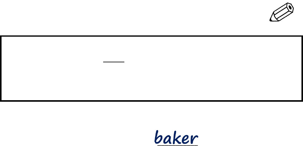 NAME: ________________________ DATE: ________________________ GRAMMAR WORKSHEET SUFFIX: -er golf drive smoke swim paint bake explore blog manage garden own begin teach clean babysit attack Complete the sentences below. Use the suffix ‘-er’ (or ‘-r) with the words in the box. 1. I work in a bakery and I bake bread. I’m a __________________. 2. Sam really wants to be a __________________ when he grows up. He likes to teach people. 3. I’m not a great __________________ but I like to golf on weekends. 4. David Livingstone was a famous British __________________. He explored parts of Africa. 5. My brother likes to blog about restaurants in our city. He is a __________________. 6. Our windows look dirty. Let’s call a __________________ to come and wash them. 7. I like growing flowers and plants. Maybe I’ll learn how to be a __________________! 8. Michael Phelps is a famous __________________ who swam in the 2012 Olympic Games. 9. This is my first time to study Spanish. I’m a __________________. 10. The Dutch __________________ Vincent van Gogh painted many great works of art. 11. __________________s who smoke a lot of cigarettes usually cough a lot. 12. Mrs. Smith really knows how to manage a company well. She’s a great __________________. 13. Who can take care of our child for two hours? Do you know any __________________s? 14. The police are looking for an __________________ who attacked and robbed a man. 15. I think we should tell the __________________ to slow down. He’s driving too fast. 16. Does that red car belong to Richard? Is he the __________________? Permission granted to reproduce for classroom use. © www.allthingsgrammar.com GRAMMAR WORKSHEET ALL Things Grammar Grammar Focus Suffix: -er Level Intermediate to Advanced ANSWER KEY 1. baker 2. teacher 3. golfer 4. explorer 5. blogger 6. cleaner 7. gardener 8. swimmer 9. beginner 10. painter 11. smoker(s) 12. manager 13. babysitter 14. attacker 15. driver 16. owner Grades as percentages 16 / 16 = 100% 15 / 16 = 94 14 / 16 = 86 13 / 16 = 81 12 / 16 = 75 11 / 16 = 69 10 / 16 = 63 9 / 16 = 56 8 / 16 = 50 7 / 16 = 44 6 / 16 = 38 5 / 16 = 31 4 / 16 = 25 3 / 16 = 19 2 / 16 = 13 1 / 16 = 6 0 / 16 = 0% Permission granted to reproduce for classroom use. © www.allthingsgrammar.com