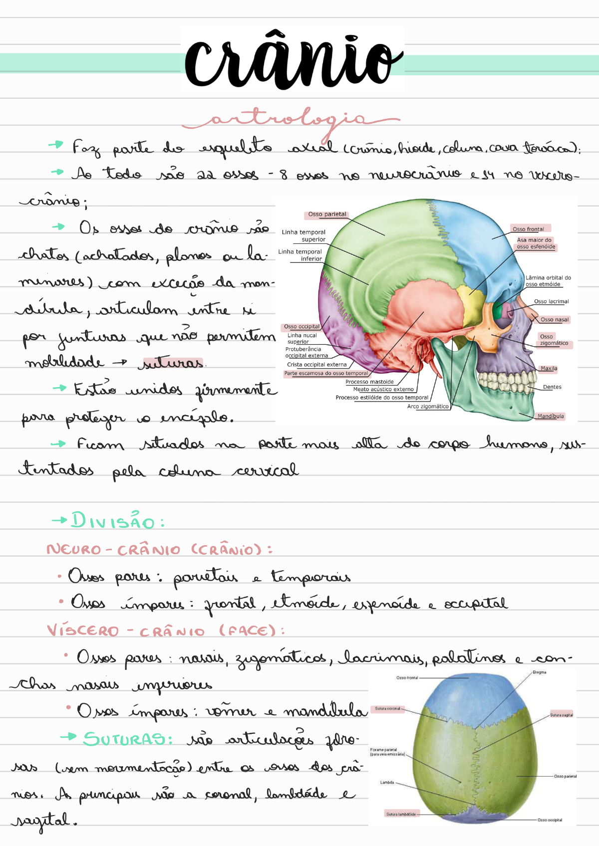 os Especiais 1) Quando falamos sobre a anatomia de crânio, precisamos ter o conhecimento que o crânio, ou esqueleto ósseo da cabeça, localiza-se so...