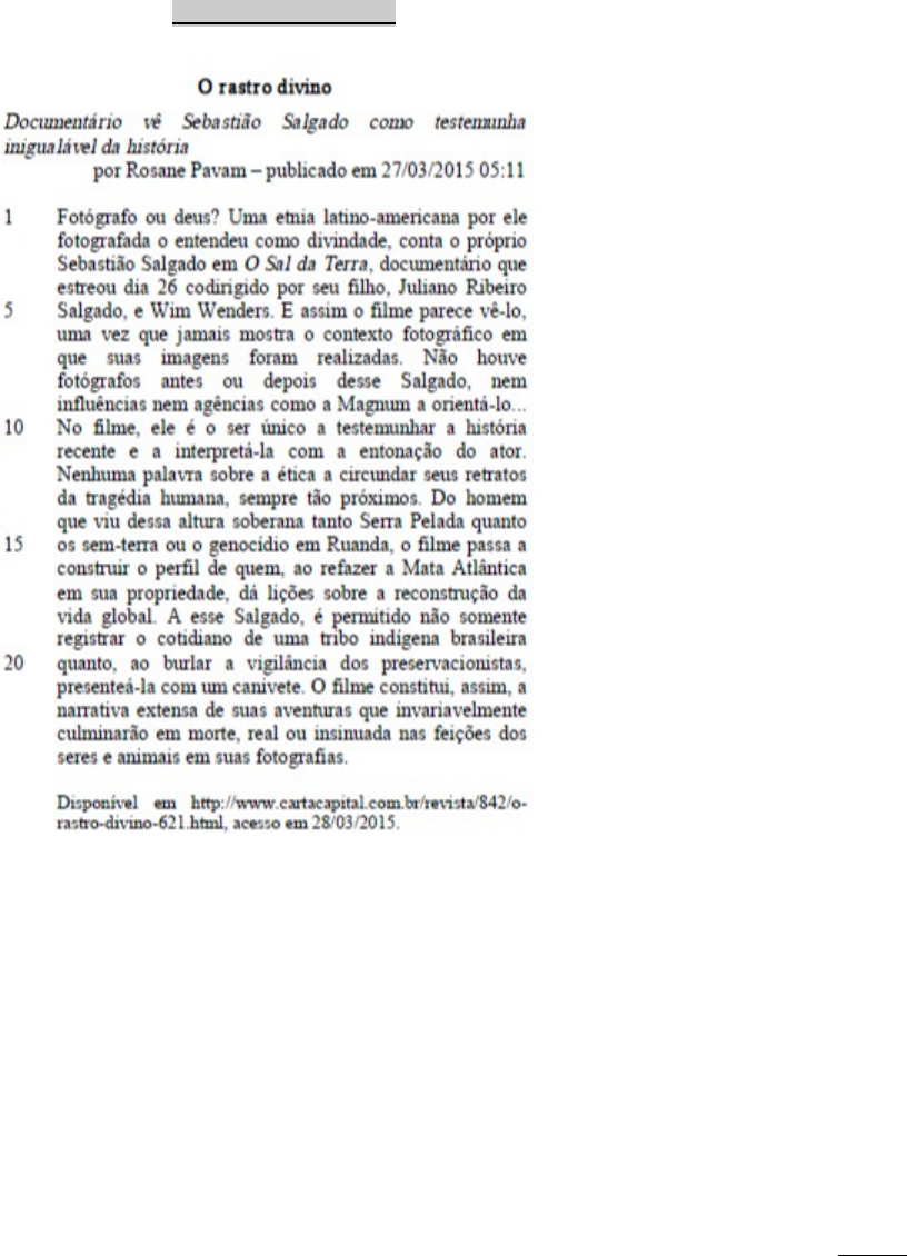 02 – O texto, ao relatar o trabalho de Sebastião Salgado e o