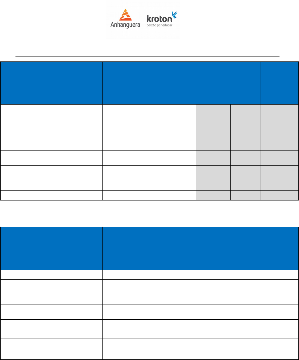 TABELA DE CARGA HORÁRIA DO ESTÁGIO 2021.1 -ADAPTADA COVID 19 Atividade Carga Horária por Tarefa Carga Horária Máxima por Semestre Carga Horária Obrigatória por Semestre* Carga horária Cumprida no semestre Verificação de Carga horária pelo prof. 1. Acompanhamento de processos. Até 2 horas p/ processo. Sem limite. 10 horas 2. Plantões/presenças no NPJ 3 horas por hora de acesso ao teams (3 horas) 40 horas. 30 horas 3. Elaboração de peças processuais em processos reais do NPJ. Até 4 horas. Sem limite. 8 horas 4. Audiências reais ou virtuais assistidas no semestre 2 horas por audiência 20 horas 10 horas 5. Prova de Conhecimento Técnico. Até 10 horas.*** 10 horas. 6 horas*** 6.Estágio jurídico externo comprovado Até 4 horas por tarde/manhã 40 horas 0 TOTAL DE HORAS ------------------------------- -------------- ----------- * Todas as atividades que possuem carga horária mínima são obrigatórias, ensejando em REPROVAÇÃO dos acadêmicos que não as cumprirem e não alcançarem o mínimo curricular (90 horas). Atividade Forma de comprovação 1. Acompanhamento de processos. Fazer uma tabela dos dias que acessou e a movimentação do processo 2. Plantões/presenças no NPJ Fazer print da tela e coloca 6 prits em cada página de word 3. Elaboração de peças processuais em processos reais do NPJ. As petições devem integrar o relatório. 4. Audiências reais ou virtuais assistidas no semestre as atas devem integrar o relatório 5. Prova de Conhecimento Técnico. O print da nota da prova no sistema AVA deve integrar o relatório 6.Estágio jurídico externo comprovado Declaração do advogado ou setor jurídico da empresa com assinatura TOTAL DE HORAS A tabela da pontuação deve ser a segunda página do relatório e deve vir preenchida de todos os pontos ao lado de cada atividade com o total de prontos alcançado, sob pena de não recebimento do relatório pelo professor. O aluno que estiver matriculado em dois estágios deve realizar dois relatórios. Relatório NPJ estágio Nome: RA: Grupo: Semestre: Estágio: (III ou IV) Professor: (do dia de sua equipe) TABELA PREENCHIDA COM AS HORAS E O TOTAL AO FINAL Atividade Carga Horária por Tarefa Carga Horária Máxima por Semestre Carga Horária Obrigatória por Semestre* Carga horária Cumprida no semestre Verificação de Carga horária pelo prof. 1. Acompanhamento de processos. Até 2 horas p/ processo. Sem limite. 10 horas 2. Plantões/presenças no NPJ 2 horas por hora de acesso ao Teams 40 horas. 30 horas 3. Elaboração de peças processuais em processos reais do NPJ. Até 4 horas. Sem limite. 8 horas 4. Audiências reais ou virtuais assistidas no semestre 2 horas por audiência 20 horas 10 horas 5. Prova de Conhecimento Técnico. Até 10 horas.*** 10 horas. 6 horas*** 6.Estágio jurídico externo comprovado Até 4 horas por tarde/manhã 40 horas 0 TOTAL DE HORAS ------------------------------- -------------- ----*------- TABELA DE ACOMPANHAMENTO DE PROCESSOS (todos os processos da equipe) Número do processo Data do acesso Movimentação EX. 09/03/21 Publicado prazo para nosso cliente 22/09/21 A equipe realizou a petição 23/09/21 Enviado para correção 24/09/21 Cls para sentença Número do processo DATA DE ACESSO DAS ORIENTAÇÕES Ex. Dia 21/09 Colocar o print Ex. Dia 21/09 PEÇAS PROCESSUAIS PETIÇÃO I PROCESSO XXXXXXXX PARTE: XXXXXXX (ANEXAR A PETIÇÃO) AUDIÊNCIAS (ANEXAR AS ATAS) PRINT DA PROVA REALIZADA COM A NOTA NO AVA (COLOCAR O PRINT NESTA PÁGINA) ESTÁGIO EXTERNO (FACULTATIVO) ANEXAR A DECLARAÇÃO