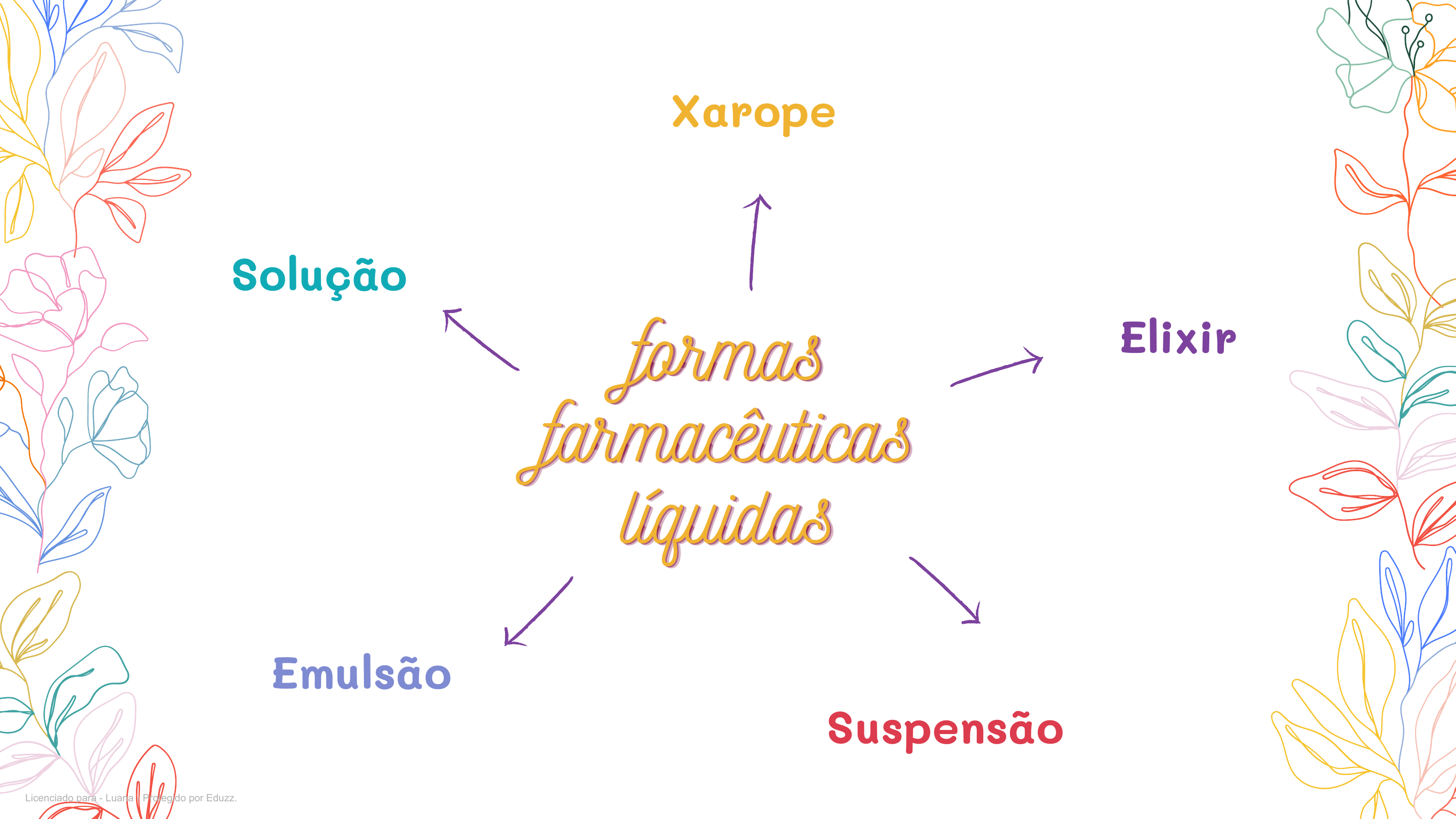 formasformasformas farmacêuticasfarmacêuticasfarmacêuticas líquidaslíquidaslíquidas Elixir Solução Xarope Suspensão Emulsão Licenciado para - Luana - Protegido por Eduzz.com