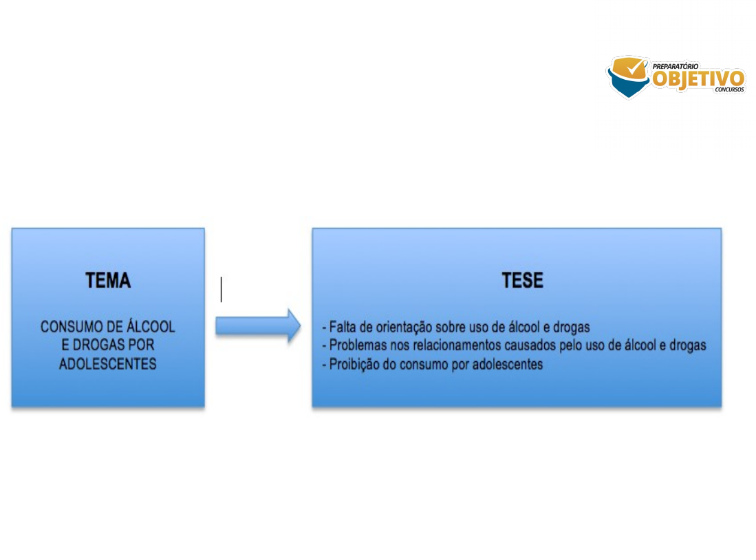 www.preparatorioobjetivo.com.br TESE Professor: Emília Parente Disciplina: Português Afinal, o que é a TESE de um texto? Tese é um assunto, um tema, um objeto. É uma proposição que se apresenta para ser discutida e defendida por alguém, com base em determinadas hipóteses ou pressupostos. Do grego “thesis” que significa “proposição”. A expressão “em tese” significa “de modo geral”, “de acordo com o que se supõe”, “em princípio”, “em teoria”. Leia o texto abaixo: Unesco quer que escola ensine a mediar conflitos Adotado em países como Argentina, Espanha, França e Austrália, a mediação dos conflitos pode entrar na grade curricular das escolas como uma forma de reduzir a violência. A Unesco tem dialogado com o Ministério da Educação nesse sentido. No Rio de Janeiro, pelo menos 20 escolas públicas adotaram a ideia e mantêm projetos que ajudam as crianças a mediar conflitos por meio de conversa. O objetivo é atacar a cultura da hipermasculinidade que reforça a ideia de que a solução para os conflitos é feita por meio da força. [...] [...] "É preciso conscientizar os alunos de que existem formas não-violentas de resolução de conflitos", afirma o sociólogo Jorge Werthein, da Unesco. Para ele, a cultura de mediação propicia a prática do diálogo, a resolução de conflitos, diminui o sentimento de insegurança dos alunos, interfere nos níveis de violência e pode contribuir para a melhoria na qualidade do ensino e da aprendizagem, [...]" COLLUCCI, Cláudia. Folha de S. Paulo, 25 jul, 2005. p. C 4. Fragmento. (P090859ES_SUP) 1- A tese defendida pelo autor desse texto é que a mediação de conflitos a) deve ser uma disciplina escolar das escolas públicas do Rio de Janeiro. b) melhora a aprendizagem nas escolas públicas. c) propicia a prática do diálogo e diminui a violência. d)reforça a ideia de que a resolução de desentendimentos ocorre pela força. pág. 1 www.preparatorioobjetivo.com.br Hoje em dia, o tipo de texto mais cobrado em vestibulares e concursos é o dissertativo- argumentativo. Isso já não é novidade mais. Entretanto, mesmo que isso não seja algo novo, muitas pessoas encontram dificuldades em compreender os aspectos que constituem esse tipo de texto e, consequentemente, encontram dificuldades para desenvolver essa produção textual. Ao produzirmos um texto, o nosso foco principal deve ser a função social que ele tem, ou seja, devemos tentar entender as razões que nos levam a produzir determinado tipo de texto. No caso dos textos argumentativos, devemos ter em mente que a principal função é: defesa de posicionamento crítico. Logo, de forma resumida, ao construirmos um texto dissertativo-argumentativo, estamos apresentando a nossa opinião sobre determinado tema e desenvolvendo ideias que possam fundamentar o nosso ponto de vista. Você deve ter percebido que as palavras que mais apareceram no texto até agora foram: opinião, ponto de vista, posicionamento. E nós temos uma explicação bem simples para que isso tenha acontecido. Tendo em vista que a principal função social de um texto argumentativo é a defesa de nosso ponto de vista, podemos afirmar que a essência desse tipo de texto é a nossa opinião, também conhecida como tese. Tese, como já observamos anteriormente, é o que, comumente, chamamos de opinião, ponto de vista, posicionamento crítico. É ela a parte fundamental para a existência de um texto argumentativo. Talvez isso possa ter parecido muito radical, mas pense comigo: um texto argumentativo será um [bom] texto argumentativo se não apresentar uma tese? QUESTÕES 2- (FDC – FUNASA) A tese basicamente defendida pela reportagem é a de que: pág. 2 www.preparatorioobjetivo.com.br a) as leis brasileiras em relação aos agrotóxicos não devem ser modificadas. b) as doenças hormonais são provocadas pelo uso de agrotóxicos. c) os agrotóxicos devem ter sua utilização proibida pelo governo. d) o Brasil deve importar progressivamente menos agrotóxicos. e) a agricultura brasileira devia ser basicamente orgânica. Pronto para outra? Ricardo Freire Para muita gente, esta é a semana mais difícil do ano. Você volta das férias, tenta se adaptar de novo à rotina e já pressente as surpresas que vai ter ao receber a conta do cartão de crédito. Quando se dá conta, é mais uma vítima da depressão pós-viagem. Eu só conheço uma maneira de sair dessa: começar a pensar já na próxima. Não, não é cedo demais. Nem sintoma de descaso pelo trabalho. Acalentar uma viagem é uma maneira segura de manter aceso o interesse pelo fato gerador de suas férias: seu emprego. Além do que, planejar uma viagem com antecedência é o melhor jeito de rentabilizar seu investimento. Por que se contentar em aproveitar apenas os dias que você passa longe de casa, quando dá para começar a viajar muito antes de embarcar - e sem pagar nada mais por isso? Eu gosto de comparar o planejamento de uma grande viagem ao preparo de um desfile de escola de samba no Carnaval. Assim como as férias, o Carnaval em si dura pouco - mas é o grand finale de um ano inteiro de divertida preparação. É fácil trazer o know how do samba para suas férias. Use os três primeiros meses depois da volta para definir o "enredo" de sua próxima viagem. Tire os meses seguintes para encomendar guias e colecionar as informações que caírem em sua mão - revistas, jornais, dicas de quem já foi. Vá montando o itinerário mais consistente, descobrindo os meios de transporte mais adequados, decidindo quais são os hotéis imperdíveis. Quando faltarem quatro meses para a partida, tome coragem e reserve a passagem e os hotéis. Passe os últimos três meses fazendo a sintonia fina: escolhendo restaurantes, decidindo o que merece e o que não merece ser visto. Depois de tudo isso não tem erro: é partir direto para a apoteose. Revista Época, 29/01/2007, p. 112 (fragmento). 3- O texto defende a tese de que: a) nun