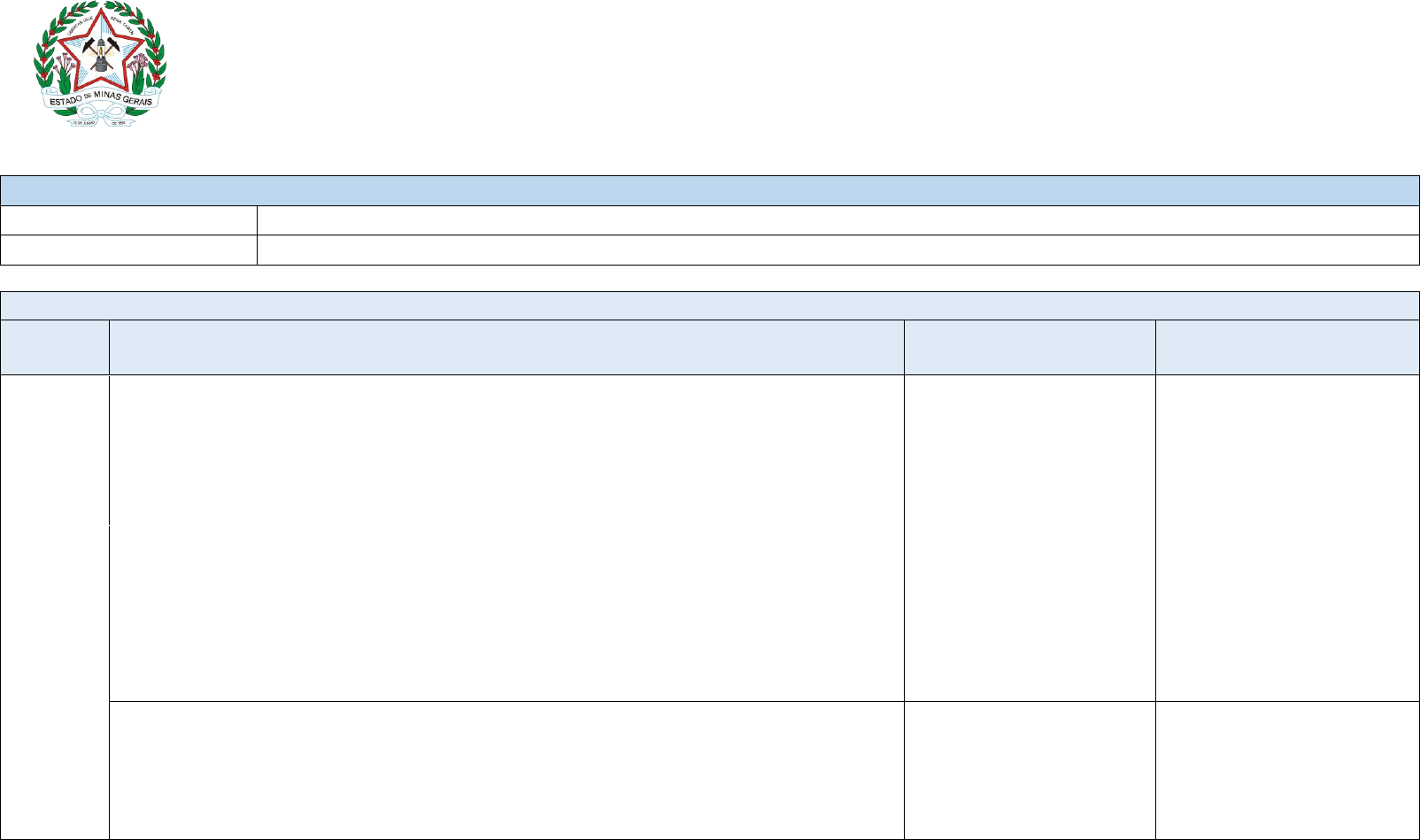 Governo de Minas Gerais Secretaria de Estado de Educação Subsecretaria de Desenvolvimento da Educação Básica Escola de Formação e Desenvolvimento Profissional de Educadores PLANO DE CURSO / BIMESTRE - CRMG ANO: 1º ano – Ensino Fundamental Anos Iniciais COMPONENTE CURRICULAR Língua Portuguesa 1º BIMESTRE MÊS CURRÍCULO REFERÊNCIA DE MINAS GERAIS MATRIZ DE REFERÊNCIA (SAEB) CONTEÚDOS RELACIONADOS (PNLD) FEVEREIR O CAMPO DE ATUAÇÃO: CAMPO ARTÍSTICO-LITERÁRIO PRÁTICAS DE LINGUAGEM: Leitura/escuta (compartilhada e autônoma) OBJETO DE CONHECIMENTO: Formação do leitor literário Leitura multissemiótica HABILIDADES: (EF15LP18) Relacionar texto com ilustrações e outros recursos gráficos. - Leitura e interpretação de texto com imagem - Articulação entre texto verbal e visual CAMPO DE ATUAÇÃO: TODOS OS CAMPOS DE ATUAÇÃO PRÁTICAS DE LINGUAGEM: Leitura/escuta (compartilhada e autônoma) OBJETO DE CONHECIMENTO: Protocolos de leitura HABILIDADES: (EF01LP01X) Reconhecer que textos são lidos e escritos da esquerda para a direita e de cima para baixo da página e com espaço entre as palavras, obedecendo os limites de margens e linhas. - Leitura - Alinhamento do texto CAMPO DE ATUAÇÃO: CAMPO ARTÍSTICO-LITERÁRIO PRÁTICAS DE LINGUAGEM: Oralidade OBJETO DE CONHECIMENTO: Contagem de histórias HABILIDADES: (EF15LP19) Recontar oralmente, com e sem apoio de imagem, textos literários lidos pelo professor. - Participação nas atividades orais - reconto CAMPO DE ATUAÇÃO: CAMPO ARTÍSTICO-LITERÁRIO PRÁTICAS DE LINGUAGEM: Análise linguística/semiótica (Alfabetização) OBJETO DE CONHECIMENTO: Formas de composição de narrativas HABILIDADES: (EF01LP26) Identificar elementos de uma narrativa lida ou escutada, incluindo personagens, enredo, tempo e espaço; - Leitura / escuta de textos narrativos - Elementos e partes da narrativa CAMPO DE ATUAÇÃO: CAMPO ARTÍSTICO-LITERÁRIO PRÁTICAS DE LINGUAGEM: Análise linguística/semiótica (Alfabetização) OBJETO DE CONHECIMENTO: Formas de composição de narrativas HABILIDADES: (EF15LP10) Escutar, com atenção, falas de professores e colegas, formulando perguntas pertinentes ao tema e solicitando esclarecimentos sempre que necessário. - Participação nas atividades orais - escuta CAMPO DE ATUAÇÃO: TODOS OS CAMPOS DE ATUAÇÃO PRÁTICAS DE LINGUAGEM: Análise linguística/semiótica (Alfabetização) OBJETO DE CONHECIMENTO: Conhecimento do alfabeto do português do Brasil HABILIDADES: (EF01LP10A) Nomear as letras do alfabeto; - Apresentação das letras do alfabeto CAMPO DE ATUAÇÃO: TODOS OS CAMPOS DE ATUAÇÃO PRÁTICAS DE LINGUAGEM: Análise linguística/semiótica (Alfabetização) OBJETO DE CONHECIMENTO: Conhecimento do alfabeto do português do Brasil HABILIDADES: (EF01LP10BX) Recitar as letras em ordem alfabética e/ou aleatoriamente. - Letras do alfabeto - Ordem alfabética MARÇO CAMPO DE ATUAÇÃO: TODOS OS CAMPOS DE ATUAÇÃO PRÁTICAS DE LINGUAGEM: Análise linguística/semiótica (Alfabetização) OBJETO DE CONHECIMENTO: Construção do sistema alfabético e da ortografia HABILIDADES: (EF01LP07) Identificar fonemas e sua representação por letras. - Análise da relação fonema/grafema CAMPO DE ATUAÇÃO: TODOS OS CAMPOS DE ATUAÇÃO PRÁTICAS DE LINGUAGEM: Análise linguística/semiótica (Alfabetização) OBJETO DE CONHECIMENTO: Conhecimento do alfabeto do português do Brasil HABILIDADES: (EF01LP04) Distinguir as letras do alfabeto de outros sinais gráficos. - Letras do alfabeto - Sinais gráficos CAMPO DE ATUAÇÃO: TODOS OS CAMPOS DE ATUAÇÃO PRÁTICAS DE LINGUAGEM: Leitura/escuta (compartilhada e autônoma) OBJETO DE CONHECIMENTO: Estratégia de leitura HABILIDADES: (EF15LP03) Localizar informações explícitas em textos. D1 - Localizar informações explícitas em um texto. - Leitura e interpretação de textos CAMPO DE ATUAÇÃO: TODOS OS CAMPOS DE ATUAÇÃO PRÁTICAS DE LINGUAGEM: Análise linguística/semiótica (Alfabetização) OBJETO DE CONHECIMENTO: Segmentação de palavras/Classificação de palavras por número de sílabas HABILIDADES: (EF01LP12) Reconhecer a separação das palavras, na escrita, por espaços em branco; - Segmentação de palavras nos textos CAMPO DE ATUAÇÃO: TODOS OS CAMPOS DE ATUAÇÃO PRÁTICAS DE LINGUAGEM: Análise linguística/semiótica (Alfabetização) OBJETO DE CONHECIMENTO: Construção do sistema alfabético HABILIDADES: (EF01LP05X) Reconhecer o sistema de escrita alfabética como representação dos sons da fala, bem como a diversidade de pontos articulatórios para a execução de cada som. - Construção do sistema alfabético - relação fonema/grafema ABRIL CAMPO DE ATUAÇÃO: TODOS OS CAMPOS DE ATUAÇÃO PRÁTICAS DE LINGUAGEM: Análise linguística/semiótica (Alfabetização) OBJETO DE CONHECIMENTO: Segmentação de palavras/Classificação de palavras por número de sílabas HABILIDADES: (EF15LP12) Atribuir significado a aspectos não linguísticos (paralinguísticos) observados na fala, como direção do olhar, riso, gestos, movimentos da cabeça (de concordância ou discordância), expressão corporal, tom de voz. - Participação nas atividades orais - aspectos paralinguisticos CAMPO DE ATUAÇÃO: TODOS OS CAMPOS DE ATUAÇÃO PRÁTICAS DE LINGUAGEM: Oralidade OBJETO DE CONHECIMENTO: Características da conversação espontânea HABILIDADES: (EF15LP11X) Reconhecer características da conversação espontânea presencial, respeitando os turnos de fala (momentos da fala), selecionando e utilizando, durante a conversação, formas de tratamento adequadas, de acordo com a situação e a posição do interlocutor; - Participação nas atividades orais – conversação espontânea CAMPO DE ATUAÇÃO: TODOS OS CAMPOS DE ATUAÇÃO PRÁTICAS DE LINGUAGEM: Oralidade OBJETO DE CONHECIMENTO: Relato oral/Registro formal e informal HABILIDADES: (EF15LP13) Identificar finalidades da interação oral em diferentes contextos comunicativos (solicitar informa