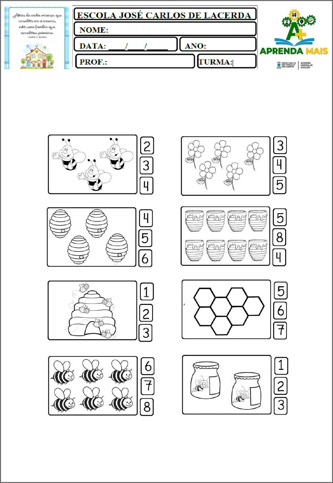 Atividade de Matemática 1) Pinte o numeral que indica a quantidade de cada conjunto. 2) Conte e anote. 3) Pinte a quantidade indicada.