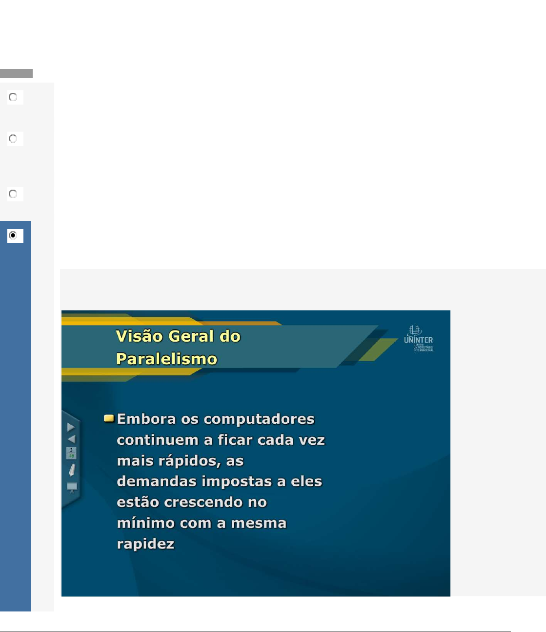 APOL Objetiva 2 - Arquitetura de Computadores Questão 1/10 - Arquitetura de Computadores Na Aula 6 foram apresentados os conceitos de paralelismo. Em uma visão geral, assinale a Alternativa que descreve CORRETAMENTE o paralelismo. Nota: 10.0 A Paralelismo é uma alternativa de comunicação utilizada por impressoras (paralelas) que estão sendo gradativamente substituídas pelas impressoras USB B Paralelismo nada mais é do que o uso de dois computadores idênticos, lado a lado (em paralelo) para executar determinadas tarefas complexas e diferentes, criadas e definidas exclusivamente pelo usuário, que deve ser apto ao uso. C Comunicação Paralela ou Serial são formas de computação primitivas e que funcionam muito bem, principalmente em ambientes corporativos de grande demanda. D Embora os computadores continuem a ficar cada vez mais rápidos, as demandas impostas a eles estão crescendo no mínimo com a mesma rapidez Você acertou! Slide 3/46 da Aula 6 Questão 2/10 - Arquitetura de Computadores Duas arqquiteturas de processadores são amplamente definidas e comparadas. São elas as arquiteturas CISC e RISC. Sobre elas é CORRETO afirmar: I. CISC - Computador com conjunto de instruções reduzido II. RISC - Conjunto de instruções grande, operações de tamanhos variáveis, com formatos complexos. Executa múltiplas operações quando uma única instrução é dada. III. RISC - Cada instrução executa apenas uma operação, todas do mesmo tamanho e com poucos formatos. Assinale a alternativa CORRETA Nota: 10.0 A Apenas a alternativa II é CORRETA B TODAS alternativas estão CORRETAS C As alternativas II e III estão CORRETAS D Apenas a alternativa III é CORRETA Você acertou! Slides 19 e 20 da Aula 2 RISC versus CISC CISC - (Complex Instruction Set Computer) Computador com conjunto de instruções complexo Conjunto de instruções grande, operações de tamanhos variáveis, com formatos complexos. Executa múltiplas operações quando uma única instrução é dada. RISC - (Reduced Instruction Set Computer) Computador com conjunto de instruções reduzido Simplifica as instruções para executar mais rapidamente. Cada instrução executa apenas uma operação, todas do mesmo tamanho e com poucos formatos. Operações aritméticas são executadas entre registradores. Questão 3/10 - Arquitetura de Computadores Nas definições da Álgebra de Boole apresentadas no material complementar de apoio didático pedagógico, sobre a Dualidade da Álgebra Booleana, é apresentado que "Existe um princípio especial na álgebra boleana denominado “princípio da dualidade”: Para uma equação boleana qualquer, se trocarmos as operações E (.) e operações OU (+) entre si assim como valores 0s e 1s entre si, obteremos uma equação igualmente válida. Considerando estas definições, assinale a Alternativa CORRETA que apresenta DUALIDADES válidas (corretas) Nota: 10.0 A A + 0 = A A . 1 = A A + 1 = 1 A . 0 = 0 A + A = A A . A = A Você acertou! Apresentado no Slide 23/26 do material Complementar de Apoio Didático Pedagógico da Aula 3 B A + 0 = 0 A . 1 = A A + 1 = A A . 0 = 0 A + A = 0 A . A = A C A + 0 = A A . 1 = A A + 1 = 1 A . 0 = A A + A = 0 A . A = A D A + 0 = 0 A . 1 = 1 A + 1 = 1 A . 0 = 0 A + A = A A . A = A Questão 4/10 - Arquitetura de Computadores A CPU (Unidade Central de Processamento) é um dos elementos fundamentais de qualquer sistema computacional, sendo composto por diversos circuitos internos. Uma parte da organização interna da CPU de Von Neumann é chamada de "caminho de dados". Sobre a composição do "caminho de dados" é correto afirmar que os elementos que o integram são: Nota: 0.0 A Registradores, ULA e dispositivos de E/S. B ULA, barramentos e dispositivos de E/S. C Registradores, ULA e memória principal. D Registradores, ULA e memória cache. E Registradores, ULA e barramentos. Correto! Conforme apresentado no livro base “Organização estruturada de computadores” – capítulo 2, pg 43, o caminho de dados é composto pelos registradores, ULA e barramentos. Questão 5/10 - Arquitetura de Computadores Na Aula 6, é apresentado/descrito sobre o Desempenho. Leia o fragmento de testo da Aula 6: "O ponto principal da construção de um computador paralelo é fazer com que ele execute mais rápido do que uma máquina com um único processador. Se ele não cumprir esse simples objetivo, não vale a pena o ter." Considerando o texto extraído dos Slides da Aula 6, os conteúdos apresentados nas Aulas e nos materias complementares de apoio didástico pedagógico, assinale a lternativa CORRETA sobre desempenho. Nota: 10.0 A Para mensurar (Medir) o desempenho são utilizadas as métricas de Hardware e Software Você acertou! Slide 19/22 do Hyperibook da Aula 6 B São utilizados programas aplicativos (Apps) que medem o desempenho da CPU C O Desempenho é medido pelo fabricante do procesador que informa aos clientes os testes de desempenho realizados D São comparados pelos fabricantes entre os processadores quais são mais velozes e quais mais lentos. Questão 6/10 - Arquitetura de Computadores Leio o fragmento de texto a seguir: "A operação dos computadores consiste em executar instruções sequenciais (uma após a outra)" (Slide 28/43 da Aula 4 - Arquitetura de Computadores) Assinale a alternativa CORRETA. Em quantas etapas a execução de instruções é subdividida: Nota: 10.0 A 5 B 4 C 7 Você acertou! Slides 19, 30 e 31/43 - Aula 4 D 6 Questão 7/10 - Arquitetura de Computadores Apresentada e definida na Aula 4 de Arquitura de Computadores, qual a parte da CPU (Central Processor Unit) que contém a ULA (Unidade Lógica Aritmética) suas entradas e suas saídas. Assinale a Alternativa CORRETA que apresenta esta parte da CPU Nota: 10.0 A Watchdog B ISA - Instruction Set Architecture C UC - Unidade de Controle D Caminho de Dados Você acertou! Slide 39/43 - Aula 4 - Arquitetura de Computadores Questão 8/10 - Arquitetura de Computadores Apresentado e Defi
