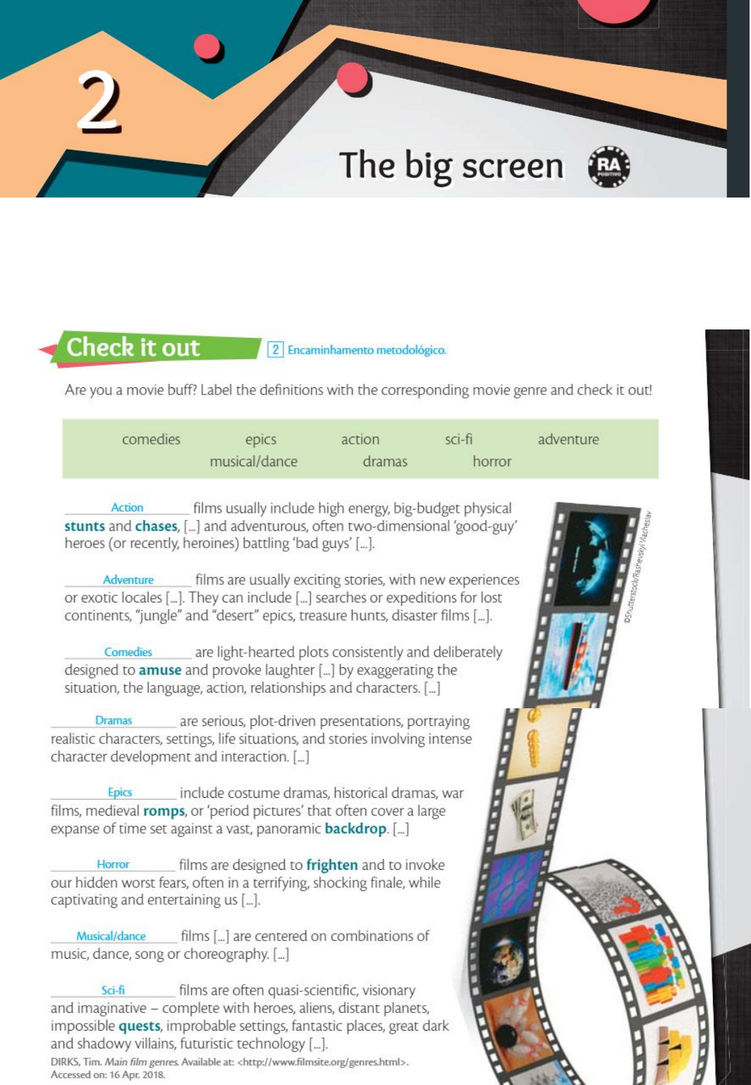 LIVRO DIDÁTICO LIVRO DE ATIVIDADES COMENTÁRIOS SOBRE QUESTÕES DO LIVRO DE ATIVIDADES DA UNIDADE THE BIG SCREEN