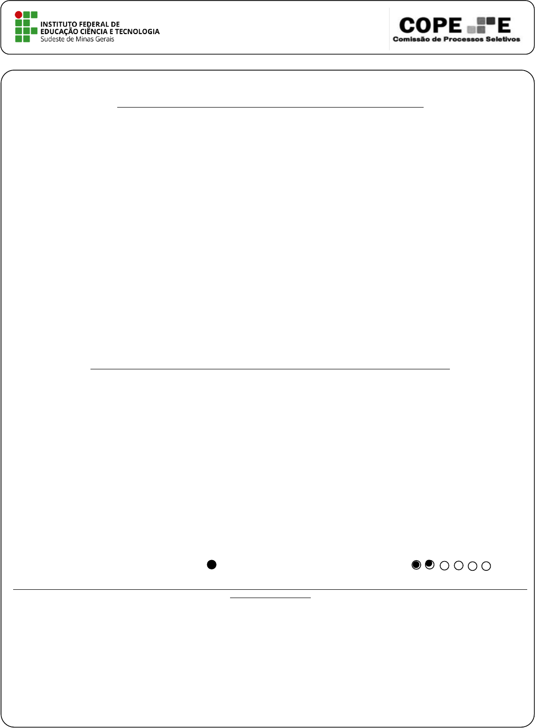 PROCESSO SELETIVO 2018/1 Curso Técnico Integrado TEMPO DE DURAÇÃO DA PROVA: 03 HORAS E 30 MINUTOS INSTRUÇÕES PARA A REALIZAÇÃO DA PROVA OBJETIVA 1. ABRA ESTE CADERNO DE PROVAS SOMENTE QUANDO AUTORIZADO. 2. Confira se sua prova corresponde à modalidade para a qual você se inscreveu. 3. Verifique se este Caderno de Provas contém 12 (doze) questões de Língua Portuguesa, 11 (onze) questões de Matemática, 12 (doze) questões de Ciências, 5 (cinco) questões de Geografia e 5 (cinco) questões de História, enumeradas de 01 a 45. Cada questão é constituída de cinco alternativas. Caso haja algum problema, solicite a substituição de seu Caderno de Provas. 4. O número de seu CPF, o curso, o turno e o Campus encontram-se no seu Comprovante Definitivo de Inscrição e no Identificador de sua carteira. 5. Em hipótese alguma, haverá substituição da Folha de Respostas. 6. Controle o tempo disponível para a resolução das questões e a marcação da Folha de Respostas. Não haverá tempo adicional. 7. Você só poderá deixar o local de prova após 1 hora do início da aplicação e somente poderá levar o Caderno de Provas após 2 horas do início da aplicação. 8. Comunique sempre aos fiscais qualquer irregularidade observada durante a realização das provas. Não sendo tomadas as devidas providências a respeito da sua reclamação, solicite a presença do (a) Coordenador (a) ou comunique-se com ele (a), na secretaria, tão logo termine a prova. 9. Os 3 últimos candidatos deverão permanecer na sala para entrega simultânea da Folha de Respostas e deverão assinar na folha de ocorrências. 10. Você será avisado quando restarem 30 minutos para o final da prova. INSTRUÇÕES PARA O PREENCHIMENTO DA FOLHA DE RESPOSTAS 1. Ao receber sua Folha de Respostas, verifique o seu nome, a modalidade, o Campus, o curso, o turno e o grupo de concorrência. Caso esteja incorreta alguma informação, comunique ao fiscal. 2. É obrigatória a assinatura do candidato na Folha de Respostas. 3. Ao receber a Folha de Respostas, assine-a imediatamente, não deixe para depois. É de responsabilidade do candidato essa assinatura. A COPESE não se responsabilizará por Folhas de Respostas não assinadas. 4. Não amasse, não dobre, não rasgue, não rasure a Folha de Respostas, nem use corretivo. 5. A marcação de mais de uma opção para uma mesma questão implica a anulação da questão. 6. Terminada a resolução da prova, preencha a Folha de Respostas com as suas opções, conforme instruções a seguir. A marcação das respostas deve OBRIGATORIAMENTE ser feita com caneta esferográfica com tinta azul ou preta. A letra correspondente à questão escolhida deve ser totalmente preenchida, evitando-se ultrapassar a linha que margeia a letra. A COPESE não se responsabiliza por problemas na leitura que advierem da marcação inadequada da Folha de Respostas ou da utilização de material não especificado para tal. 7. Em hipótese alguma, haverá substituição da Folha de Respostas. 8. Não deixe para preencher sua Folha de Respostas na última hora, pois não haverá tempo adicional para a realização dessa atividade. AO ASSINALAR SUAS RESPOSTAS, PREENCHA TOTALMENTE A LETRA CORRESPONDENTE A SUA RESPOSTA, NÃO FAÇA UM X OU QUALQUER OUTRA MARCA. FORMA CORRETA DE PREENCHIMENTO: NÃO PREENCHA ASSIM: NOTAS E RESULTADOS O gabarito, as notas e os resultados serão divulgados no sítio: <http://copese.ifsudestemg.edu.br>, respeitando-se o seguinte cronograma: Gabarito e provas: a partir das 16 horas do dia 20 de novembro de 2017. Notas da Prova Objetiva: a partir das 16 horas do dia 15 de dezembro de 2017. Resultado final: a partir das 16 horas do dia 22 de dezembro de 2017. x − * Instituto Federal de Educação, Ciência e Tecnologia Sudeste de Minas Gerais - COPESE Pag. 1 de 22 PROCESSO SELETIVO 2018/1 Curso Técnico Integrado LÍNGUA PORTUGUESA Leia a crônica Brincadeira para responder às questões de 01 a 03. Brincadeira Começou como uma brincadeira. Telefonou para um conhecido e disse: 1 - Eu sei de tudo. 2 Depois de um silêncio, o outro disse: 3 - Como é que você soube? 4 - Não interessa. Sei de tudo. 5 - Me faz um favor. Não espalha. 6 - Vou pensar. 7 - Por amor de Deus. 8 - Está bem. Mas olhe lá, hein? 9 Descobriu que tinha poder sobre as pessoas. 10 - Sei de tudo. 11 - Co-como? 12 - Sei de tudo. 13 - Tudo o quê? 14 - Você sabe. 15 - Mas é impossível. Como é que você descobriu? 16 A reação das pessoas variava. Algumas perguntavam em seguida: 17 - Alguém mais sabe? 18 - Outras se tornavam agressivas: 19 - Está bem, você sabe. E daí? 20 - Daí nada. Só queria que você soubesse que eu sei. 21 - Se você contar para alguém, eu... 22 - Depende de você. 23 - De mim, como? 24 - Se você andar na linha, eu não conto. 25 - Certo 26 Uma vez, parecia ter encontrado um inocente. 27 - Eu sei de tudo. 28 - Tudo o quê? 29 - Você sabe. 30 - Não sei. O que é que você sabe? 31 - Não se faça de inocente. 32 - Mas eu realmente não sei. 33 - Vem com essa. 34 - Você não sabe de nada. 35 - Ah, quer dizer que existe alguma coisa pra saber, mas eu é que não sei o que é?36 Instituto Federal de Educação, Ciência e Tecnologia Sudeste de Minas Gerais - COPESE Pag. 2 de 22 PROCESSO SELETIVO 2018/1 Curso Técnico Integrado - Não existe nada. 37 - Olha que eu vou espalhar... 38 - Pode espalhar que é mentira. 39 - Como é que você sabe o que eu vou espalhar? 40 - Qualquer coisa que você espalhar será mentira. 41 - Está bem. Vou espalhar. 42 Mas dali a pouco veio um telefonema. 43 - Escute. Estive pensando melhor. Não espalha nada sobre aquilo. 44 - Aquilo o quê? 45 - Você sabe. 46 Passou a ser temido e respeitado. Volta e meia alguém se aproximava dele e sussurrava: 47 - Você contou pra alguém? 48 - Ainda não. 49 - Puxa. Obrigado. 50 Com o tempo, ganhou uma reputação. Era de confiança. Um dia, foi procurado por um amigo com 51 uma oferta de emprego. O salário