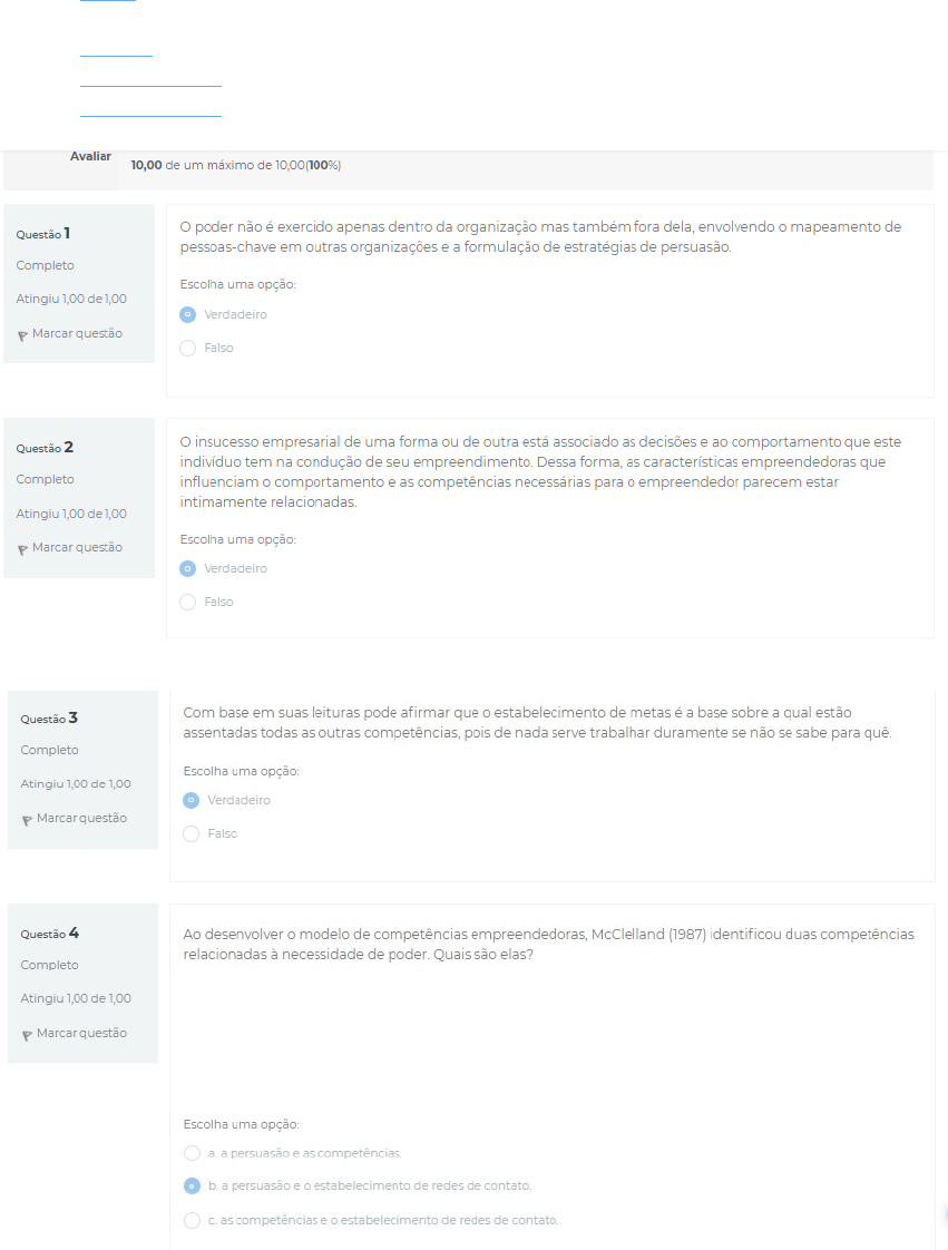 Empreendedorismo 1. Painel 2. Minhas Disciplinas 3. 15A124 4. Avaliação Final 5. Avaliação Final