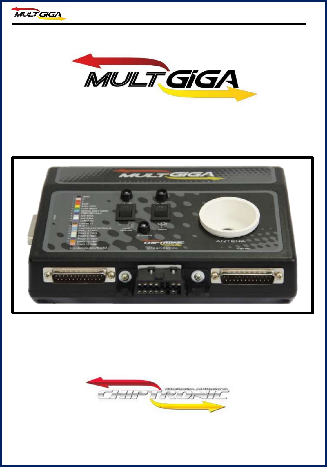 Manual de pinagem MULTGIGA 06/06/13 REV 03 Manual de pinagem MULTGIGA 06/06/13 REV 03 ÍNDICE: Introdução.................................................................................3 Sistema de injeção: VW VW – Pinagem da ECU 7.5.10..................................................4/5 VW – Pinagem da ECU IAAW 1AVP........................................6 VW – Pinagem da ECU IAW 4BV..............................................7 VW – Pinagem da ECU MP9.0....................................................8 VW – Pinagem da ECU 7.5.20.................................................9/10 VW – Pinagem da ECU 4GV......................................................11 VW – Pinagem da ECU 7.5.30....................................................12 Sistema de imobilizador: VW VW – Painel GOLF....................................................................13 VW – Painel GOL G4 ................................................................14 VW – Painel GOL G5.................................................................15 VW – Painel FOX–CROSSFOX–SPACEFOX.......................16 VW –Imobilizador IMMO1.......................................................17 Sistema de injeção: FIAT FIAT– Pinagem da ECU IAW 59FB / 4 AF.............................18 FIAT– Pinagem da ECU IAW 49FB / 59FB C/BC..................19 FIAT– Pinagem da ECU MT27E..............................................20 FIAT– Pinagem da ECU IAW 5NF...........................................21 FIAT– Pinagem da ECU ME 3.1...............................................22 FIAT– Pinagem da ECU ME 3.1 C/BC.....................................23 FIAT– Pinagem da ECU IAW 4GF / 4DF................................24 FIAT– Pinagem da ECU IAW 7GF...........................................25 FIAT– Pinagem da ECU IAW 1G7............................................26 Sistema de imobilizador: FIAT FIAT – BC Fiat............................................................................27 FIAT – Imobilizador code 1.......................................................28 FIAT – Imobilizador code 2.......................................................29 Sistema de injeção: GM GM– Pinagem da ECU M1.5.5..................................................30 GM– Pinagem da ECU M1.5.4..................................................31 Manual de pinagem MULTGIGA 06/06/13 REV 03 ÍNDICE: GM– Pinagem da ECU ME7.9.6...............................................32 GM– Pinagem da ECU ME7.9.9...............................................33 GM– Pinagem da ECU MULTEC H VHC..............................34 GM– Pinagem da ECU MULTEC HSFI 2.3............................35 Sistema de imobilizador: GM GM – Imobilizador OPEL 2.......................................................36 GM – Imobilizador OPEL 1.......................................................37 Sistema de injeção: FORD FORD– Pinagem da ECU EEC VI............................................38 FORD– Pinagem da ECU IAW 4AFR / 4CFR........................39 Sistema de imobilizador: FORD FORD – PATS 3.........................................................................40 FORD – Painel Ford…………...................................................41 FORD – Painel Ford…………...................................................42 Manual de pinagem MULTGIGA 06/06/13 REV 03 Introdução: O manual de pinagem do multgiga foi desenvolvido com intuito de auxiliar na ligação dos módulos em bancada; sendo o multgiga uma plataforma de alimentação e comunicação entre os módulos do veiculo. O sucesso dos procedimentos de resets, casamentos, geração de chaves e outros, dependem de alguns pré-requisitos, como: Transponders corretos, Função no equipamento de diagnostico, Kits em perfeito estado, ligações corretas. 3 Manual de pinagem MULTGIGA 06/06/13 REV 03 VW – Pinagem da ECU ME 7.5.10 Fox 1.6 - Crossfox 1.6 - Spacefox 1.6 2004-2006 DB25 Descrição ECU 1 GND 2/28 7 SISTEMA DE IMOBILIZADOR 29 11 LINHA 30 15 12 LINHA 15 27 14 LÂMPADA DE ANOMALIA 30 Pino 2/28 (ECU) Fio 1 (DB25) Pino 27 (ECU) Fio 12 (DB25) Pino 29 (ECU) Fio 7 (DB25) Pino 30 (ECU) Fio 14 (DB25) Pino 15 (ECU) Fio 11 (DB25) 4 Manual de pinagem MULTGIGA 06/06/13 REV 03 VW – Pinagem da ECU IAW 7.5.10 Golf 1.6 2001-2004 DB25 Descrição ECU 1 GND 2/28 5 CAN LOW 31 6 CAN HIGH 32 7 SISTEMA DE IMOBILIZADOR 29 11 LINHA 30 15 12 LINHA 15 27 Pino 2/28 (ECU) Fio 1 (DB25) Pino 27 (ECU) Fio 12 (DB25) Pino 29 (ECU) Fio 7 (DB25) Pino 31 (ECU) Fio 5 (DB25) Pino 15 (ECU) Fio 11 (DB25) Pino 32 (ECU) Fio 6 (DB25) 5 Manual de pinagem MULTGIGA 06/06/13 REV 03 VW – Pinagem da ECU IAW 1AVP Gol MI 1.6 e 1.8 - Parati MI 1.6, 1.8 e 2.0 – Polo classic MI 1.8 – Quantum MI 1.8 e 2.0 Santana MI 1.8 e 2.0 – Saveiro MI 1.6 e 1.8. DB25 Descrição ECU 1 GND 1 7 SISTEMA DE IMOBILIZADOR 37 11 LINHA 30 23 12 LINHA 15 31 6 Pino 23 (ECU) Fio 11 (DB25) Pino 37 (ECU) Fio 7 (DB25) Pino 31 (ECU) Fio12 (DB25) Pino 1 (ECU) Fio 1 (DB25) Manual de pinagem MULTGIGA 06/06/13 REV 03 VW – Pinagem da ECU IAW 4BV Fox 1.0 – Gol 1.0 2003 DB25 Descrição ECU 1 GND 2/27/28 7 SISTEMA DE IMOBILIZADOR 41 11 LINHA 30 29 12 LINHA 15 1 14 LÂMPADA DE ANOMALIAS 14 7 Pino 1 (ECU) Fio 12 (DB25) Pino 2/27/28 (ECU) Fio 1 (DB25) Pino 14 (ECU) Fio 14 (DB25) Pino 41 (ECU) Fio 7 (DB25) Pino 29 (ECU) Fio 11 (DB25) Manual de pinagem MULTGIGA 06/06/13 REV 03 VW – Pinagem da ECU IAW MP9.0 / IAW 1AVI / AVS Gol 1.0 1997-2003 - Kombi 1.6 1997 (mp9.0) Gol 1.0 – Parati 1.0 (1avi e 1avs) *OBS: Na central IAW 1AVI ligar o pino 29 da ecu no pino 7 do DB25(sistema de imobilizador) DB25 Descrição ECU 1 GND 1 2 LINHA K 29* 11 LINHA 30 21 12 LINHA 15 23 8 Pino 1 (ECU) Fio 1 (DB25) Pino 29 (ECU) Fio 2 (DB25) Pino 21 (ECU) Fio 11 (DB25) Pino 23 (ECU) Fio 12 (DB25) Manual de pinagem MULTGIGA 06/06/13 REV 03 VW – Pinagem da ECU IAW 7.5.20 Fox 1.6 - Crossfox 1.6 - Spacefox 1.6 2007-2009 / Gol 