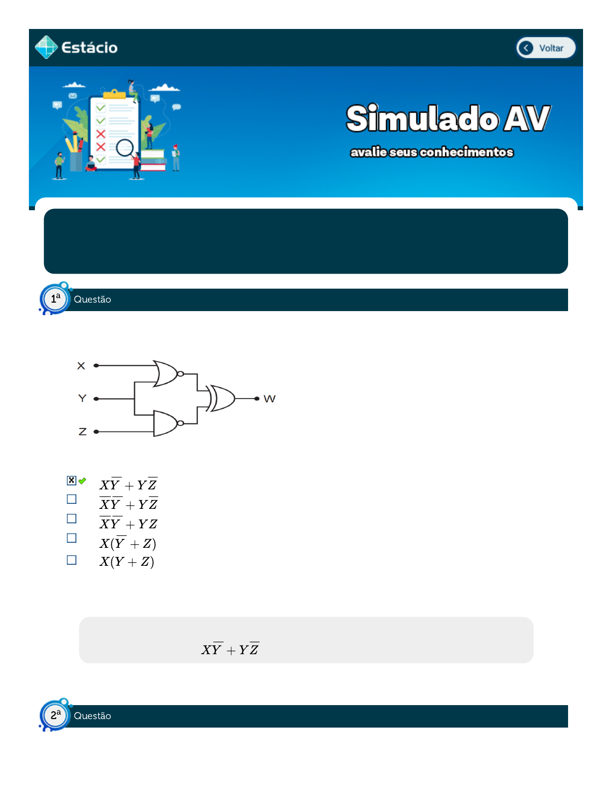 A figura ilustra o circuito digital que gera o sinal W a partir dos sinais binários X, Y e Z. A