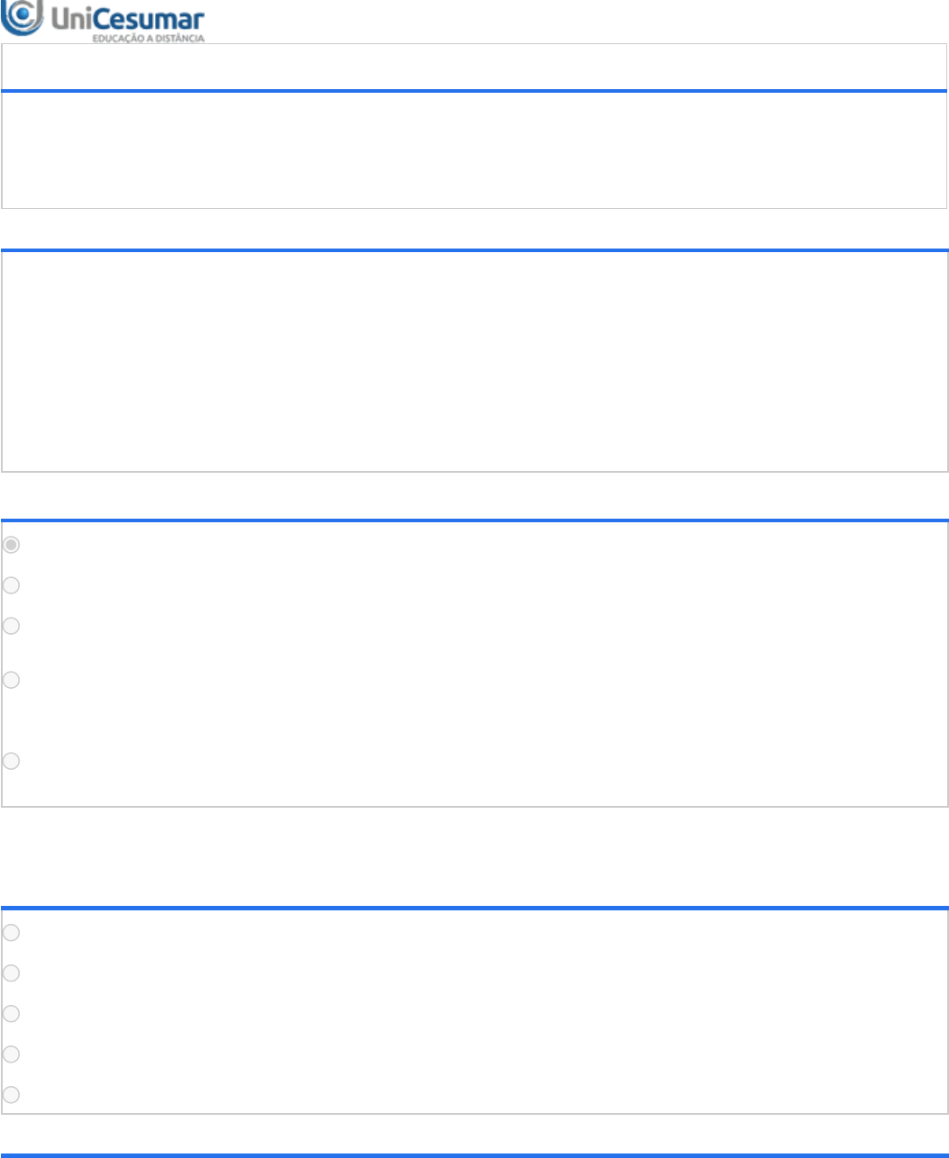 ATIVIDADE 2 - ADM (M.N)- GESTÃO DA INOVAÇÃO E TECNOLOGIA - 2021A Período:01/03/2021 08:00 a 19/03/2021 23:59 (Horário de Brasília) Status:ENCERRADO Nota máxima:1,50 Gabarito:Gabarito será liberado no dia 20/03/2021 00:00 (Horário de Brasília) Nota obtida:1,05 1ª QUESTÃO A inovação precisa ser um fator determinante para cada tomada de decisão estratégica. Portanto, ela precisa nortear a transformação digital e o capital humano para que a empresa tenha uma boa vantagem competitiva. Disponível em: <https://inspiredigital.com.br/inovacao-transformacao-digital-capital-humano-entenda-a- relacao-entre-esses-3-conceitos/>. Acesso em: 22 jan. 2021. (Adaptado) A partir do exposto e, sobre inovação e sua relação com o capital humano, é possível afirmar que: ALTERNATIVAS Deve-se criar uma cultura que fortaleça os valores individuais de cada funcionário. O trabalho em equipe, enquanto cultura, deve ser evitado quando se fala em inovação. A cultura organizacional voltada para a inovação por si só garante o sucesso da inovação. O sucesso da inovação depende mais da tecnologia disponível do que da disposição e comprometimento das pessoas em realizar o que foi proposto. A cultura organizacional deve, especialmente, no que se refere ao capital humano, propiciar um ambiente que favoreça a motivação do indivíduo em colocar em prática as ideias propostas, porém, caso ele não esteja disposto, nada acontece. Atenção! Questão anulada. ALTERNATIVAS I e II, apenas. II e III, apenas. I, III e IV, apenas. II, III e IV, apenas. I, II, III e IV. 3ª QUESTÃO Quase todas as empresas, hoje, sejam elas grandes, médias ou pequenas, estão de olho em termos como inovação e disrupção. Estar atento a isso é, sem dúvidas, condição necessária para que essas empresas se mantenham relevantes. O problema, contudo, é que boa parte das pessoas e empresas pensam que “inovação” e “tecnologia” são a mesma coisa e não são. Disponível em: <https://escolaconquer.com.br/inovacao-e-sobre-pessoas-nao-sobre-tecnologia/>. Acesso em: 23 jan. 2021. (Adaptado) Considerando o exposto e os estudos sobre conceitos e importância da inovação e tecnologia para manutenção das empresas no mercado, pode-se afirmar que: ALTERNATIVAS Inovação consiste exclusivamente em apostar na invenção tecnológica e criação de um novo produto. Investimento em tecnologia é o ponto chave para o sucesso de uma organização, especialmente quando o assunto é inovação. O desenvolvimento de uma cultura de inovação requer intensa valorização do capital tangível que compõe o contexto organizacional. Promover uma cultura organizacional para promoção da inovação requer a valorização das pessoas, pois são elas que possuem capacidade para evoluir e inovar. A cultura organizacional voltada para a motivação das pessoas impacta de forma negativa quando se pretende inovar, pois as pessoas são resistentes às mudanças. 4ª QUESTÃO No período de 2015 a 2017, 33,6% de um universo de 116.962 empresas brasileiras com dez ou mais trabalhadores fizeram algum tipo de inovação em produtos ou processos. Essa taxa de inovação ficou 2,4 pontos percentuais abaixo da apresentada no triênio anterior de 2012-2014, quando alcançou 36%. As informações constam da Pesquisa de Inovação (Pintec) 2017, que o Instituto Brasileiro de Geografia e Estatística (IBGE) divulgou no dia 16 de abril de 2020 com dados sobre o esforço de empresas dos setores da indústria, serviços e eletricidade e gás - entre 2015 e 2017 - para a inovação de produtos e processos, conforme gráficos abaixo. Disponível em: <https://agenciabrasil.ebc.com.br/economia/noticia/2020-04/ibge-336-das-empresas- brasileiras-sao-inovadoras>. Acesso em: 23 jan. 2021. Fonte: Disponível em: <https://biblioteca.ibge.gov.br/visualizacao/livros/liv101706_informativo.pdf>. Acesso em: 23 jan. 2021. A partir do exposto e considerando os estudos sobre os tipos de inovação, avalie as afirmações a seguir. I. Os dados apresentados mostram que as organizações brasileiras investem mais em inovação de processo. II. Os dados apresentados mostram que as organizações brasileiras investem mais em inovação de produto. III. Os dados apresentados revelam que as organizações brasileiras não investem em inovação de paradigma e de posição. IV. Os dados apresentados revelam que no triênio 2015-2017 os investimentos em inovação de processo representaram um percentual de 9,7% a mais do que na inovação em produto. ALTERNATIVAS I e II, apenas. II e III, apenas. I, III e IV, apenas. II, III e IV, apenas. I, II, III e IV. 5ª QUESTÃO A evolução do uso da tecnologia aconteceu em ritmo acelerado nos últimos anos. Quando houve a virada do milênio, pouca gente imaginava que em apenas duas décadas o mundo iria evoluir tanto. A internet se popularizou a ponto de ficar acessível para boa parte da população. Biometria, reconhecimento facial, Internet das Coisas, Inteligência Artificial e outras tecnologias deixaram de ser "coisas futuristas" e passaram a fazer parte no nosso dia a dia. Nesse contexto, compreender o conceito de tecnologia é fundamental para que as empresas possam utilizá-la corretamente. Disponível em: <https://blog.sled.com.br/evolucao-do-uso-da-tecnologia-ao-longo-dos-ultimos-anos/>. Acesso em: 23 jan. 2021. (Adaptado) Considerando o exposto e os estudos sobre tecnologia, pode-se afirmar que seu real significado está associado: ALTERNATIVAS ao conjunto de conhecimentos e serviços ofertados pelo setor de informática. ao uso de aparelhos eletrônicos que permite a compra de produtos e serviços via internet. ao uso de ferramentas computacionais por organizações para produção de bens ou serviços. ao conjunto de conhecimentos da ciência e das engenharias para resolução de problemas. ao conjunto de conhecimentos, ferramentas e técnicas da ciência e da experiência prática que permitem a produção d