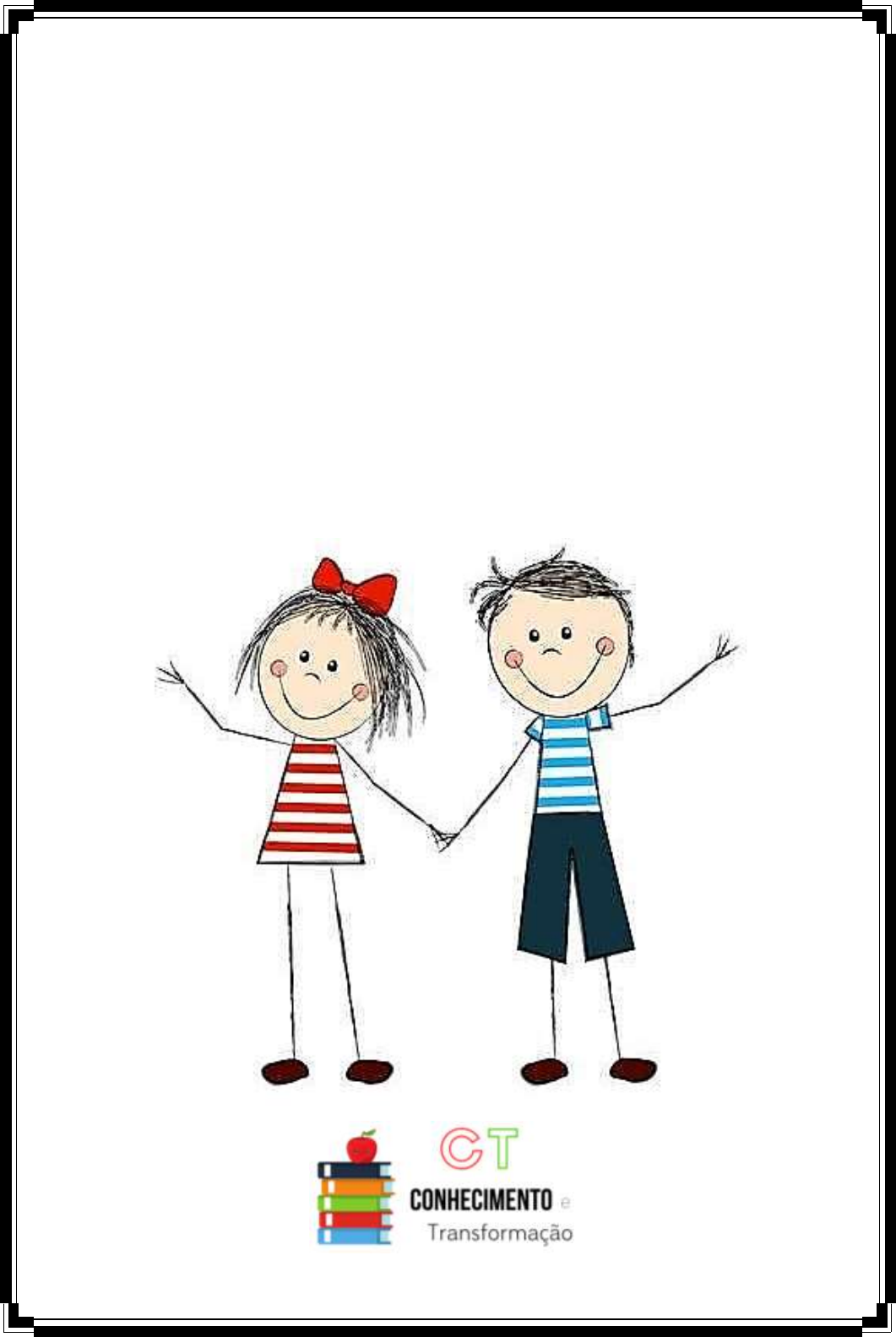 CONHECIMENTO E TRANSFORMAÇÃO: https://www.facebook.com/mayrafreitascarvalho CADERNO LÍNGUA PORTUGUESA BNCC 3º ano CONHECIMENTO E TRANSFORMAÇÃO: https://www.facebook.com/mayrafreitascarvalho (EF15LP14) Construir o sentido de histórias em quadrinhos e tirinhas, relacionando imagens e palavras e interpretando recursos gráficos (tipos de balões, de letras, onomatopeias). A tirinha contém crítica aos valores sociais; provoca efeitos de humor; organiza-se em tira de poucos quadrinhos; é publicada em jornais e revistas. Leia o texto com atenção: COMPREENDENDO O TEXTO 1- A intenção da mãe ao mandar Antoninho pular na água era: ( ) Afastá-lo do predador ( ) Escondê-lo do macaco. ( ) Brincar com o filho. ( ) Dar um banho no filho. 2- O traço de humor percebido no texto é o fato de: ( ) A mãe ficar com medo de um predador. ( ) O macaco estar escondido de Antoninho. ( ) A mãe enganar seu filho para dar-lhe banho. ( ) O Antoninho cair dentro da água de repente. CONHECIMENTO E TRANSFORMAÇÃO: https://www.facebook.com/mayrafreitascarvalho Leia o texto com atenção: COMPREENDENDO O TEXTO 1- O Menino Maluquinho disse “OBA!”, no primeiro quadrinho. A forma como foi registrada sua fala significa que ele está: ( ) Sussurrando ( ) Chorando ( ) Gritando 2- Os elementos que caracterizam o humor na tirinha são: ( ) As exclamações do Maluquinho “OBA! e “IUPI!...” ( ) A expressão e os gestos de alegria da mãe. ( ) A fala da mãe e a onomatopeia “CRAC!” e “IUPI!” ( ) A fala e a expressão facial do médico. 3- Da leitura da tirinha do Maluquinho, pode-se entender que: ( ) É a primeira vez que Maluquinho foi engessado. ( ) A mãe não se preocupa com o comportamento do menino. ( ) O menino é agitado e costuma quebrar coisas. ( ) O médico não tratou direito do Maluquinho. CONHECIMENTO E TRANSFORMAÇÃO: https://www.facebook.com/mayrafreitascarvalho Leia o texto com atenção: COMPREENDENDO O TEXTO 1- A expressão “CHUAC!” reproduz: ( ) O som do beijo da personagem no sapo. ( ) O susto que o sapo levou ao ser beijado. ( ) O surgimento de uma ideia repentina. ( ) O desejo realizado por um príncipe. 2- No último quadrinho, a fisionomia do sapo mais os corações ao seu redor revelam: ( ) Medo em relação à atitude da personagem Mônica. ( ) Reconhecimento do assombro vivido pela personagem Mônica. ( ) Encantamento do personagem em relação à transformação ocorrida. ( ) Curiosidade do personagem sobre a presença da “fada madrinha”. CONHECIMENTO E TRANSFORMAÇÃO: https://www.facebook.com/mayrafreitascarvalho (EF15LP16) Ler e compreender, em colaboração com os colegas e com a ajuda do professor e, mais tarde, de maneira autônoma, textos narrativos de maior porte como contos (populares, de fadas, acumulativos, de assombração etc.) e crônicas. O Conto de fadas é uma narrativa que cria um universo de seres, de fantasia ou acontecimentos. Apresenta um narrador, personagens, ponto de vista e enredo. CONHECIMENTO E TRANSFORMAÇÃO: https://www.facebook.com/mayrafreitascarvalho CONHECIMENTO E TRANSFORMAÇÃO: https://www.facebook.com/mayrafreitascarvalho Responda: 1- Esse texto é: ( ) Notícia ( ) Fábula ( ) Conto de fadas 2- As irmãs zombaram de Cinderela pois: ( ) Ela estava muito gorda. ( ) Ela não poderia ir ao baile. ( ) Ela andava desajeitada. 3- O príncipe dançou a noite toda com Cinderela, mas não chegou a saber seu nome ou seu endereço. Por que isso aconteceu? ______________________________________________ ______________________________________________ _____________________________________ 4- O objetivo do príncipe ao ordenar que todas as moças provassem o sapatinho de cristal foi: ( ) De conhecer todas as moças e escolher a mais bonita. ( ) Encontrar as irmãs de Cinderela para se casar com uma. ( ) Encontrar a moça com quem ele dançou no baile. 5- A expressão “Certo dia”, indica: ( ) Modo ( ) Tempo ( ) Lugar ( ) Causa 6- Circule de azul no texto, a expressão “Certo dia”. CONHECIMENTO E TRANSFORMAÇÃO: https://www.facebook.com/mayrafreitascarvalho 7- Marque abaixo os cenários que não pertencem a história de Cinderela: ( ) Casa ( ) Jardim de casa ( ) Cinema ( ) Palácio Real ( ) Floresta encantada ( ) Escola 8- Observe o quadro abaixo e circule os personagens que aparecem no conto: 9- Que objeto usado pela fada madrinha tem poderes mágicos? 10 – Leia o início do texto: a) Quantas palavras tem nesse trecho do texto? b) As palavras destacadas são: ( ) Verbos ( ) Adjetivos ( ) Pronomes c) Em sua opinião, do que as invejosas filhas da madrasta tinham inveja? Conte para os seus colegas. BRUXA PRÍNCIPE PRINCESAS MADRASTA CINDERELA LOBO CAMPONÊS IRMÃS MENDIGO FADA MADRINHA CRIADO PORQUINHOS ALADIM Esta é a história da pobre Cinderela, uma moça bondosa e alegre que era obrigada pela malvada madrasta e suas duas invejosas filhas trabalhar até cansar. CONHECIMENTO E TRANSFORMAÇÃO: https://www.facebook.com/mayrafreitascarvalho (EF15LP17) Apreciar poemas visuais e concretos, observando efeitos de sentido criados pelo formato do texto na página, distribuição e diagramação das letras, pelas ilustrações e por outros efeitos visuais. POEMA é um gênero literário que sugere emoções por meio de uma linguagem que se combinam sons, ritmos e significados. É escrito em versos estruturados e de forma harmoniosa. Brincar é muito gostoso! Leia o poema abaixo de Olavo Bilac e fique sabendo, o que fizeram duas meninas para que a brincadeira delas não fosse tão gostosa A BONECA CONHECIMENTO E TRANSFORMAÇÃO: https://www.facebook.com/mayrafreitascarvalho Agora responda: 1- Qual foi a causa da briga entre as meninas? ____________________________________________ ____________________________________________ 2- Explique o que o autor quis dizer com: “Com que ainda há pouco brincavam”: ____________________________________________ ____________________________________________ 3- Na briga entre as meninas, a coitad