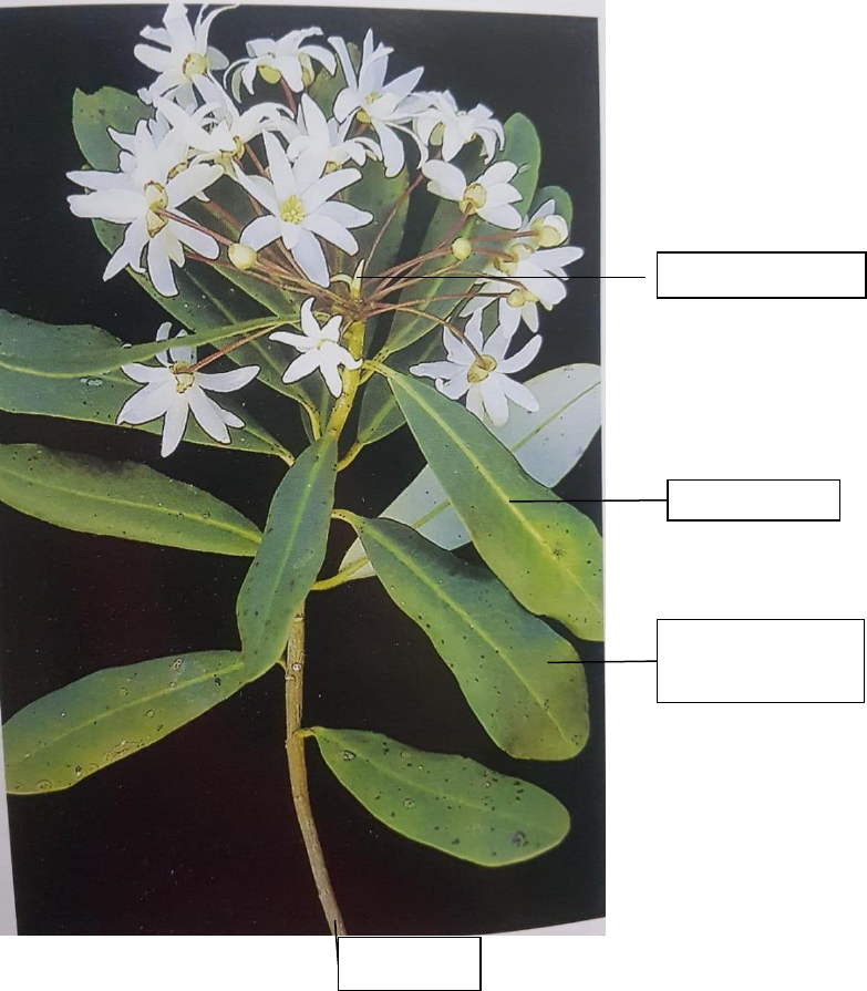 UNIVERSIDADE ESTADUAL DA PARAÍBA CENTRO DE CIÊNCIAS AGRÁRIAS E AMBIENTAIS CURSO: AGROECOLOGIA COMPONENTE: MORFOLOGIA E SISTEMÁTICA VEGETAL PROFESSORA: CAMILA AZEVEDO ALUNO (A): Thatiane Lourenço da Silva ATIVIDADE – MORFOLOGIA DA FOLHA E DA FLOR 1. Avalie a imagem abaixo e responda as seguintes questões referentes à morfologia foliar: Pencíolo Limbo ou lâmina Folíolos Caule 2. Avalie a imagem abaixo e responda as seguintes questões referentes à morfofologia floral: a) Indique com uma seta todas as partes que constituem a folha (visíveis na imagem). b) Descreva morfologicamente a folha da imagem com todas as classificações indicadas no ROTEIRO DESCRITIVO. Se não conseguir classificar alguma característica pela imagem, justifique o motivo. Classificação quanto à divisão do limbo: paripenada alterna Classificação quanto à filotaxia: alterna espiralada Classificação quanto à presença de pecíolo: peciolada Classificação quanto ao tipo de estípulas: não possui Classificação quanto à nervação: uninevéas Classificação quanto à consistência: não é possível identificar sem tocar na folha Classificação quanto ao indumento: glaba Classificação quanto à superfície: lisa Classificação quanto à forma: lancelada Classificação quanto ao bordo: inteiro Classificação quanto ao ápice: arredondado Classificação quanto à base: cuneada Classificação quanto à presença de folhas modificadas: não é possível identificar na imagem. a) Indique com uma seta as estruturas estéreis e de reprodução que constituem a flor (visíveis nas imagens). b) Descreva morfologicamente a inflorescência da imagem com todas as classificações indicadas no ROTEIRO DESCRITIVO. Se não conseguir classificar alguma característica pela imagem, justifique o motivo. Classificação quanto ao grupo: agrupada Classificação quanto a posição: terminal ou apical Classificação quanto ao tipo: racemosa - cacho c) Descreva morfologicamente a flor da imagem com todas as classificações indicadas no ROTEIRO DESCRITIVO. Se não conseguir classificar alguma característica pela imagem, justifique o motivo. ESTRUTURA GERAL Classificação quanto à presença de pedúnculo: pedunculada Classificação quanto à disposição das peças florais: cíclica Classificação quanto ao sexo: hermafrodita Classificação quanto ao n° de peças do perianto: diclamídea Classificação quanto à semelhança das peças florais: heteroclamídea Classificação quanto à presença de estandarte: não possui Classificação quanto à prefloração: não é possível identificar a posição das pétalas umas sobre as outras no botão floral CÁLICE (sépalas) Classificação quanto à cor: rosa Classificação quanto à soldadura: gamossépalo Classificação quanto ao número: não é possível contar o número de sépalas Classificação quanto à presença de epicálice: não possui COROLA (pétalas) Classificação quanto à cor: rosa Classificação quanto à soldadura: gamopétala Classificação quanto ao número: pentâmera Classificação quanto à simetria: zigomorfa ANDROCEU (parte masculina da flor) Classificação quanto ao tamanho relativo dos estames: didínamo Classificação quanto à soldadura dos estames: dialistêmones Classificação quanto à inserção da antera no filete: apifixa Classificação quanto ao tipo de abertura das anteras: não é possível observar como se deu a abertura das anteras Classificação quanto à proporção entre n° de estames e pétalas: oligostêmones GINECEU (parte feminina da flor) Classificação quanto à soldadura dos carpelos: ovário simples Classificação quanto à inserção do estilete: Terminal Classificação quanto ao número de carpelos: não é possível identificar na imagem Classificação quanto ao número de lóculos no ovário: não é possível identificar na imagem Classificação quanto à posição do ovário: ínfero Classificação quanto ao hipanto: flor epíginas Classificação quanto ao tipo de placentação: central