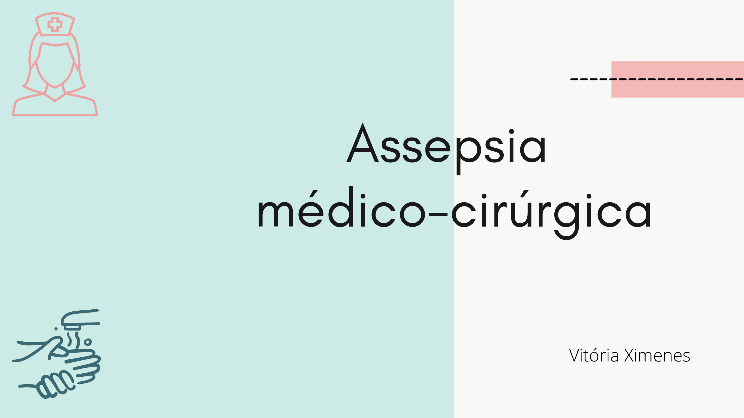 Assepsia médico-cirúrgica Vitória Ximenes Assepsia: Conjunto de medidas utilizadas para reduzir o n° de microrganismos e impedir sua penetração no ambiente que não os tem. Assepsia cirúgica: Usada para impedir a penetração de germes em locais que não os contenham. Princípios da assepsia cirúrgica Um objeto estéril permanece estéril somente quando tocado por outro objeto estéril. Somente objetos estéreis podem ser colocados sobre um campo estéril. Um objeto ou campo estéril fora do raio de visão ou segurado abaixo da cintura da pessoa está contaminado. Objeto ou campo estéril torna-se contaminado por exposição prolongada ao ar. Extremidades de um campo ou recipiente estéril são consideradas contaminadas. Destruição de MO (microorganismos) existentes nas camadas superficiais ou profundas da pele, a partir do uso de um agente germicida . Remoção de MO patogênicos na forma vegetativa presentes em objetos ou superfícies contaminadas com matéria orgânica. Degermação Remoção ou redução das bactérias da pele. Medidas antissépticas Antissepsia Descontaminação Processamento de artigos Artigo é o material utilizado nas assistência à saúde. Artigo crítico: Artigo semi- crítico: Artigo não crítico: - penetração através da pele e mucosa adjacente; - esterilização; - agulhas, cateter, etc. - pele íntegra, mas não com mucosas; -limpeza ou desinfecção de baixo ou médio nível; - roupas, aparelhos de PA, etc - pele não íntegra e mucosa íntegra; - desinfecção; - equipamento respiratório, laringoscópio,etc Manual: ação física, utilizando água, detergente, escova de cerdas. Automatizada: máquina automatizada, que remove sujidade por ação física e química. Ex. lavadoras Remoção de sujidade e detritos, reduzindo assim a população microbiana. Limpeza Desinfecção Eliminação ou destruição de todos os MO na forma vegetativa, patogênico ou não, presentes em artigos ou objetos inanimados. Física: utilizado vapor saturado sob pressão, para artigos que não são sensíveis ao calor. Utilizado autoclave (mais seguro). Química: para materiais sensíveis ao calor. Utilizado a esterilização por plasma de peróxido de hidrogênio - Sterrad. Processo pelo qual todos os MO são destruídos a tal ponto que sua probabilidade de sobrevivência é menor que 1 para 1.000.000. Esterilização Manuseio e cuidado com perfurocortantes Agulhas, lâminas de bisturi, ampolas, fios cirúrgicos com agulhas são alguns exemplos de perfurocortantes. Máxima atenção; Não reencapar agulhas; Deve ser desprezado em um recipiente apropriado e resistente; Não deve ser preenchido acima de 2/3 de sua capacidade total; Lavagem das mãos; Uso de agulha estéril; Seringa descartável para cada injeção; De acordo com manuais do Ministério da Saúde, não há recomendação de utilização de luvas. Princípios básicos para preparação e administração de medicamentos parenterais: Práticas Seguras de Injeção microbiota residente; microbiota transitória; microbiota infecciosa; remoção de sujidade, suor, oleosidade, microbiota da pele, interrompendo assim a transmissão de infecção. É a medida individual mais simples de prevenir a propagação de infecções; As mãos constituem a principal via de transmissão de MO durante a assistência de saúde. Para que higienizar? Higienização das maõs Técnica de Higienização das Mãos 1 3 4 5 6 7 8 9 10 11 2 levantamento de peso, repetição de movimentos, postura inadequada, entre outros. Qualquer fator que possa interferir nas características psicofisiológicas do trabalhador. Biossegurança Controle e minimização de riscos advindos da prática de diferentes tecnologias. Risco ergonômico Risco físico Frio, calor, ruído, radiação, etc. São as várias formas de energia que o trabalhador está exposto. Risco químico Risco biológico poeira, fumaça, vapor. Substâncias, compostos ou produtos que possam penetrar no organismo do trabalhador, por via respiratória, absorção ou contato. São bactérias, vírus, fungos e parasitos. Obrigada!!!