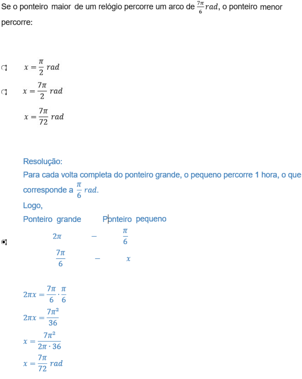 Questão 1/10 - Pré-Cálculo Nota: 10.0 A B C Você acertou! D Questão 2/10 - Pré-Cálculo Nota: 10.0 A x = 200° B x = 144° Você acertou! C x = 32° D x = 120° Questão 3/10 - Pré-Cálculo Classifique, em relação aos lados, o triângulo formado pelos lados de medidas 12cm, 15cm e 20cm. Nota: 10.0 A Triangulo retângulo B Triângulo equilátero C Triângulo escaleno Você acertou! D Triângulo isósceles Questão 4/10 - Pré-Cálculo Nota: 10.0 A 60° B 120° Você acertou! C 90º D 240º Questão 5/10 - Pré-Cálculo Nota: 0.0 A B C D Questão 6/10 - Pré-Cálculo Nota: 10.0 A Você acertou! B C D Questão 7/10 - Pré-Cálculo Nota: 10.0 A x = 30° B x = 60° C x = 45º Você acertou! D x = 90° Questão 8/10 - Pré-Cálculo Transforme 144° em radianos: Nota: 0.0 A 4π/54π/5 B 3π/53π/5 C 4π/34π/3 D π/3π/3 Questão 9/10 - Pré-Cálculo Classifique, em relação aos lados, o triângulo formado pelos lados de medidas 12cm, 16cm e 20cm. Nota: 10.0 A Triângulo agudo B Triângulo equilátero C Triangulo isósceles D Triângulo retângulo escaleno Você acertou! Questão 10/10 - Pré-Cálculo Qual é o ângulo agudo formado entre os ponteiros do relógio quando é marcada a hora 13h e 15 minutos? Nota: 10.0 A 52,5° Você acertou! B 30° C 45° D 0º Questão 1/10 - Pré-Cálculo Qual é o ângulo agudo formado entre os ponteiros do relógio quando é marcada a hora 13h e 15 minutos? Nota: 10.0 A 52,5° Você acertou! B 30° C 45° D 0º Questão 2/10 - Pré-Cálculo Classifique, em relação aos lados, o triângulo formado pelos lados de medidas 12cm, 15cm e 20cm. Nota: 10.0 A Triangulo retângulo B Triângulo equilátero C Triângulo escaleno Você acertou! D Triângulo isósceles Questão 3/10 - Pré-Cálculo Classifique, em relação aos lados, o triângulo formado pelos lados de medidas 12cm, 16cm e 20cm. Nota: 10.0 A Triângulo agudo B Triângulo equilátero C Triangulo isósceles D Triângulo retângulo escaleno Você acertou! Questão 4/10 - Pré-Cálculo Nota: 10.0 A x = 200° B x = 144° Você acertou! C x = 32° D x = 120° Questão 5/10 - Pré-Cálculo Nota: 10.0 A 60° B 120° Você acertou! C 90º D 240º Questão 6/10 - Pré-Cálculo Nota: 10.0 A B C Você acertou! D Questão 7/10 - Pré-Cálculo Nota: 10.0 A x = 30° B x = 60° C x = 45º Você acertou! D x = 90° Questão 8/10 - Pré-Cálculo Nota: 10.0 A Você acertou! B C D Questão 9/10 - Pré-Cálculo Nota: 10.0 A Você acertou! B C D Questão 10/10 - Pré-Cálculo Transforme 144° em radianos: Nota: 0.0 A 4π/54π/5 B 3π/53π/5 C 4π/34π/3 D π/3π/3 Questão 1/10 - Pré-Cálculo Nota: 10.0 A 60º B 90º C 36º D 72º Você acertou! Questão 2/10 - Pré-Cálculo Nota: 10.0 A x = 200° B x = 144° Você acertou! C x = 32° D x = 120° Questão 3/10 - Pré-Cálculo Nota: 10.0 A Você acertou! B C D Questão 4/10 - Pré-Cálculo Nota: 10.0 A B C Você acertou! D Questão 5/10 - Pré-Cálculo Nota: 10.0 A x = 30° B x = 60° C x = 45º Você acertou! D x = 90° Questão 6/10 - Pré-Cálculo Nota: 10.0 A 60° B 120° Você acertou! C 90º D 240º Questão 7/10 - Pré-Cálculo Qual é o ângulo agudo formado entre os ponteiros do relógio quando é marcada a hora 13h e 15 minutos? Nota: 10.0 A 52,5° Você acertou! B 30° C 45° D 0º Questão 8/10 - Pré-Cálculo Nota: 10.0 A Você acertou! B C D Questão 9/10 - Pré-Cálculo Transforme 144° em radianos: Nota: 10.0 A 4π/54π/5 Você acertou! B 3π/53π/5 C 4π/34π/3 D π/3π/3 Questão 10/10 - Pré-Cálculo Classifique, em relação aos lados, o triângulo formado pelos lados de medidas 12cm, 15cm e 20cm. Nota: 10.0 A Triangulo retângulo B Triângulo equilátero C Triângulo escaleno Você acertou! D Triângulo isósceles