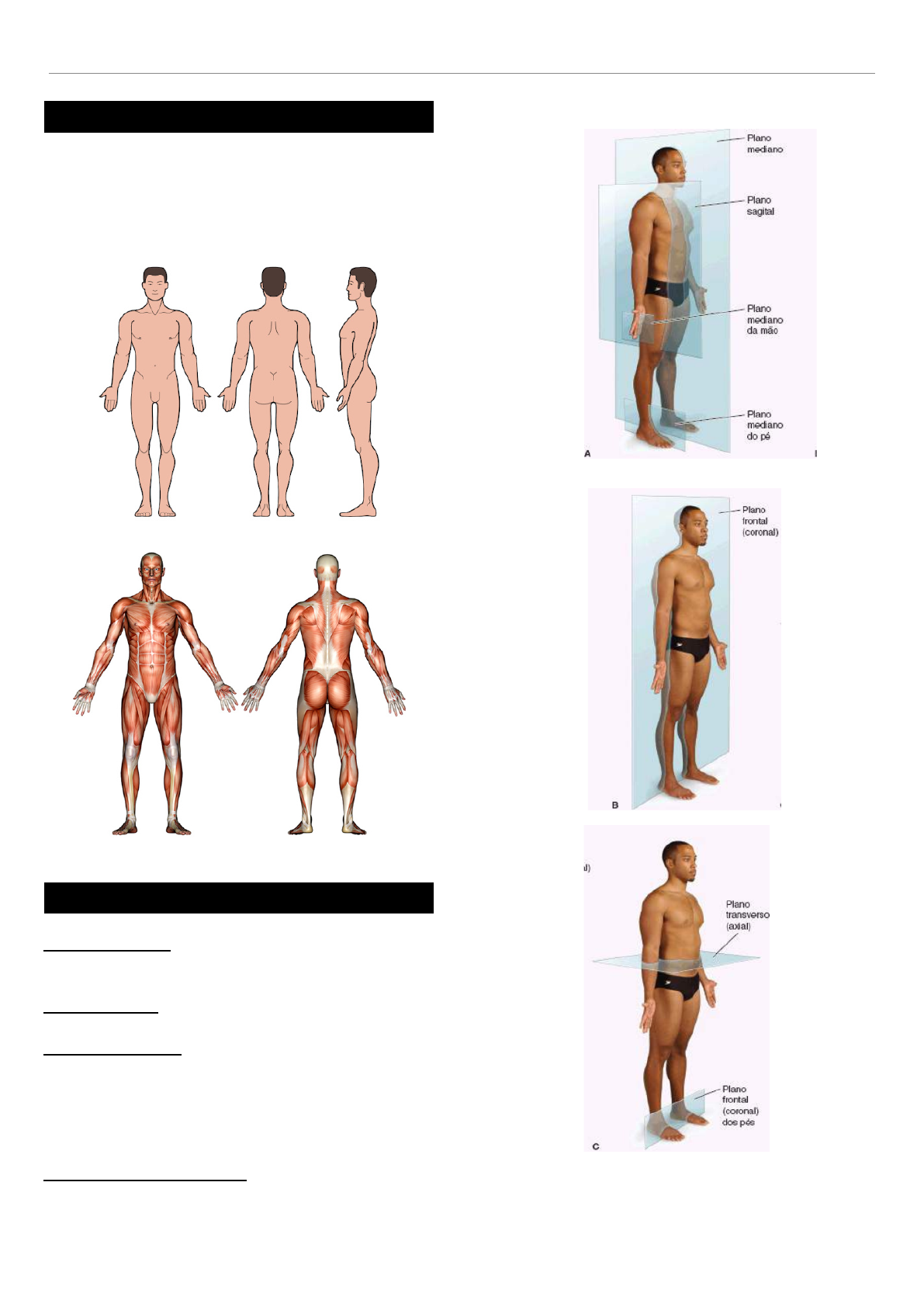 Jenneph Félix Medicina UFPE CAA POSIÇÃO ANATÔMICA Como se a pessoa estivesse em pé: cabeça, olhar e dedos voltados anteriormente; braços ao lado do corpo e palmas voltadas anteriormente e membros inferiores próximos e paralelos. Fonte: Google Imagens PLANOS Plano mediano → Plano vertical que corta o corpo longitudinalmente. Divide o corpo na metade esquerda e direita (antímeros) Plano sagital → Planos paralelos ao plano sagital mediano. Plano Transverso (chamado de Planos axiais em radiologia) → Planos horizontais que atravessam o corpo formando um ângulo de 90º com o plano mediano e com o plano frontal. Divide o corpo em superior e inferior (metâmeros). Plano Frontal ou coronal → Planos verticais que atravessam o corpo formando um ângulo de 90º com o plano mediano. Divide o corpo em anterior e posterior (paquímeros). Fonte: Moore, Dalley, Agur, 2014 Jenneph Félix Medicina UFPE CAA EIXOS Eixo látero-lateral → Da direita para esquerda ou vice-versa. Também chamado de transversal. É formado pelo encontro do plano transversal com o plano frontal; Eixo ântero-posterior → Sentido anterior para posterior. Também chamado de sagital. É formado pelo encontro do plano sagital com o plano transversal; Eixo crânio-caudal → Estende-se do superior ao inferior ou vice-versa. Também chamado de longitudinal. É formado pelo encontro do plano coronal com o plano sagital. Fonte: Google Imagens TERMOS Termos de relação: Anterior/Ventral/Frontal → na direção da frente; Posterior/Dorsal → na direção das costas; Superior/Cranial → na direção da parte superior do corpo; Inferior/caudal → na direção da parte inferior do corpo; Medial → mais próximo do plano sagital mediano (linha sagital mediana); Lateral → mais afastado do plano sagital mediano; Mediano → exatamente sobre o eixo sagital mediano; Intermédio → entre o medial e o lateral; Médio → entre o superior e o inferior ou entre o anterior e o posterior. Termos de Comparação: Proximal → próximo da raiz do membro. Mais próximo do tronco Distal → afastado da raiz do membro. Mais afastado do tronco Superficial → mais próximo da superfície do corpo Profundo → mais afastado da superfície do corpo Homolateral/ipsilateral → do mesmo lado do corpo ou de outra estrutura. Contralateral → do lado oposto do corpo ou de outra estrutura. Termos de movimento: Flexão → curvatura, diminuição do ângulo entre os ossos ou partes do corpo; Extensão → endireitar ou aumentar o ângulo entre os ossos ou partes do corpo; Adução → movimento realizado em direção ao plano sagital mediano em um corte frontal; Abdução → movimento que se afasta do plano mediano no plano frontal; Observação: o polegar é fletido e estendido no plano frontal e aduzido e abduzido no plano sagital (atentar para o fato de os movimentos de adução e abdução serem realizados no plano frontal, diferente do polegar). Circundução → movimento circular que consiste numa sequência de movimentos (flexão, abdução, extensão, adução - ou na ordem inversa); Fonte: Google Imagens Dorsiflexão (flexão dorsal) → flexão na articulação do joelho; Planti Flexão (flexão plantar) → curva o pé em direção ao solo (na ponta dos dedos) Jenneph Félix Medicina UFPE CAA Fonte: Moore, Dalley, Agur, 2014 Inversão → movimento da sola do pé em direção ao plano sagital mediano. Eversão → movimento da sola do pé se afastando do plano sagital mediano. Fonte: Moore, Dalley, Agur, 2014. Rotação medial → aproxima a face anterior de um membro do plano sagital mediano; Rotação lateral → afasta a face anterior de um membro do plano sagital mediano; Protrusão → é um movimento anterior (para frente); Retrusão → é um movimento posterior (para trás) Fonte: Google Imagens Elevação → desloca uma parte para cima; Depressão → desloca uma parte para baixo; Supinação → é o movimento inverso de rotação que gira o rádio lateralmente e o descruza em relação à ulna, recolocando o antebraço em pronação na posição anatômica; Pronação → rotação medial do rádio, de modo que a palma da mão fique voltada posteriormente e o dorso, anteriormente; Fonte: Google Imagens Rotação Inferior da Escápula → movimento em torno de um eixo sagital no qual o ângulo inferior da escápula move-se medialmente e a cavidade glenóide move-se caudalmente; Rotação Superior da Escápula → movimento em torno de um eixo sagital no qual o ângulo inferior da escápula move-se lateralmente e a cavidade glenóide move-se cranialmente. Fonte: Google Imagens Referências MOORE, K. L.; DALLEY, A. F.; AGUR, A. M. R. Anatomia Orientada para a Clínica. 7 Ed. Rio de Janeiro: Guanabara Koogan, 2014.