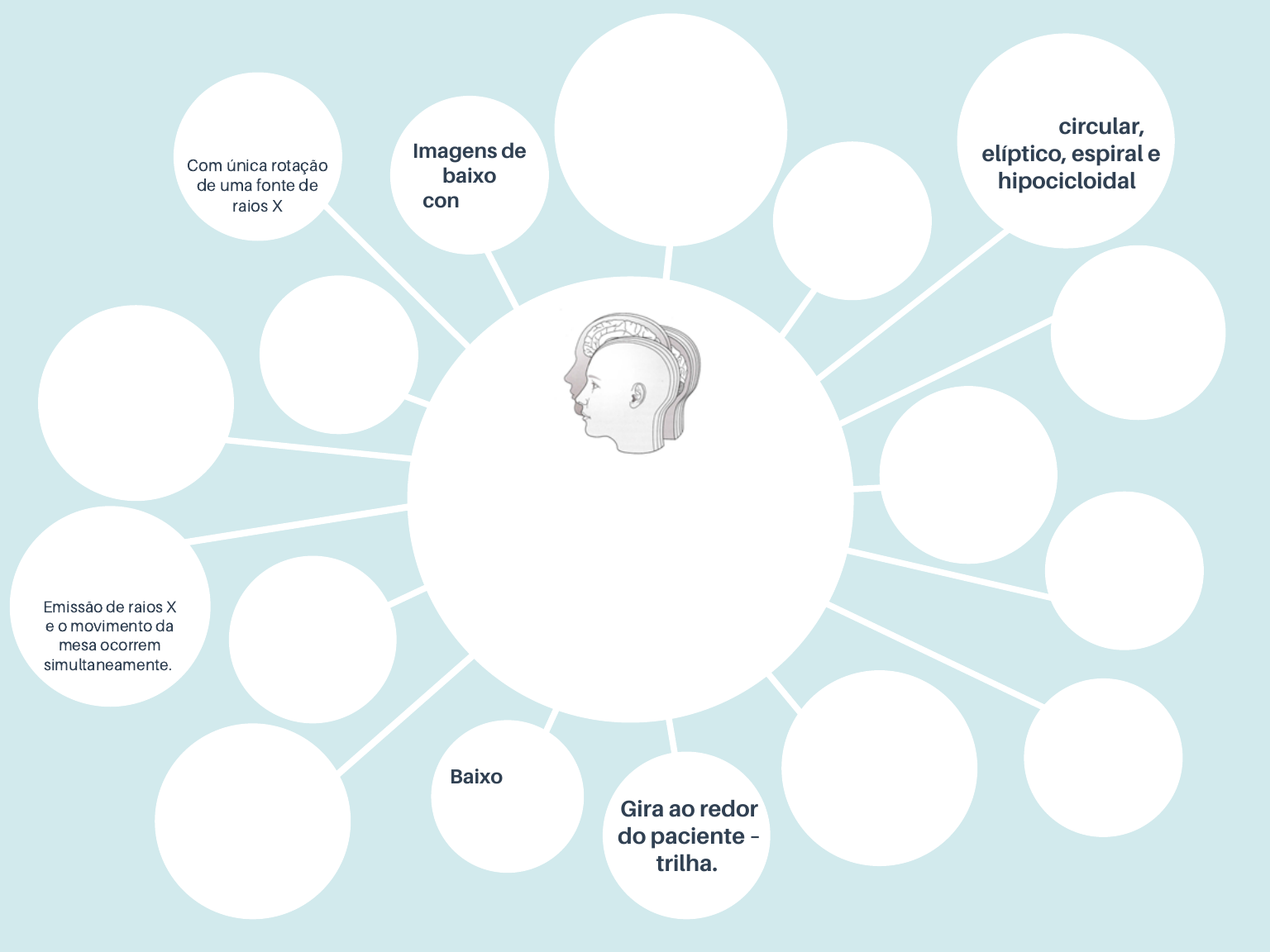 Plano focal ou camada focal. Tomografia convencional (TCV) e computadorizada (TC) Diversos níveis de absorção e atenuação dos raios X Escala Hounsfield “Imagem tomográfica” formada por pixels Consta de mesa, gantry, computador, console de controle, etc. Menos sensível ao movimento Não há restrição de peso Os raios X incidem sobre os sensores e detectores de radiação FEIXE CÔNICO OU CONE BEAM Com única rotação de uma fonte de raios X Gira ao redor do paciente – trilha. Baixo custo, mais confortável Não sofre influência magnética Usam raios X para que se produzam imagens de secções finais transversais do corpo humano FEIXE EM LEQUE OU FAN BEAM (TCFB) Emissão de raios X e o movimento da mesa ocorrem simultaneamente. Sistema estomatognático Movimentos linear, circular, elíptico, espiral e hipocicloidal Imagens de baixo contraste