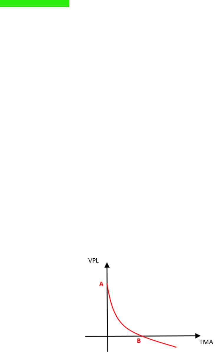 Prova – Avaliação 01: 10/10 1. O que é taxa aparente? a) Taxa futura de juros. b) Taxa fixada pelo Banco Central. c) Taxa de inflação. d) Taxa obtida após descontar o efeito da inflação e) Taxa nominal da aplicação, sem descontar o efeito da inflação. 2. Uma loja vende um produto por R$ 300,00, com desconto de 10% para compras à vista, ou com uma entrada de R$ 150,00 e outra parcela de R$ 150,00 a ser paga em um mês. Qual a taxa de juros mensal embutida na operação? a) 30% b) 10% c) 20% d) 25% e) 15% 3. Qual o valor da prestação de um financiamento de 2.000 reais por seis meses, a uma taxa de 1% a.m., estruturado no sistema Price? a) 350,00 b) 333,33 c) 363,12 d) 380,10 e) 345,10 4. Qual alternativa descreve melhor os valores referentes aos juros em cada prestação do sistema americano? a) Constantes. b) Crescentes linearmente. c) Decrescentes linearmente. d) Decrescentes exponencialmente. e) Crescentes exponencialmente. 5. O que representa o ponto A no gráfico abaixo? a) O payback simples. b) A TIR. c) A soma algébrica de todos os fluxos de caixa. d) A TRC. e) O payback descontado 6. Um projeto com investimento inicial de 2.500 reais prevê fluxos de 1.000, 500, 500, 500 e 1000 reais nos 5 períodos seguintes, respectivamente. Qual o valor do payback simples desse projeto? a) 4 b) 2 c) 5 d) 1 e) 3 7. Quando o tempo de retorno de um projeto é o principal fator a ser considerado, qual é o método mais apropriado e seu respectivo critério de seleção? a) TIR e o projeto deve ser aceito se TIR > 0 b) TRC e o projeto deve ser aceito se TRC < 1 c) TIRM e o projeto deve ser aceito se TIRM > 0 d) Payback e o projeto deve ser aceito se o payback< TMR (Tempo Máximo de Retorno) e) VPL e o projeto deve ser aceito se VPL > TMA 8. Assinale a alternativa correta: a) A tir incremental é o melhor método para avaliar projetos de durações distintas b) O vpla não serve para comparar projetos de durações distintas c) Os métodos do vpl e da tir sempre fornecem resultados convergentes d) A tir incremental corresponde à interseção entre as curvas de dois projetos no gráfico vpl x tma e) O payback e o vpla medem o tempo de retorno de um projeto 9. Quando quero antecipar o recebimento de um título de crédito, como uma duplicata, posso realizar uma operação de: a) Investimento. b) Capitalização. c) Desconto. d) Emissão de dívida. e) Câmbio. 10. A taxa anual de juros simples equivalente a 10% ao trimestre é de: a) 33% b) 15% c) 50% d) 40% e) 30%