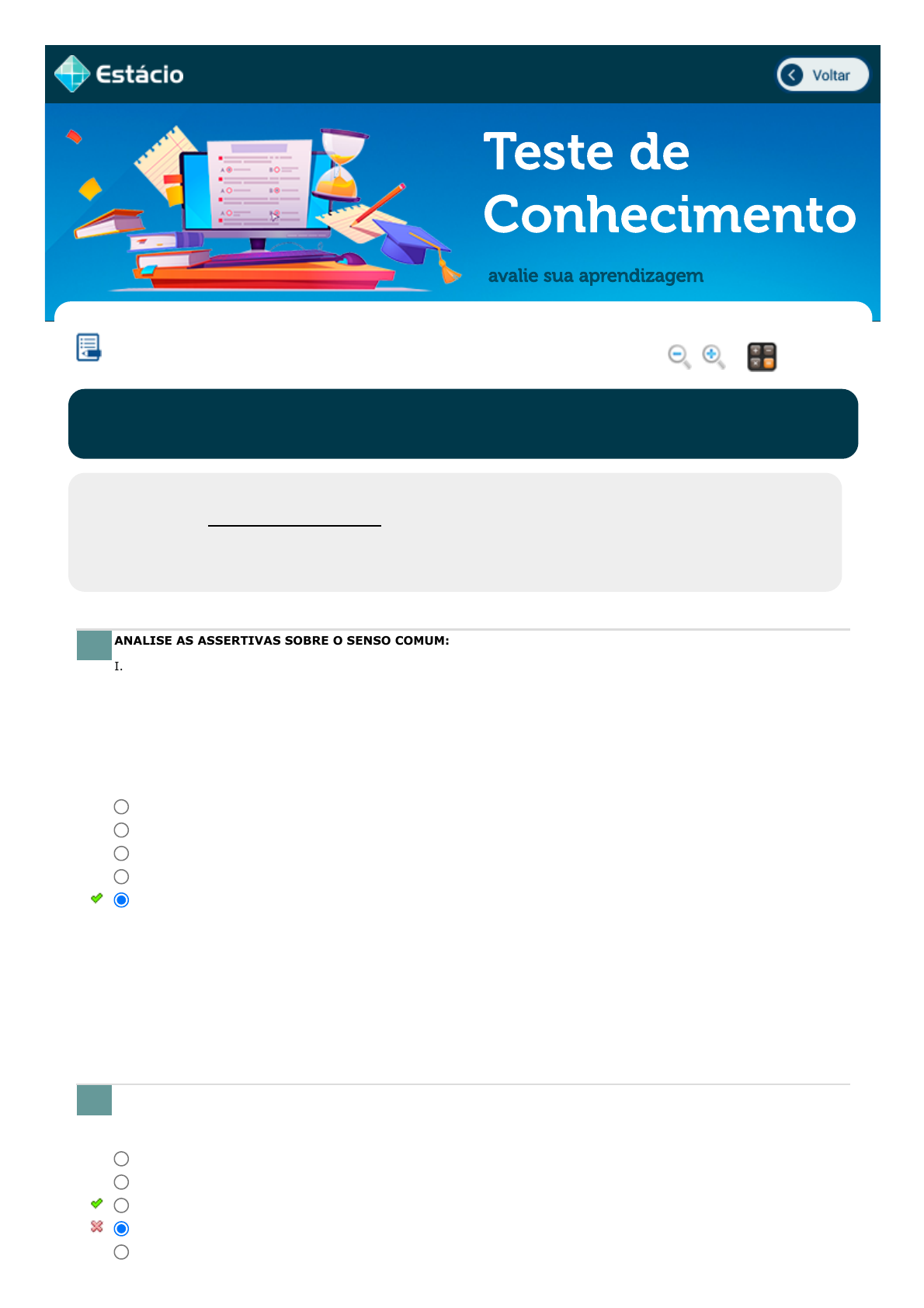 ANALISE AS ASSERTIVAS SOBRE O SENSO COMUM: