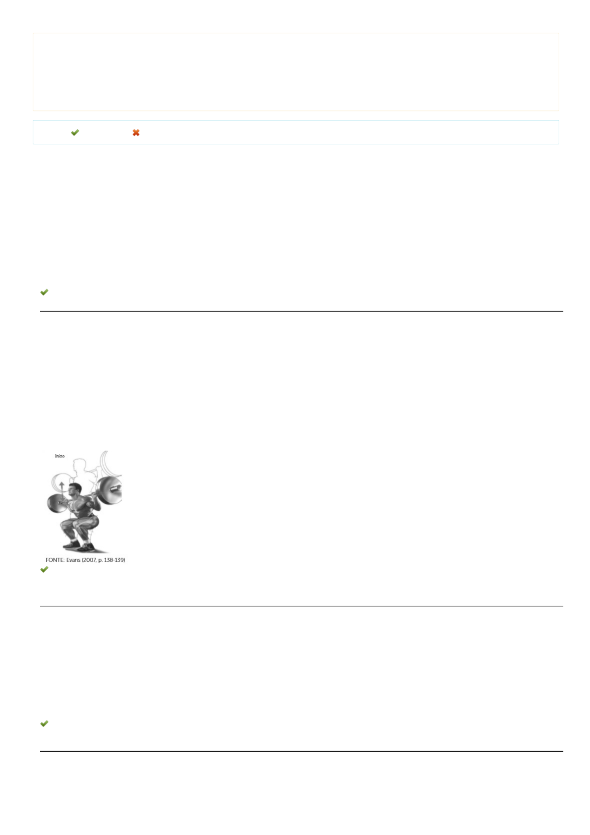 05/05/2021 UNIASSELVI - Centro Universitário Leonardo Da Vinci - Portal do Aluno - Portal do Aluno - Grupo UNIASSELVI https://portaldoalunoead.uniasselvi.com.br/ava/avaliacao/avaliacao_lista.php 1/3 Disciplina: Atividades Físicas em Academias e Empresas (BEF02) Avaliação: Avaliação Final (Objetiva) - Individual Semipresencial ( Cod.:668697) ( peso.:3,00) Prova: 31253393 Nota da Prova: 10,00 Legenda: Resposta Certa Sua Resposta Errada 1. Os modelos de produção industrial são técnicas que foram implementadas nas industrias com o objetivo de otimizar as operações realizadas nas trabalho (FIGUEIREDO; MONT'ALVÃO, 2008). Sobre os modelos de produção industrial, analise as sentenças a seguir: I- O modelo de trabalho que tinha como característica calcular e controlar rigorosamente o ritmo de trabalho dos seus funcionários é conhecido co Toyotismo. II- Henry Ford foi o responsável pelo Fordismo. Esse modelo caracterizou-se pela implementação de linhas de montagem que tornavam a produçã ininterrupta. III- O taylorismo foi introduzido por Winslow Taylor e tem como característica a busca pela melhora dos índices de produtividade por meio da poliv trabalhador. Assinale a alternativa CORRETA: FONTE: FIGUEIREDO, F.; MONT'ALVÃO, C. Ginástica laboral e ergonomia. Rio de Janeiro: SPRINT, 2008. a) As sentenças I e II estão corretas. b) Somente a sentença I está correta. c) Somente a sentença II está correta. d) Somente a sentença III está correta. 2. O fortalecimento dos músculos que compõem os membros inferiores do nosso corpo é importante para a qualidade de vida de forma geral, pois e musculatura é responsável pela sustentação do nosso corpo. Assim, é importante possuir força suficiente para suportar a carga das atividades diá sentido, o exercício apresentado na imagem a seguir é um dos exercícios mais prescritos nas academias de musculação. Sobre esse exercício, c para as sentenças verdadeiras e F para as falsas: ( ) O exercício da imagem é comumente chamado de afundo e a musculatura recrutada durante sua execução é a do quadríceps e do glúteo. ( ) O exercício da imagem é classificado como monoarticular, porque para sua execução apenas a articulação do quadril participa do movimento ( ) A realização do exercício da imagem é indicado para hipertrofia dos músculos do quadríceps e glúteos, no entanto outros músculos como os também são solicitados durante a sua execução. ( ) A alteração da posição dos pés é uma variação interessante do exercício da imagem, pois transfere a predominância da musculatura envolvid exercício. Assinale a alternativa que apresenta a sequência CORRETA: FONTE DA IMAGEM: EVANS, N. Anatomia da musculação. Barueri: Manole, 2007. a) F - F - V - V. b) F - V - V - V. c) V - V - F - F. d) F - V - F - V. 3. A qualidade de vida do trabalhador pode depender tanto de comportamentos individuais como o estilo de vida e, aspectos relacionados ao trabalh cargo/função e o ambiente físico e social em que é desempenhado tal função. Com relação ao estilo de vida dos trabalhadores, analise as senten seguir: I- Um baixo gasto calórico no desempenho de funções tem desencadeado problemas na saúde do trabalhador. II- Doenças osteomusculares oriundas de atividades laborais são denominados distúrbios osteomusculares relacionados ao trabalho (DORT). III- O termo relacionado aos distúrbios osteomusculares relacionados ao trabalho (DORT) foi com o tempo sendo substituído pelo termo de lesões esforços repetitivos (LER). IV- Um alto gasto calórico no desempenho de funções tem desencadeado problemas na saúde do trabalhador. Assinale a alternativa CORRETA: a) As sentenças II e IV estão corretas. b) As sentenças I e II estão corretas. c) As sentenças I e III estão corretas. d) Somente a sentença II está correta. https://portaldoalunoead.uniasselvi.com.br/ava/notas/request_gabarito_n2.php?action1=QkVGMDAzNA==&action2=QkVGMDI=&action3=NjY4Njk3&action4=MjAyMS8x&prova=MzEyNTMzOTM=#questao_1%20aria-label= https://portaldoalunoead.uniasselvi.com.br/ava/notas/request_gabarito_n2.php?action1=QkVGMDAzNA==&action2=QkVGMDI=&action3=NjY4Njk3&action4=MjAyMS8x&prova=MzEyNTMzOTM=#questao_2%20aria-label= https://portaldoalunoead.uniasselvi.com.br/ava/notas/request_gabarito_n2.php?action1=QkVGMDAzNA==&action2=QkVGMDI=&action3=NjY4Njk3&action4=MjAyMS8x&prova=MzEyNTMzOTM=#questao_3%20aria-label= 05/05/2021 UNIASSELVI - Centro Universitário Leonardo Da Vinci - Portal do Aluno - Portal do Aluno - Grupo UNIASSELVI https://portaldoalunoead.uniasselvi.com.br/ava/avaliacao/avaliacao_lista.php 2/3 4. Embora a prática da musculação esteja se tornando um hábito comum, é importante que ela seja feita de forma orientada para evitar o aparecime lesões. Além da distribuição correta dos exercícios durante as sessões de treinamento, é importante que todos os músculos sejam trabalhados de correta para evitar a sobrecarga muscular. Por isso, o professor deve conhecer as particularidades e as características de todos os exercícios. Co aos exercícios para o desenvolvimento da musculatura do peitoral, classifique V para as sentenças verdadeiras e F para as falsas: ( ) O exercício conhecido como supino reto é classificado como multiarticular, pois ocorre a movimentação de mais de uma articulação quando e ( ) Os exercícios para o desenvolvimento da musculatura do peitoral podem ser feitos com auxílio de halteres, polias e até mesmo em máquinas específicas. ( ) Quando o objetivo do treino é trabalhar os músculos do peito e do tríceps, recomenda-se que a pegada no exercício supino reto seja feita de fechada. ( ) O crucifixo é um exercício recomendado para o desenvolvimento da musculatura do peitoral, pois recruta os músculos romboide, trapézio e la dorso. Assinale a alternativa que apresenta a sequência CORRETA: a) V - F - V - V. b) V - V - V - F. c) F - V - V - V. d) F - V - F - F. 5. O treinamento