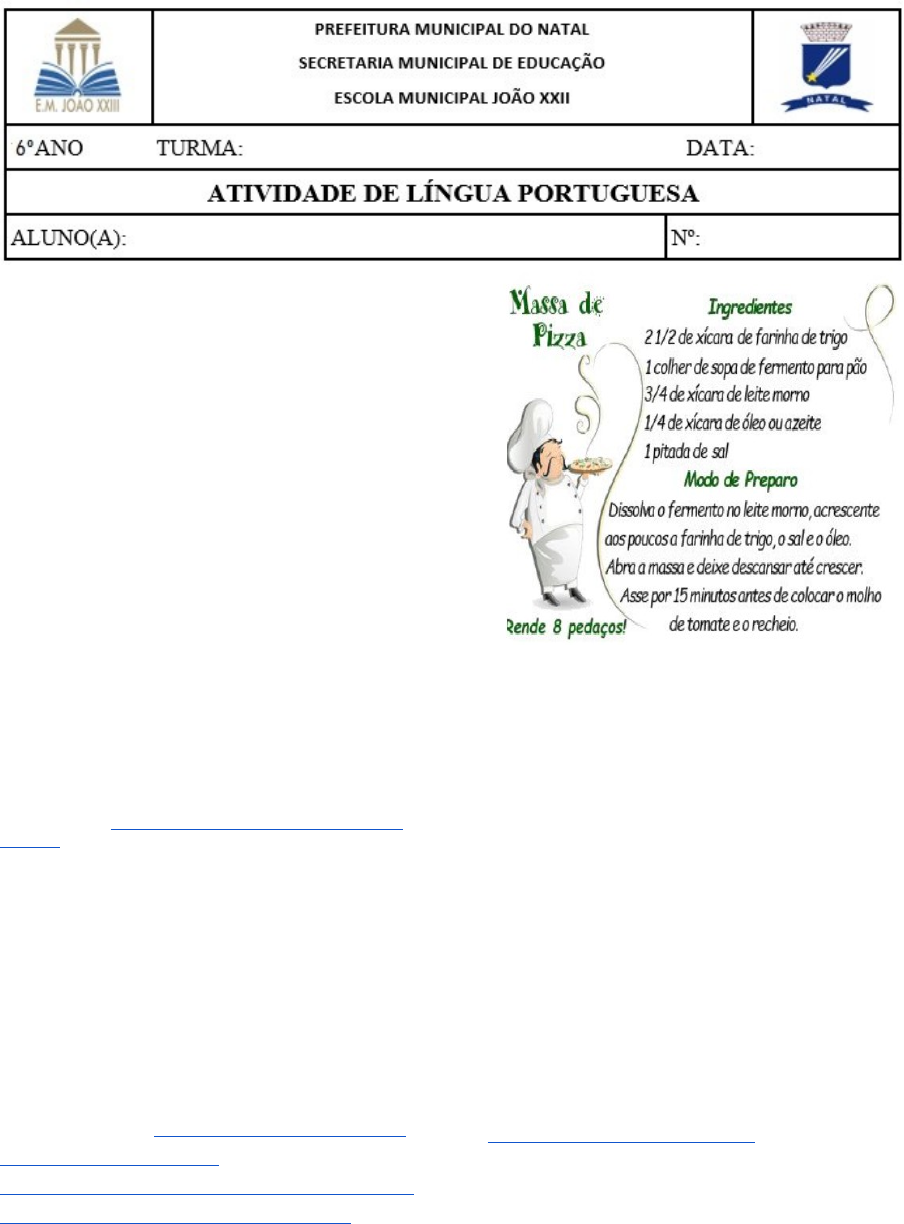 - Vamos estudar um pouco sobre os gêneros textuais? Você sabe o que são gêneros textuais? Leia os textos e, em seguida, responda às questões em seu caderno. “Os gêneros textuais são classificados conforme as características comuns que os textos apresentam em relação à linguagem e ao conteúdo. Existem muitos gêneros textuais, os quais promovem uma interação entre os interlocutores (emissor e receptor) de determinado discurso. São exemplos resenha crítica jornalística, panfletos, receita de bolo, menu do restaurante, bilhete ou lista de supermercado.” Disponível em: https://www.todamateria.com.br/generos-textuais/ Já os tipos textuais são classificados de acordo com sua estrutura, objetivo e finalidade. De acordo com a tipologia textual, eles são classificados em 5 tipos: texto narrativo, texto descritivo, texto dissertativo (expositivo ou argumentativo), texto de relatos e texto injuntivo. Links de apoio: https://www.youtube.com/watch?v=keri15mSleA e https://www.educamaisbrasil.com.br/enem/lingua-portuguesa/generos-textuais Leia os textos abaixo: Texto 1 Disponível em: https://br.pinterest.com/pin/241294492516040967/ Texto 2 Um mosquito, depois de permanecer por muito tempo pousado no chifre de um touro, quando estava para partir, perguntou ao touro se já desejava que ele fosse embora. O touro, tomando a palavra, disse: “Nem quando vieste eu senti, nem tampouco quando fores eu sentirei”. Moral: Faça a diferença, do contrário serás um homem sem valor que, estando presente ou estando ausente, não atrapalha nem ajuda. Adaptada para fins desta atividade. Disponível em: http://projetoabelha.com.br/?page_id=4438 Texto 3 Disponível em: https://coxinhanocone.com/cardapio/ Texto 4 Butantan diz que CoronaVac é eficaz contra as três variantes do coronavírus em circulação no país Pesquisa feita com a USP aponta que imunizante é eficaz contra as três variantes do coronavírus - a britânica, a brasileira e a sul-africana - em circulação no país, segundo governo estadual. Variante P.1, originária de Manaus e considerada mais transmissível, é derivada da variante brasileira, contra a qual a CoronaVac se mostrou eficaz. Por Lívia Machado e Patrícia Figueiredo, G1 SP — São Paulo 10/03/2021 13h48 Atualizado há uma hora Disponível em: https://g1.globo.com Texto 5 Disponível no site: http://diadematematica.com/docentes/wp-content/uploads/2009/08/charge.jpg Após a leitura dos textos, responda às questões seguintes: 1. Sobre o texto 1 a) Você já leu esse tipo de texto? b) Em que momento as pessoas usam esse tipo de texto? c) A qual gênero ele corresponde? d) Onde podemos encontrar esse tipo de texto? e) Em qual tipologia ele se enquadra? 2. Sobre o texto 2 a) Você conhece outros textos parecidos com esse? Quais? b) Esse texto tem personagens, diferente do texto 1 que não tem. Como se chama o texto que apresenta personagens? c) Você sabe qual o gênero textual correspondente ao texto 2? d) Por que as pessoas escrevem esse tipo de texto? 3. Sobre o texto 3 O cardápio é um gênero textual muito utilizado nos dias atuais. a) Onde esse tipo de texto é usado? b) Com que finalidade ele é usado? c) Posso afirmar que esse texto é descritivo? Explique. 4. Sobre o texto 4 a) Os fatos relatados, nesse texto, são fictícios ou reais? b) Você gosta de ler textos como esse? c) Por que as pessoas leem textos dessa natureza? d) Onde podemos achar textos como esse? 5. Sobre o texto 5 a) Veja que o menino está explicando o motivo pelo qual não realizou a tarefa. Será que ele falou a verdade? Explique. b) A charge é um texto que usa linguagem verbal e visual para transmitir a mensagem. Na sua opinião, se retirar a imagem, o texto teria sentido? c) O texto apresenta características: I. Descritivas II. Argumentativas III. Narrativas IV. Instrucionais Bom estudo!! Use máscara, lave as mãos e fique em casa. Logo, logo estaremos juntos novamente.
